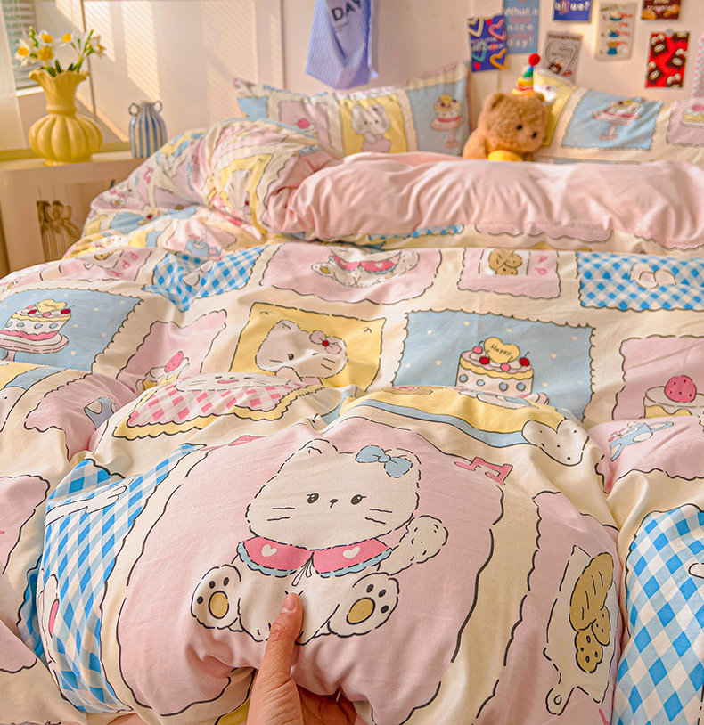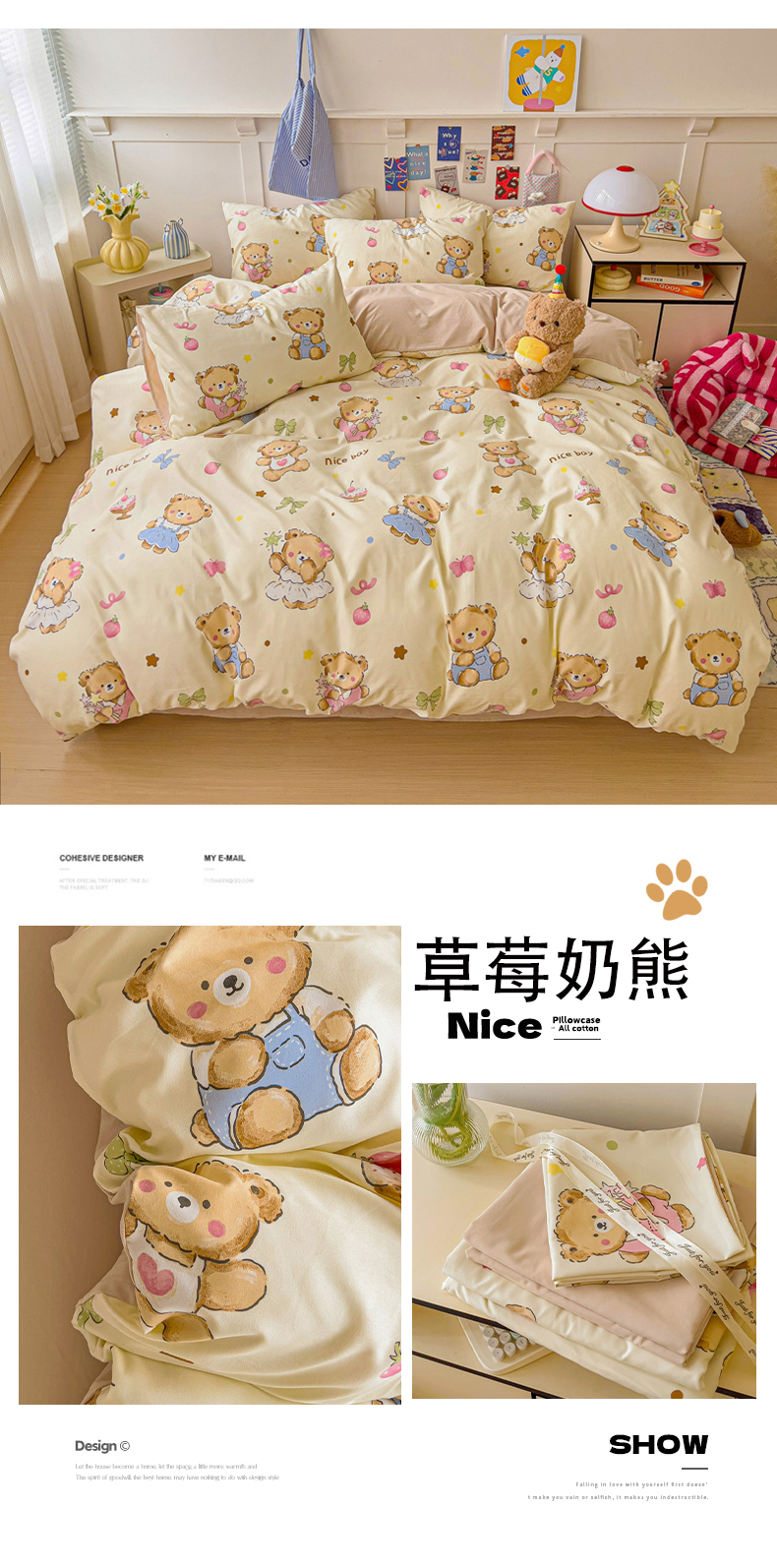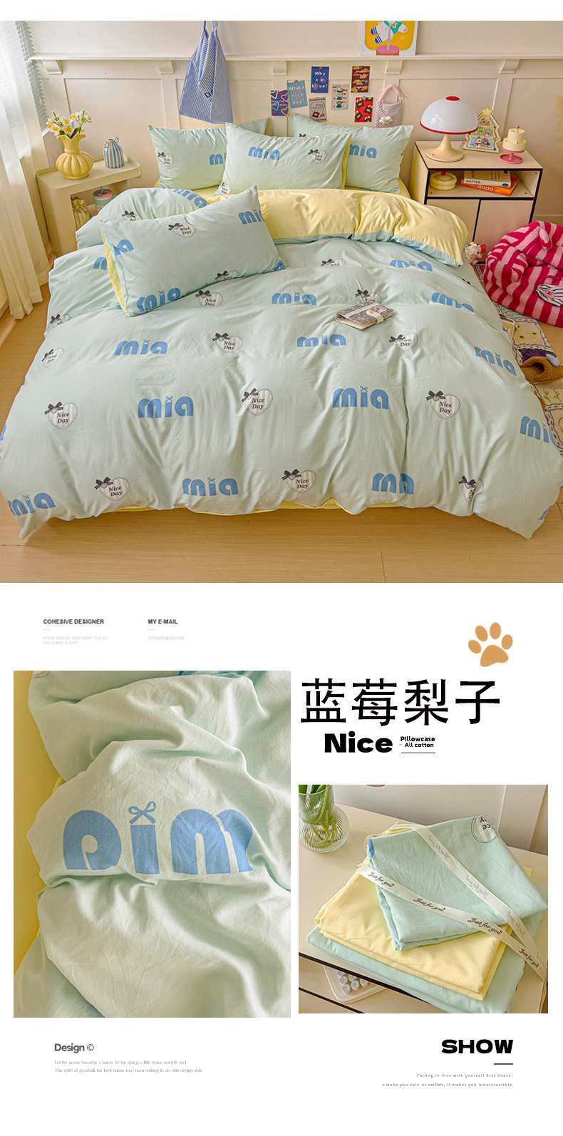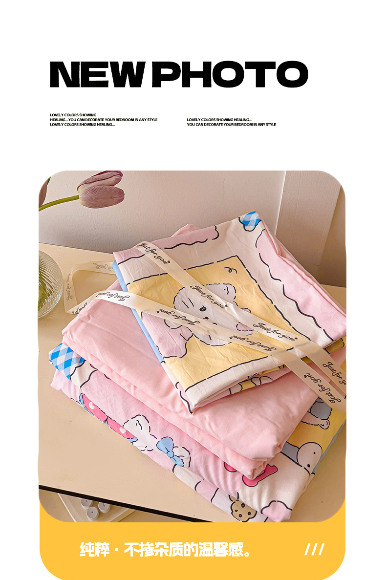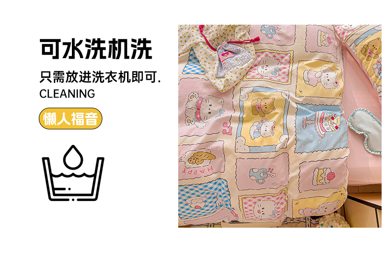(总)欧妮家纺 2025新款AB版印花水洗棉四件套系列卡通床单被套学生宿舍床上三件套-提供买家秀