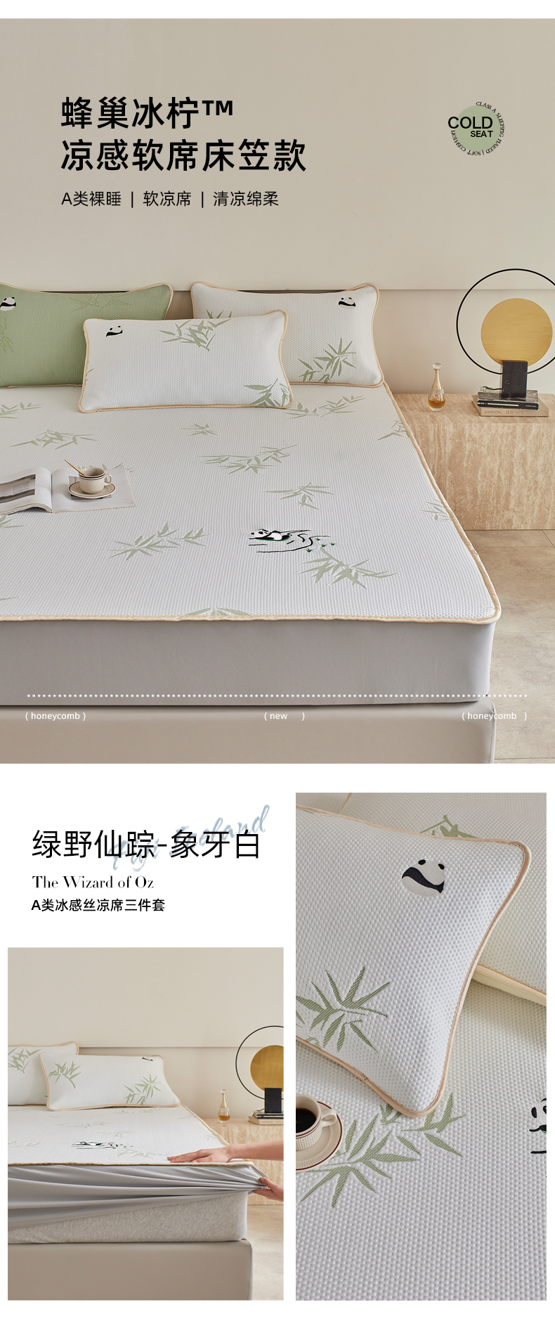 商品名称:(总)千朵森 2026新款冰岛冰感丝绿野仙踪床笠款凉席三件套