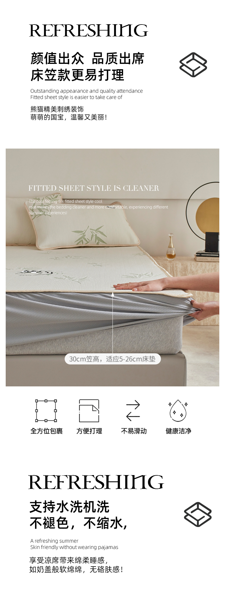 (总)千朵森 2026新款A类抗菌冰岛冰感丝床笠款凉席三件套 风格二,冰岛-暮夜蓝,冰岛-浅茶杏,冰岛-晴空蓝,冰岛-山茶灰,冰岛-山梗灰