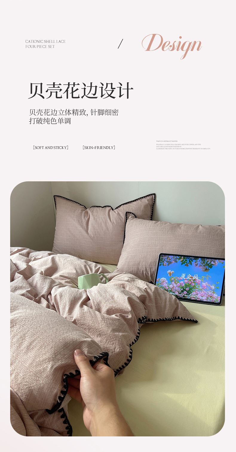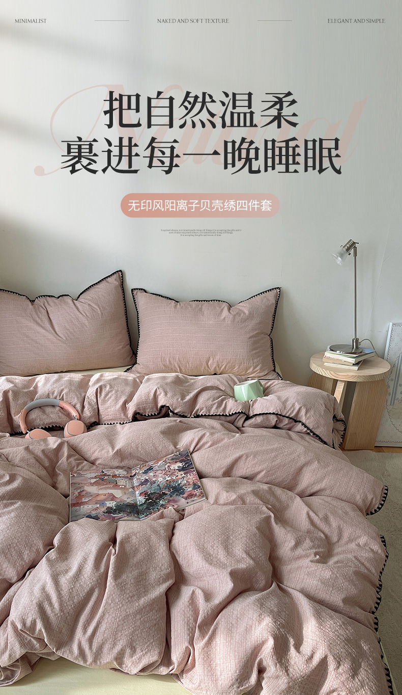 当前位置: 91家纺网 > 商品网购 > 床品套件 > 四件套 > 其它四件套 > 凯洛奇 2026新款色织阳离子贝壳边四件套 阳离子-樱粉