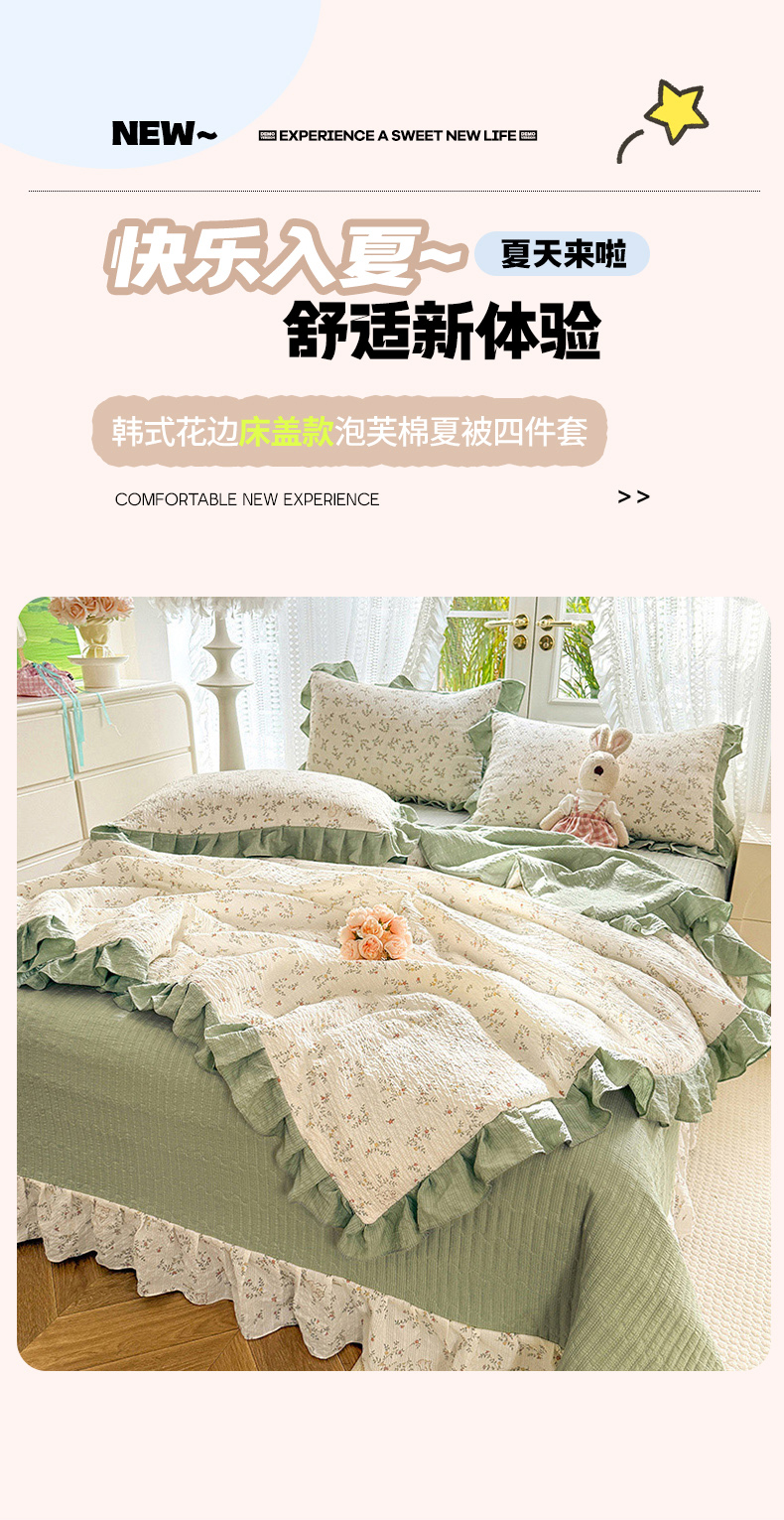 (总)韩约家纺 2026新款法式大花边床盖款泡芙棉夏凉被空调被四件套,倚梦,宝贝甜心,春旭,蝶语,繁花,花沐,绿意,木槿,妮可,仟香,星语,熊宝
