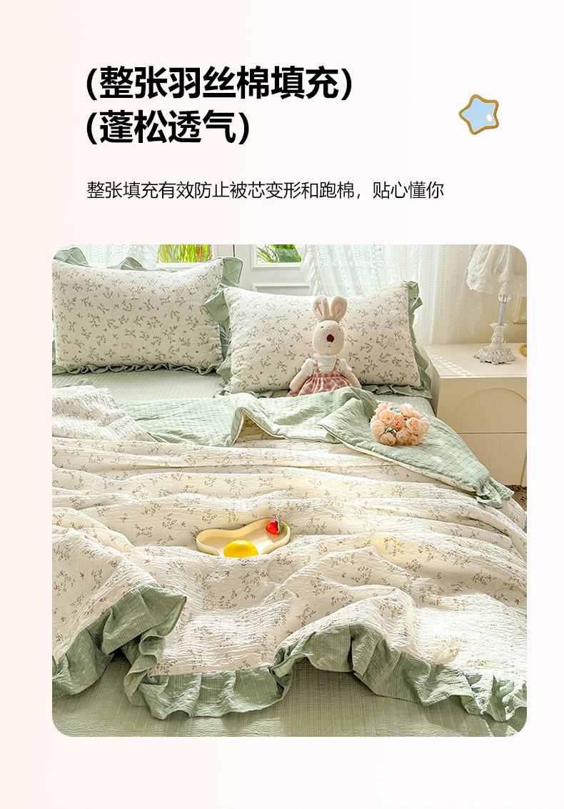 韩约家纺 2026新款泡芙棉床盖款夏被夏凉被空调被四件套 微花耳耳