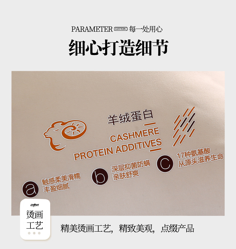 商品名称:贤内助家纺 2026超柔亲肤羊绒蛋白学生宿舍枕头/学生护颈枕 羊绒蛋白枕蓬松中高枕13公分