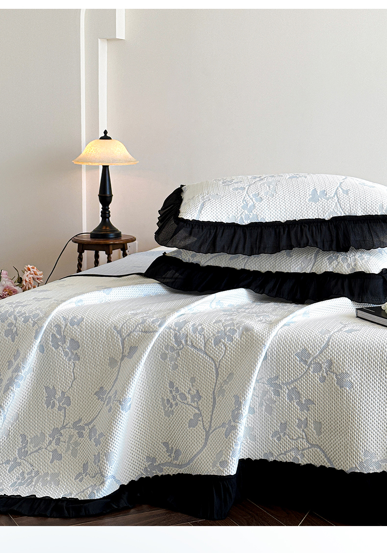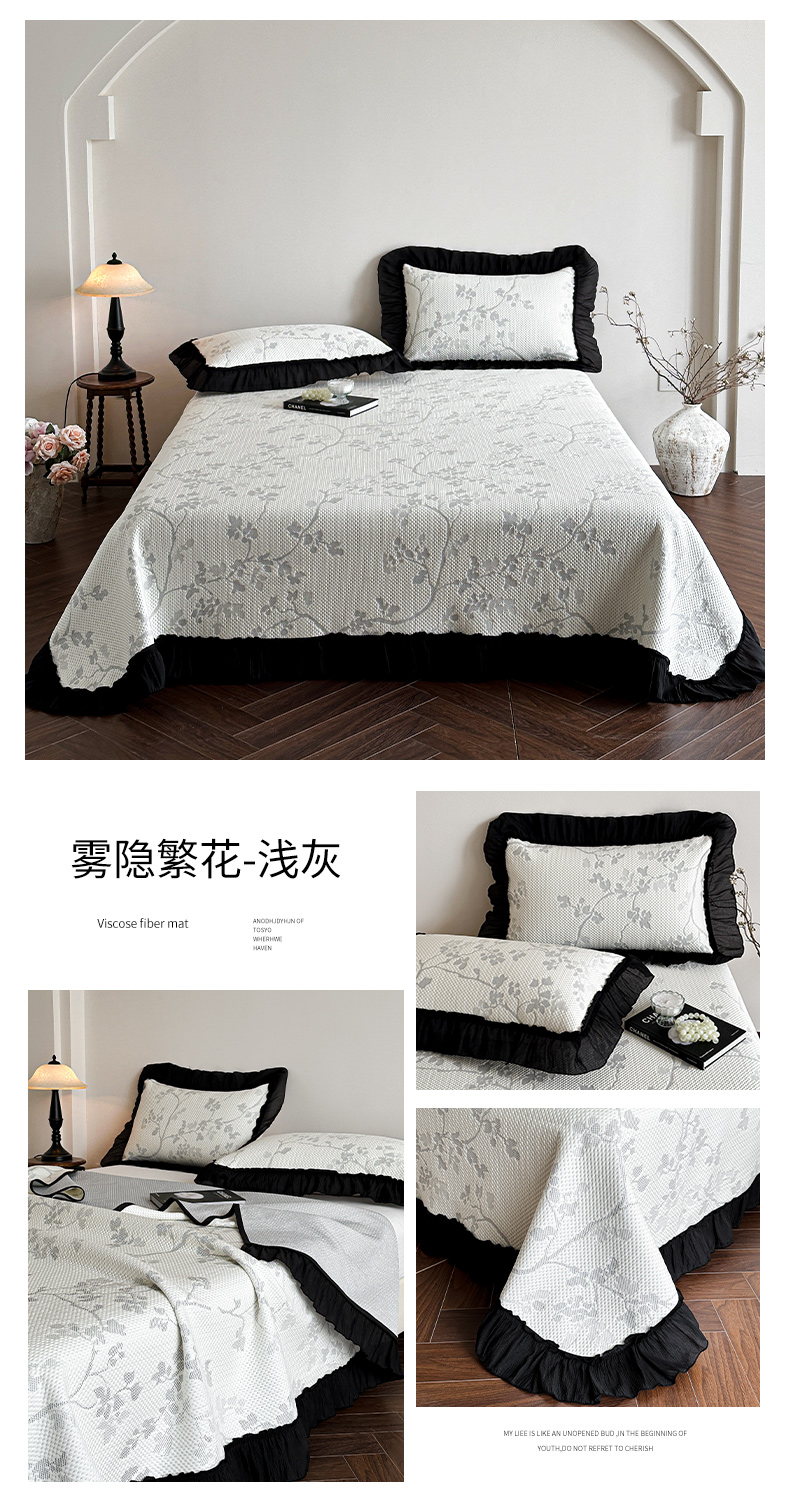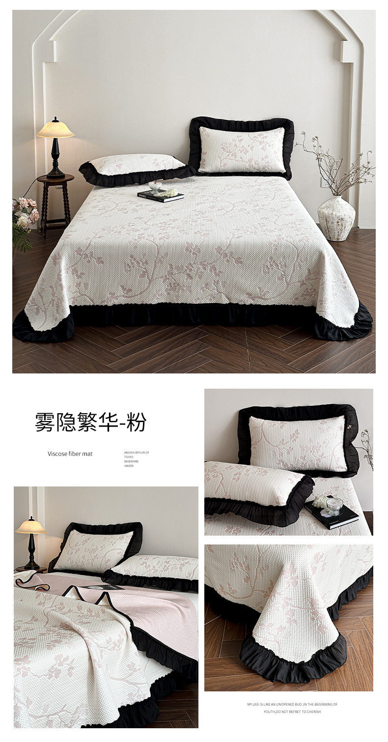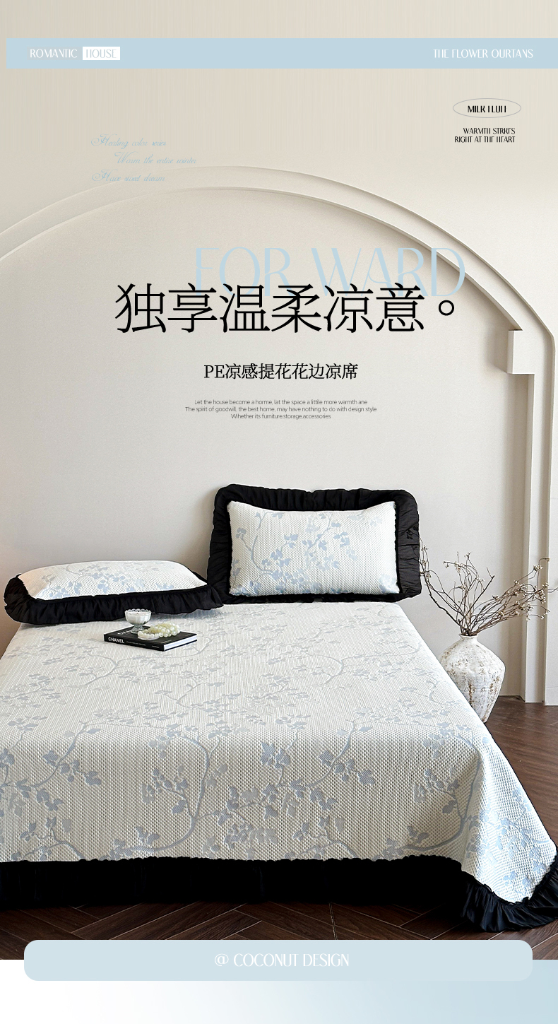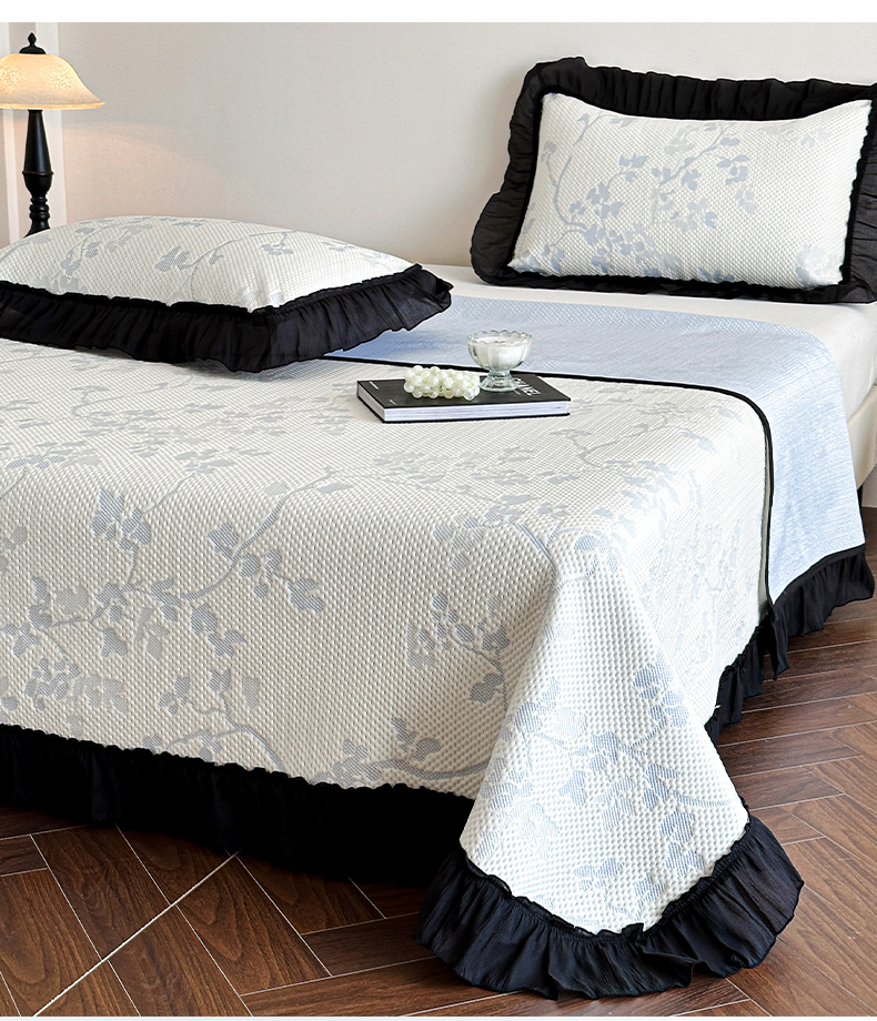 商品名称:(总)蓝邻家纺 2026新款PE提花凉席轻奢真丝绉花边款系列