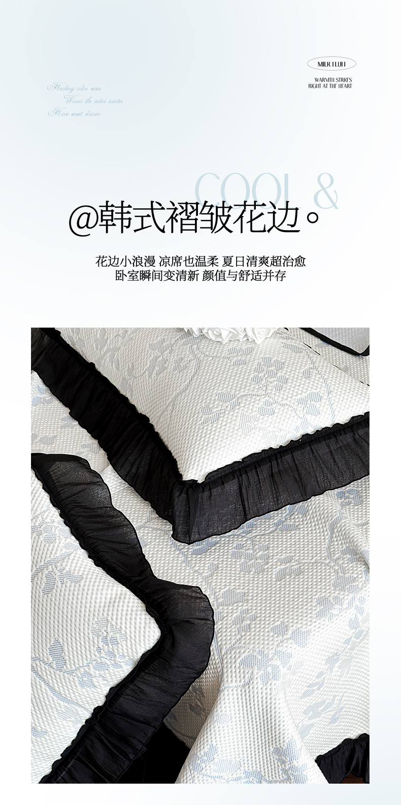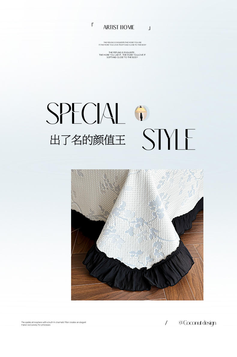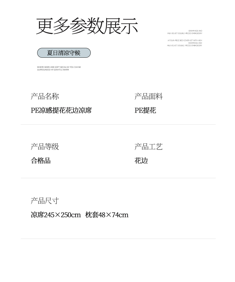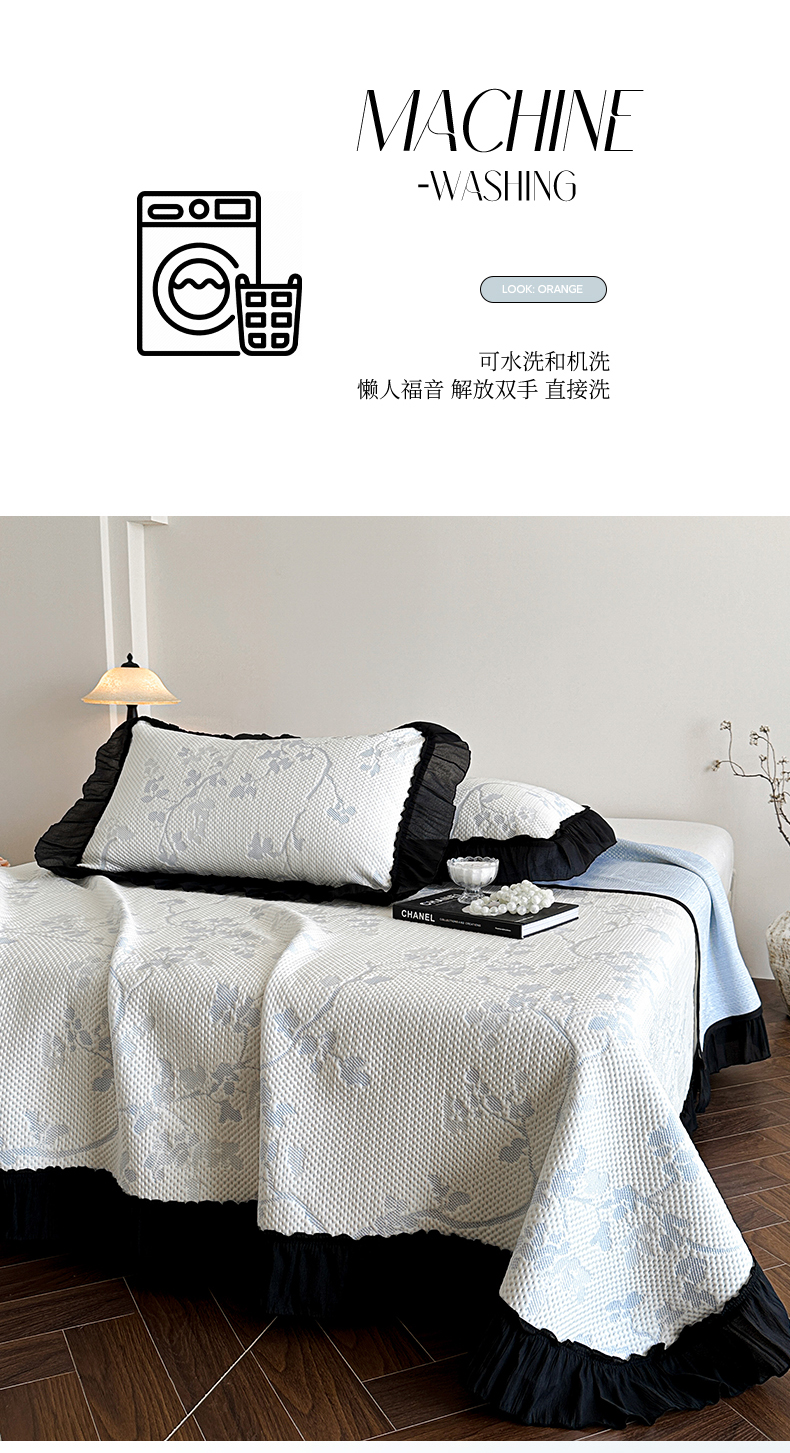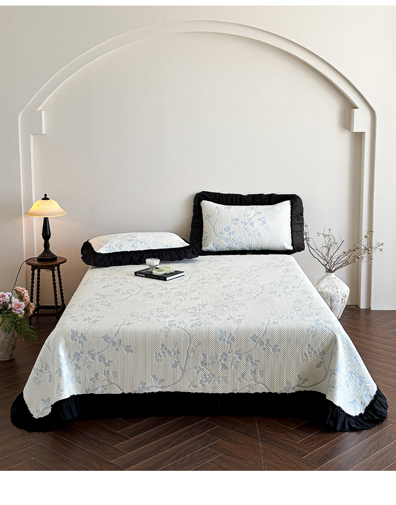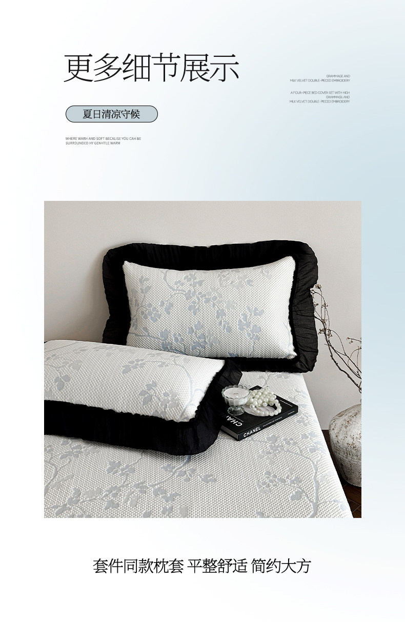 商品名称:(总)蓝邻家纺 2026新款PE提花凉席轻奢真丝绉花边款系列