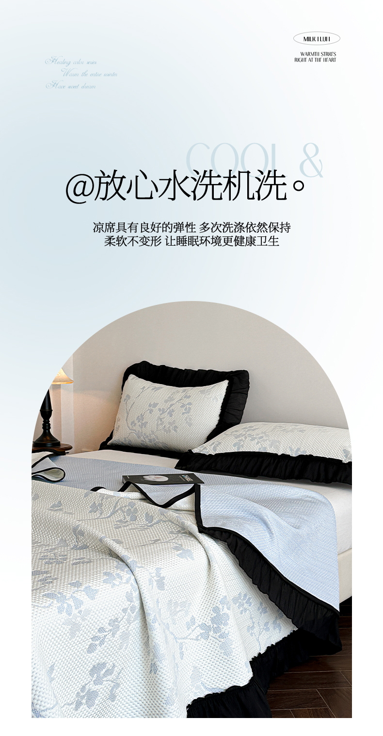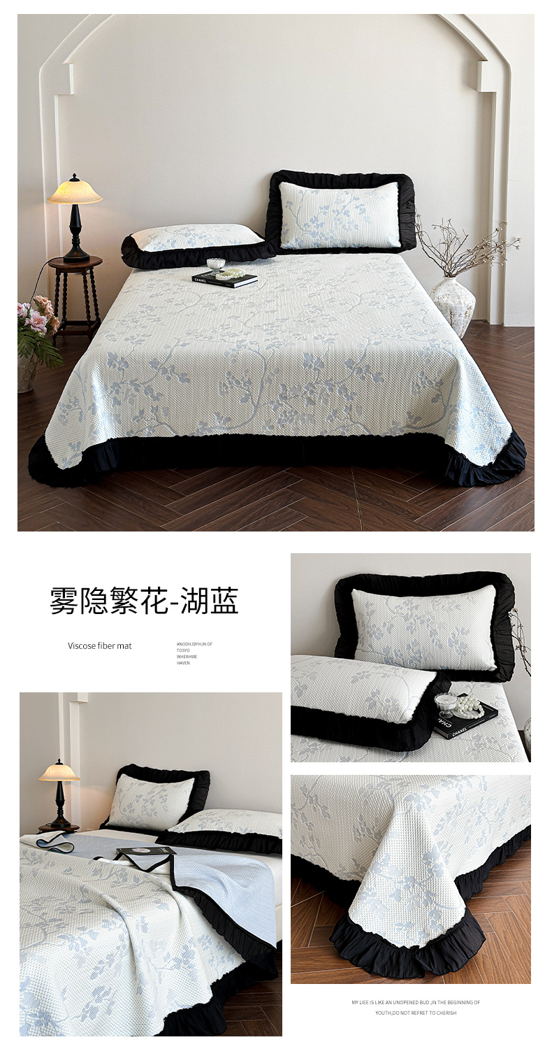 (总)蓝邻家纺 2026新款PE提花凉席轻奢真丝绉花边款系列