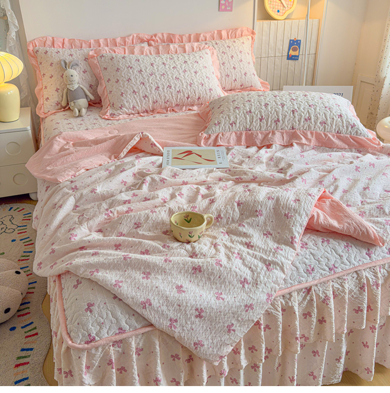 铠畅家纺 2026新款泡芙纱水洗棉夏被四件套 粉蝶轻语