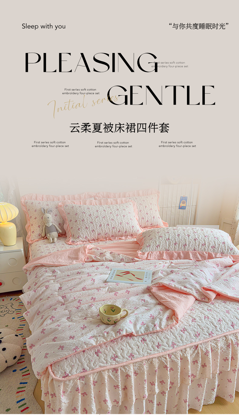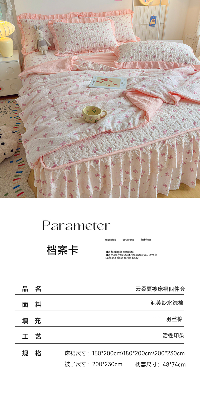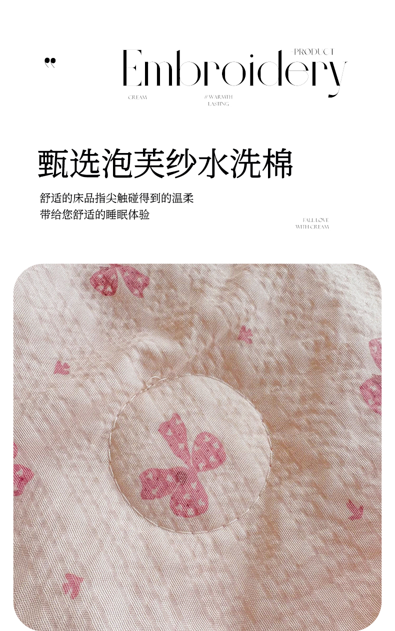 商品名称:铠畅家纺 2026新款泡芙纱水洗棉夏被四件套 粉蝶轻语