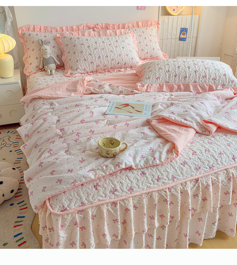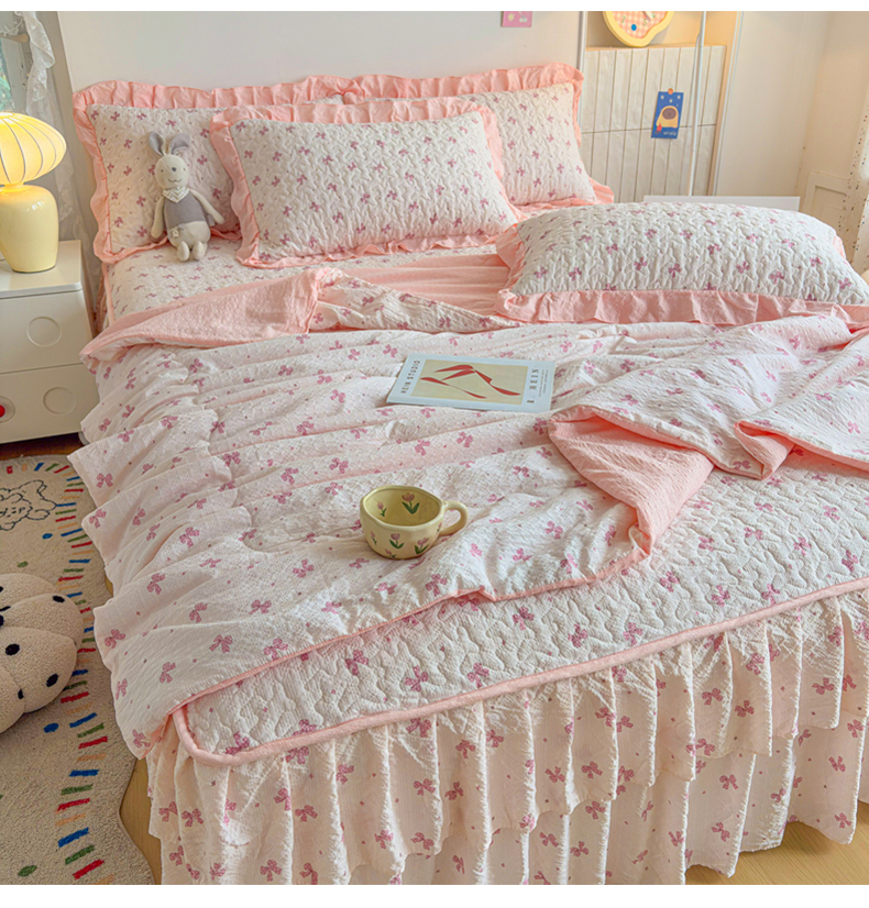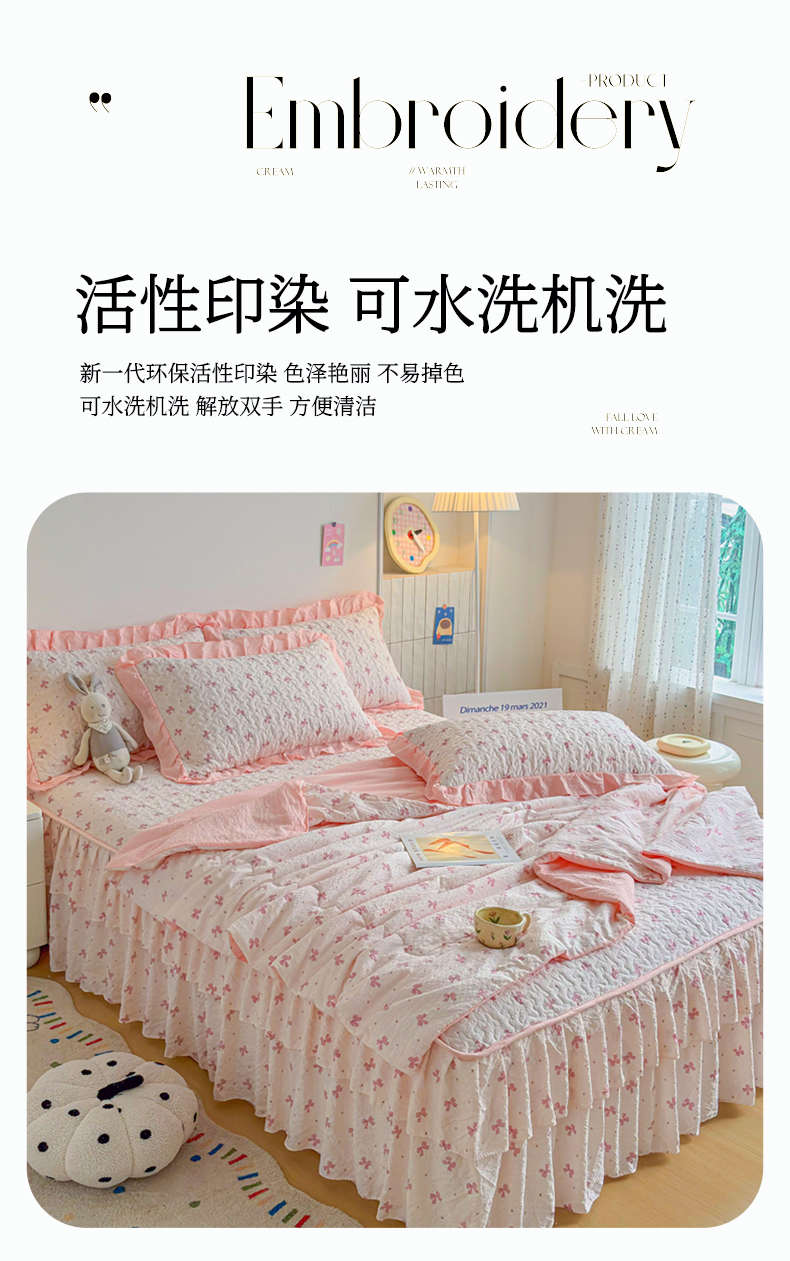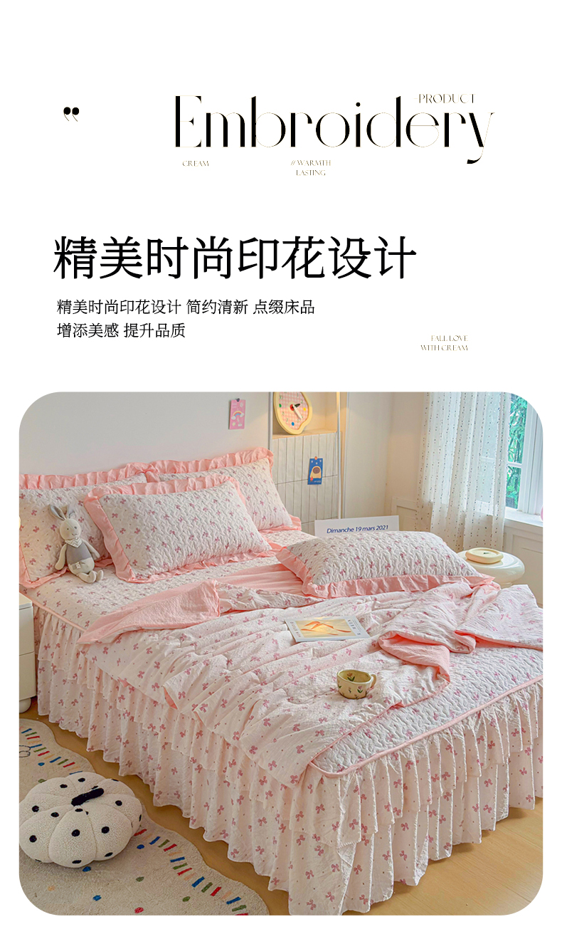 (总)铠畅 2026新款法式宽边水洗棉泡芙纱床盖款夏被四件套,春日小马,粉调爱心,粉雾波点,赫本豹影,红裙花影,红雾波点,红韵玫瑰,黄条萌宠,咖调爱心,玫瑰园,抹茶玫瑰,奶粉kt,奶格蝴蝶结,奶咖kt,奶蓝kt,森系花园,桃心木马,兔小姐,雾蓝波点,薰衣草女孩