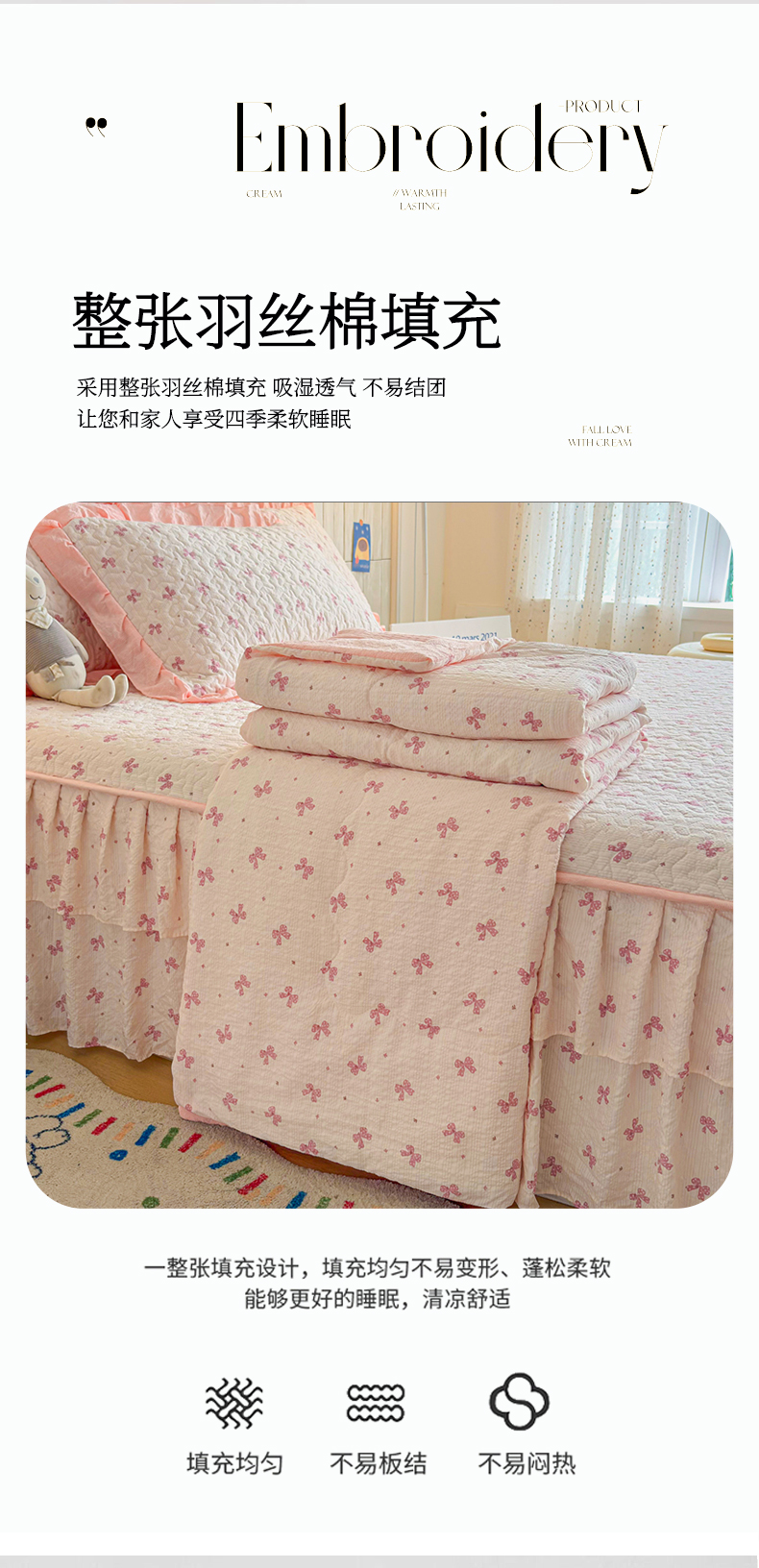 (总)铠畅家纺 2026新款凉感豆豆床裙夏被三件套-花梦蝶,花梦蝶-粉,花梦蝶-高级灰,花梦蝶-兰,花梦蝶-绿