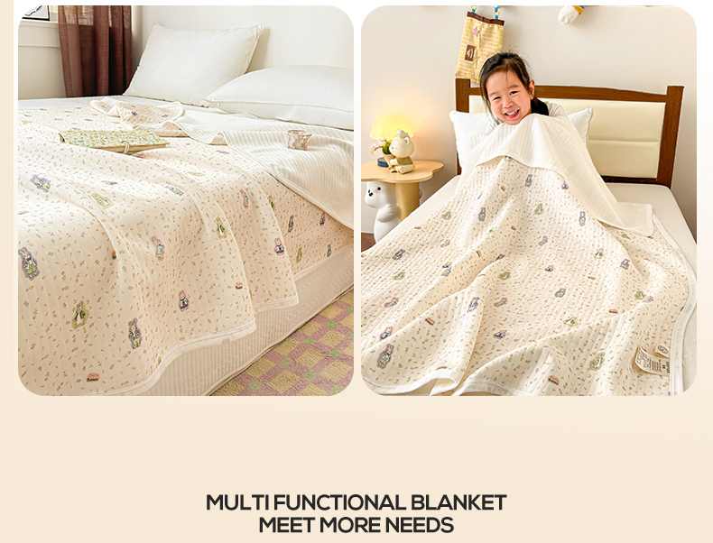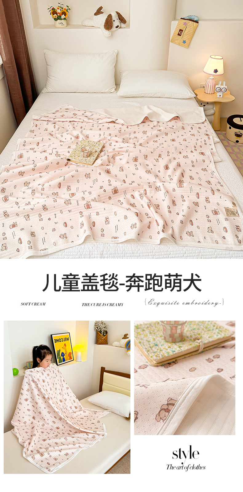 沐珩家纺 2026新款A类全棉空气印花夏被盖毯幼儿园午睡盖毯床盖夏被 儿童盖毯-点点狗