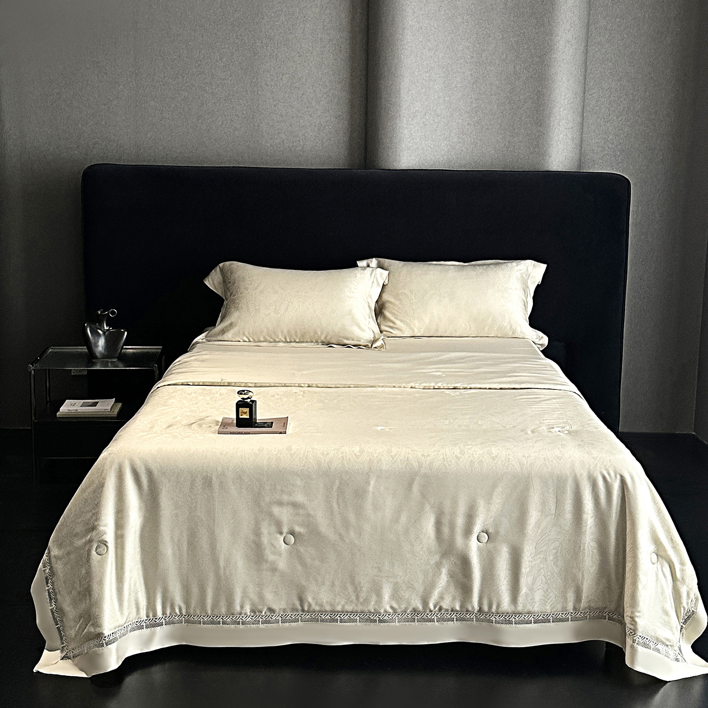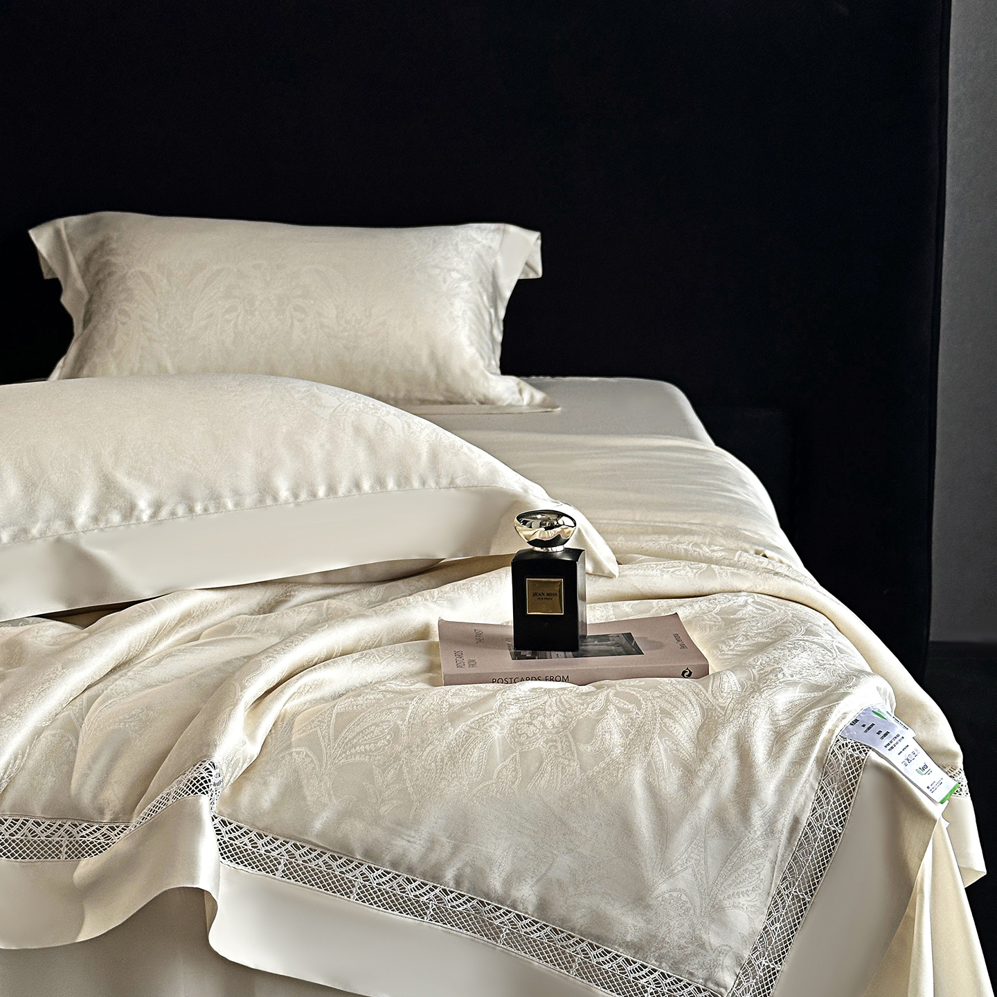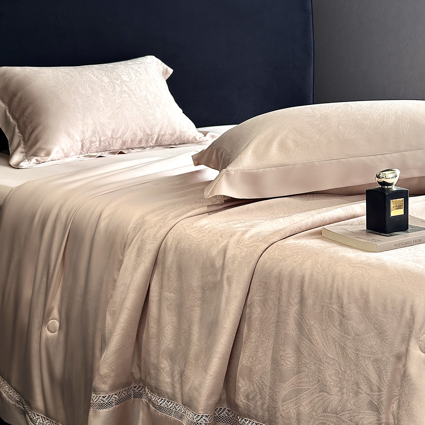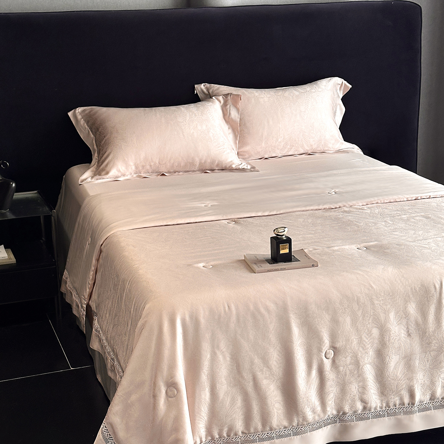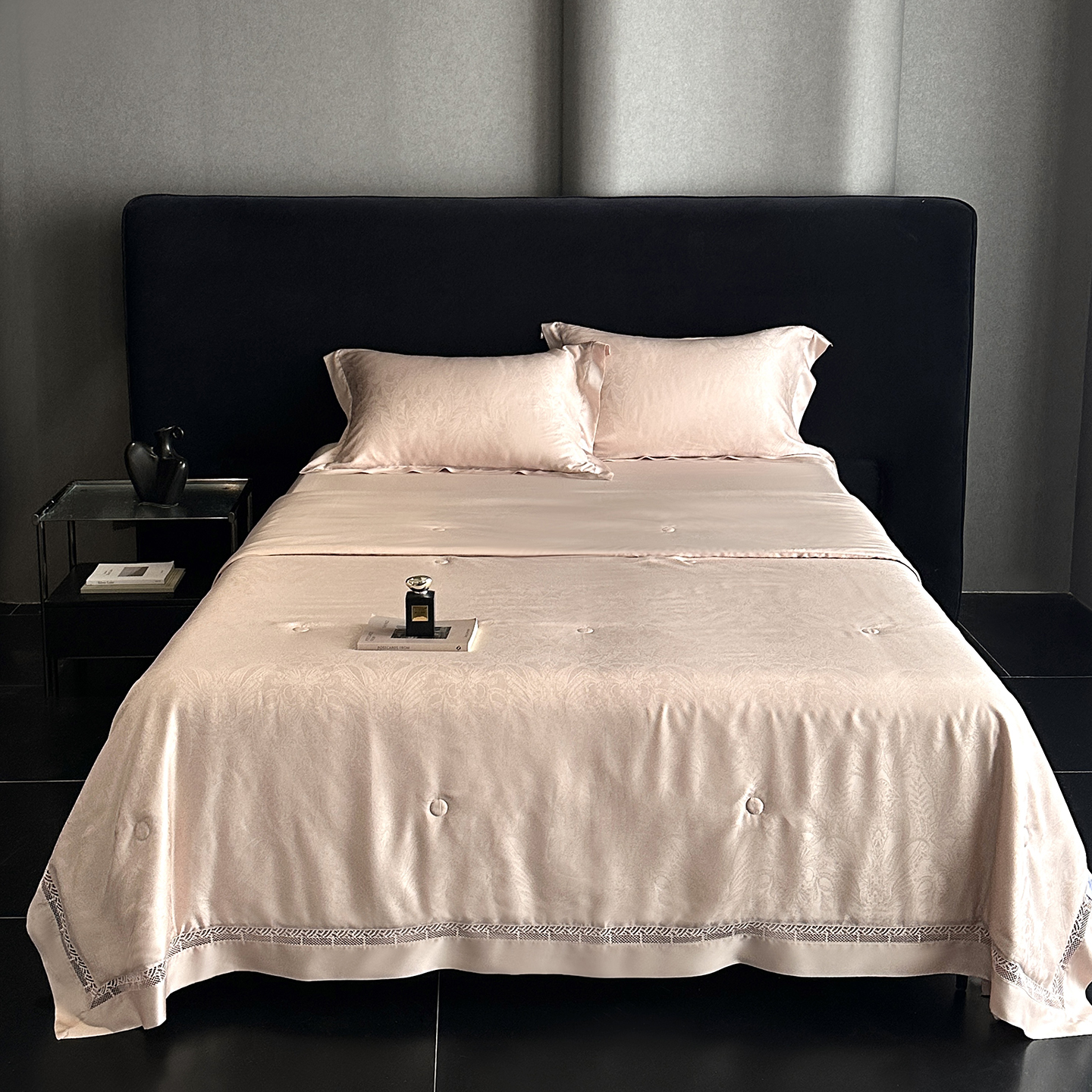 (总)南通朵美纺织品有限公司 2026新款100支天丝镂空提花斐庭系列夏被四件套,斐庭(粉玉),斐庭(黑灰),斐庭(米白),斐庭(浅灰)