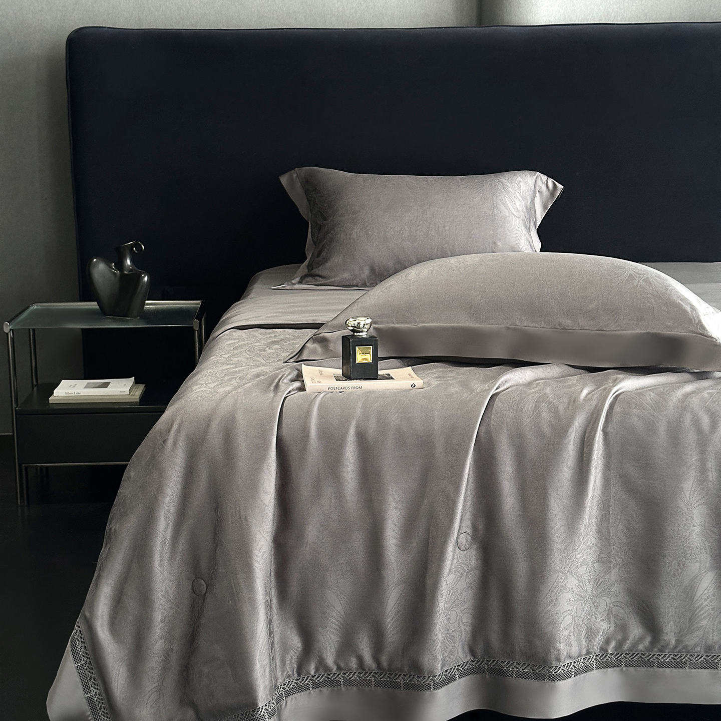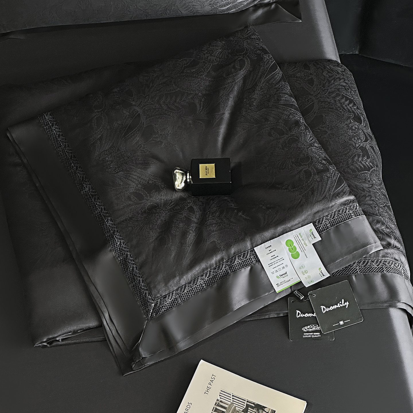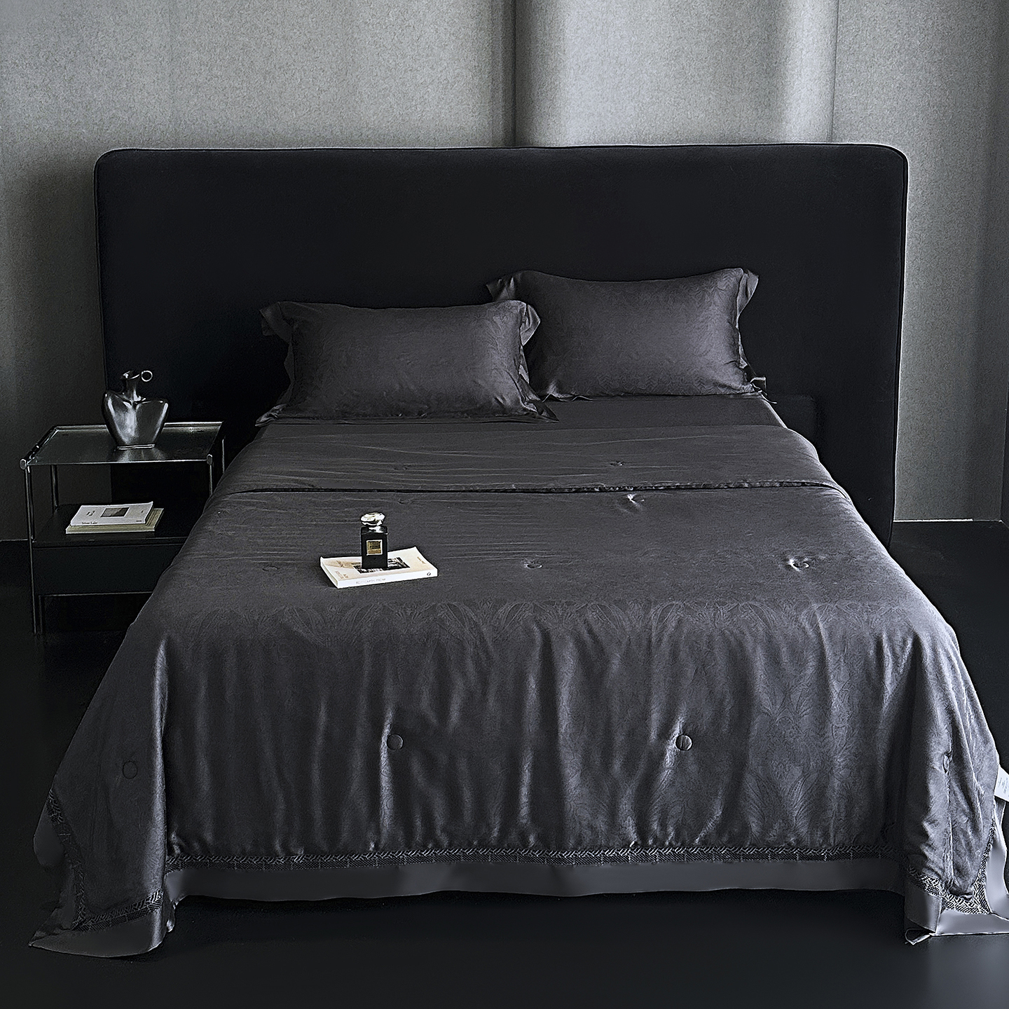 南通朵美纺织品有限公司 2026新款100支天丝镂空提花斐庭系列夏被四件套 斐庭(黑灰)
