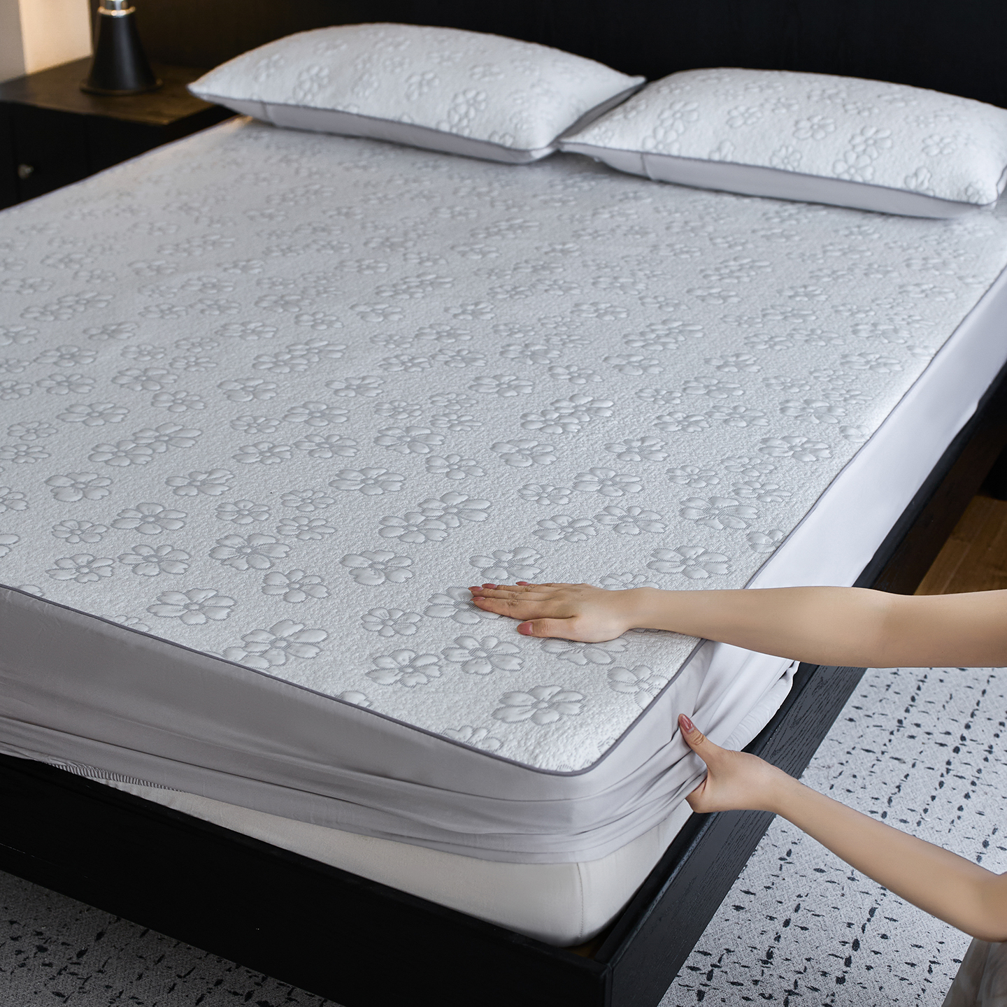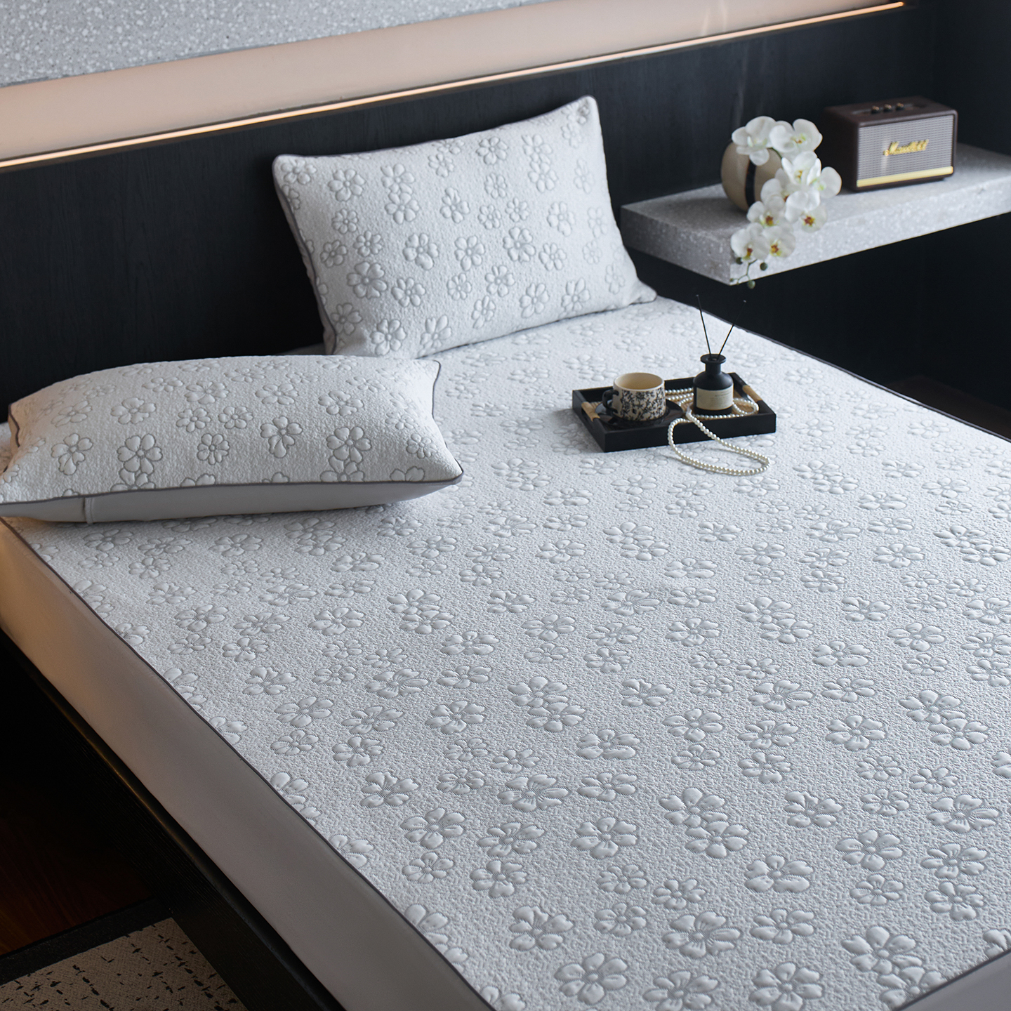 安莱生活 2026新品A类“冰糕”高分子PE550D床笠款(含银丝款)三件套凉席第二批 浅花-雾灰