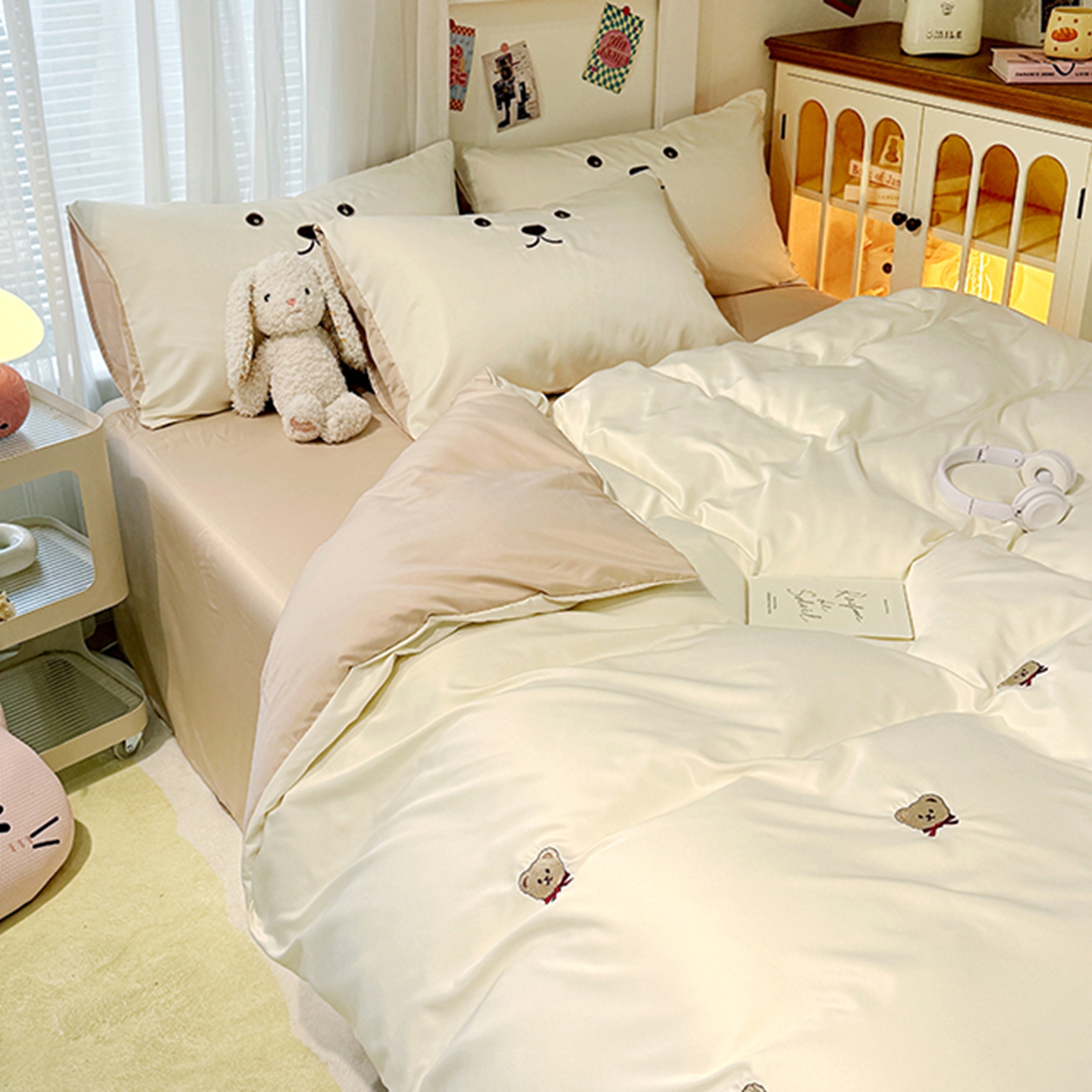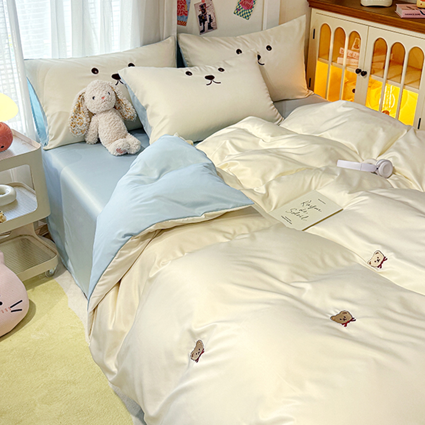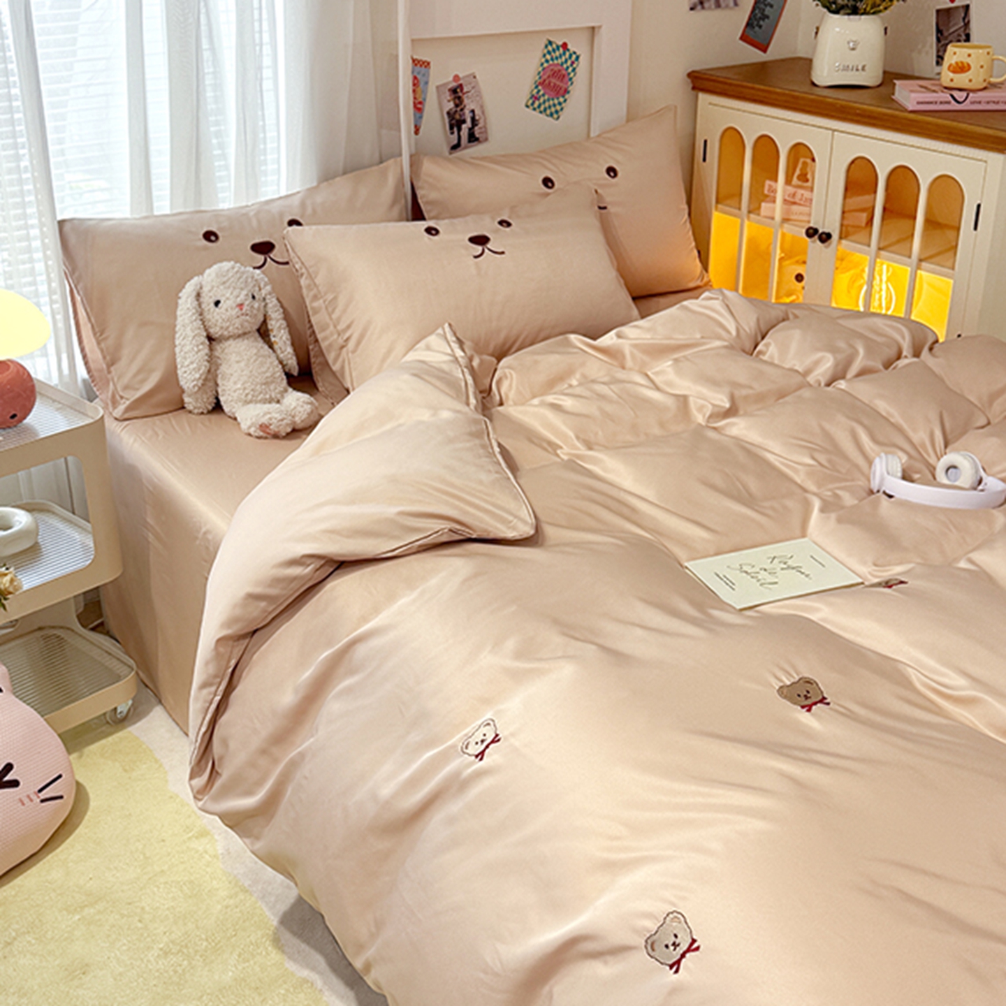 (总)色鬼布艺高端家居主号 2025秋冬新款网红款水洗棉四季款四件套,豹纹熊-粉,豹纹熊-绿,彩虹兔,格子熊,公仔蓝,梦幻粉,梦幻蓝,棋盘格公仔,太阳花粉,天使熊-粉,天使熊-咖,小熊头,熊头白,熊头橙,熊头咖,熊仔白