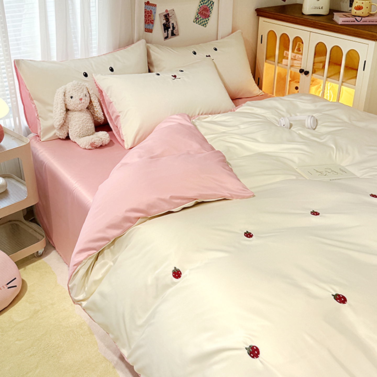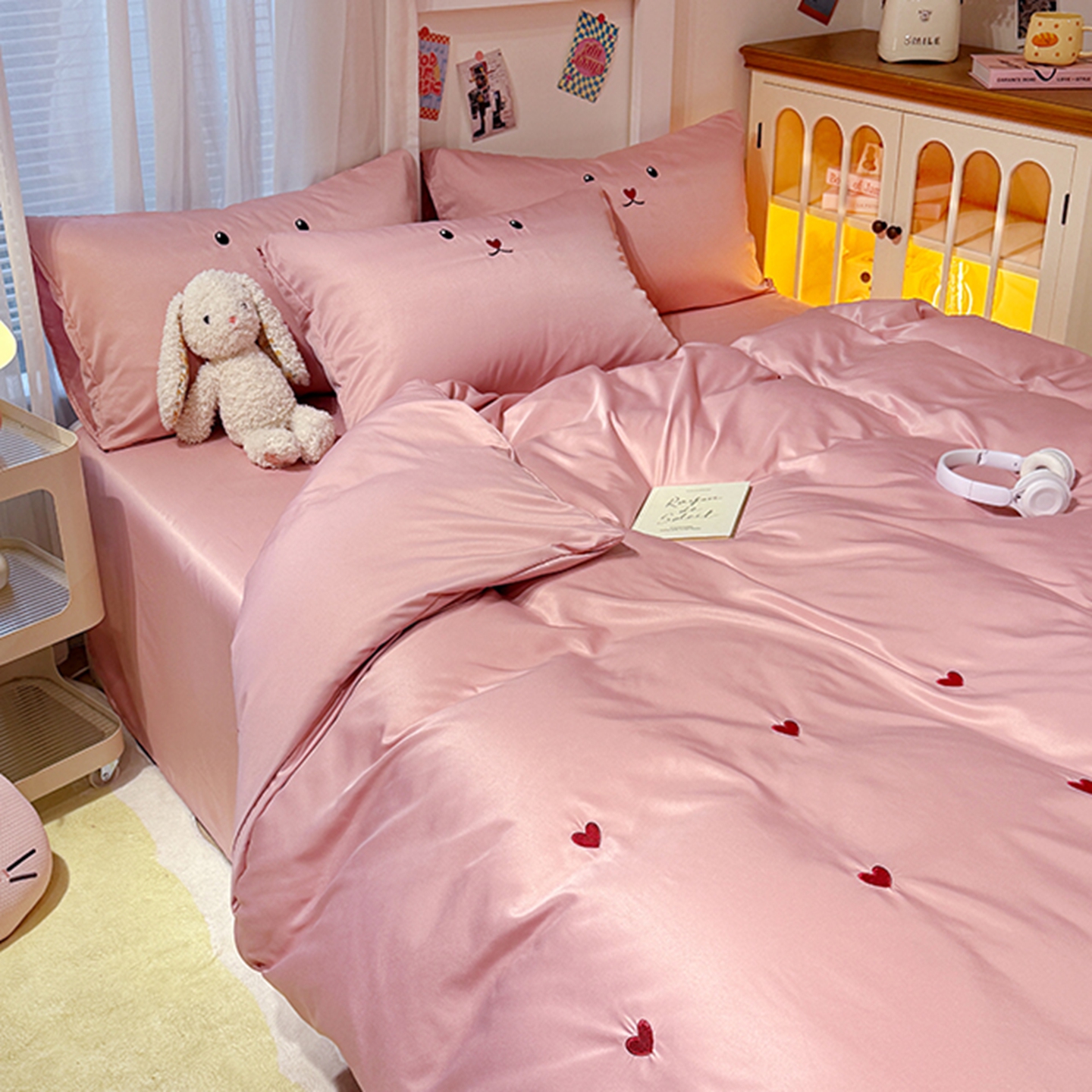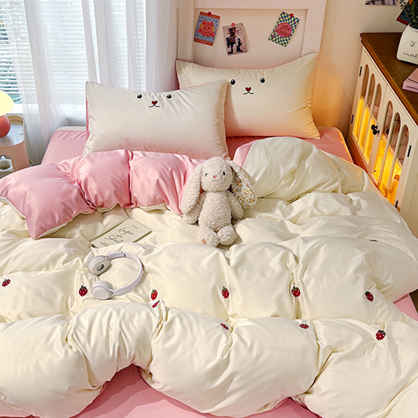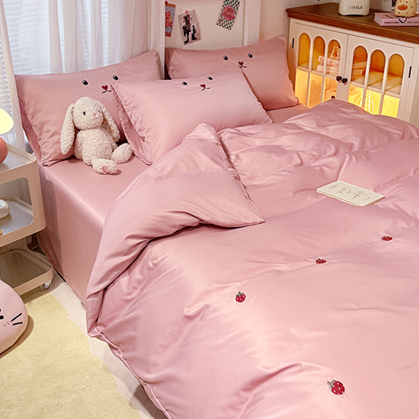 (总)色鬼布艺高端家居主号 2025秋冬新款网红款水洗棉四季款四件套,豹纹熊-粉,豹纹熊-绿,彩虹兔,格子熊,公仔蓝,梦幻粉,梦幻蓝,棋盘格公仔,太阳花粉,天使熊-粉,天使熊-咖,小熊头,熊头白,熊头橙,熊头咖,熊仔白