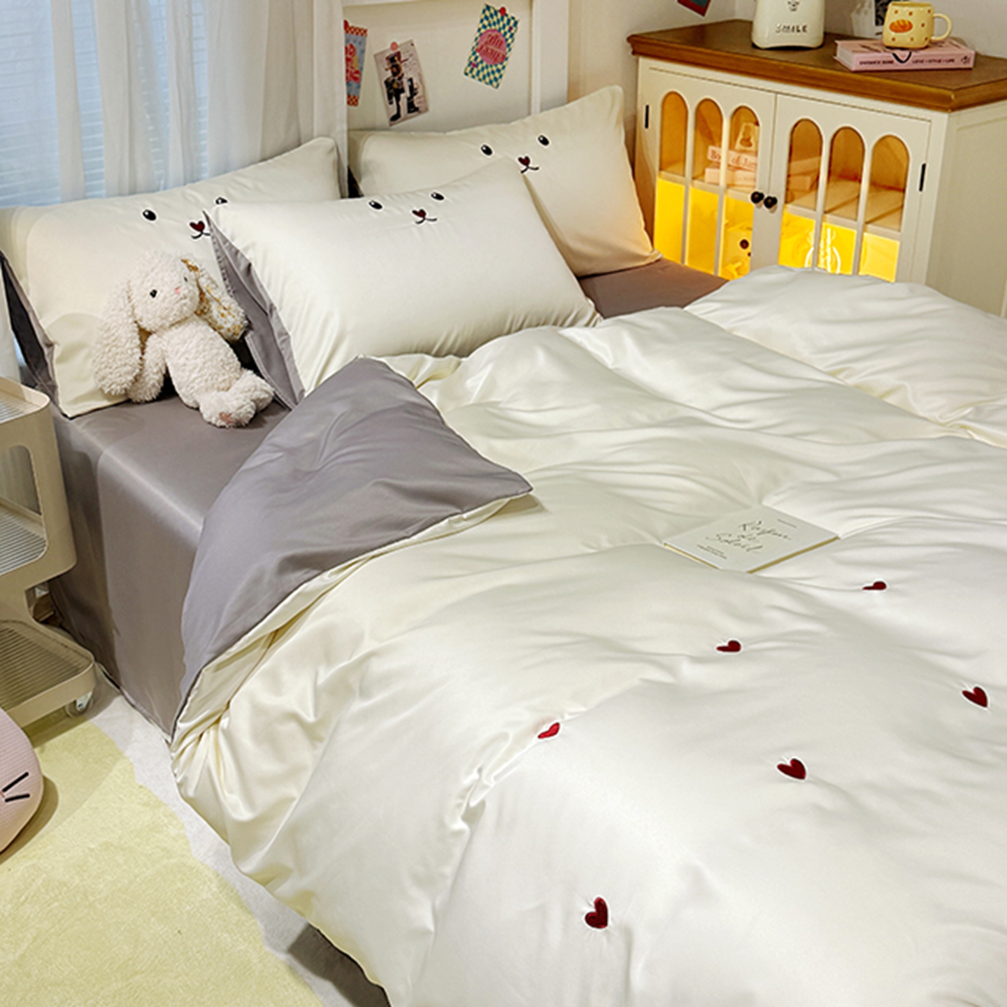(总)色鬼布艺高端家居主号 2026春夏新款小清新元气刺绣水洗真丝夏被夏凉被空调被,爱心-白灰,爱心-白紫,爱心-豆沙,爱心-灰,爱心-奶白,草莓-白粉,草莓-豆沙,小熊-白咖,小熊-白蓝,小熊-奶咖