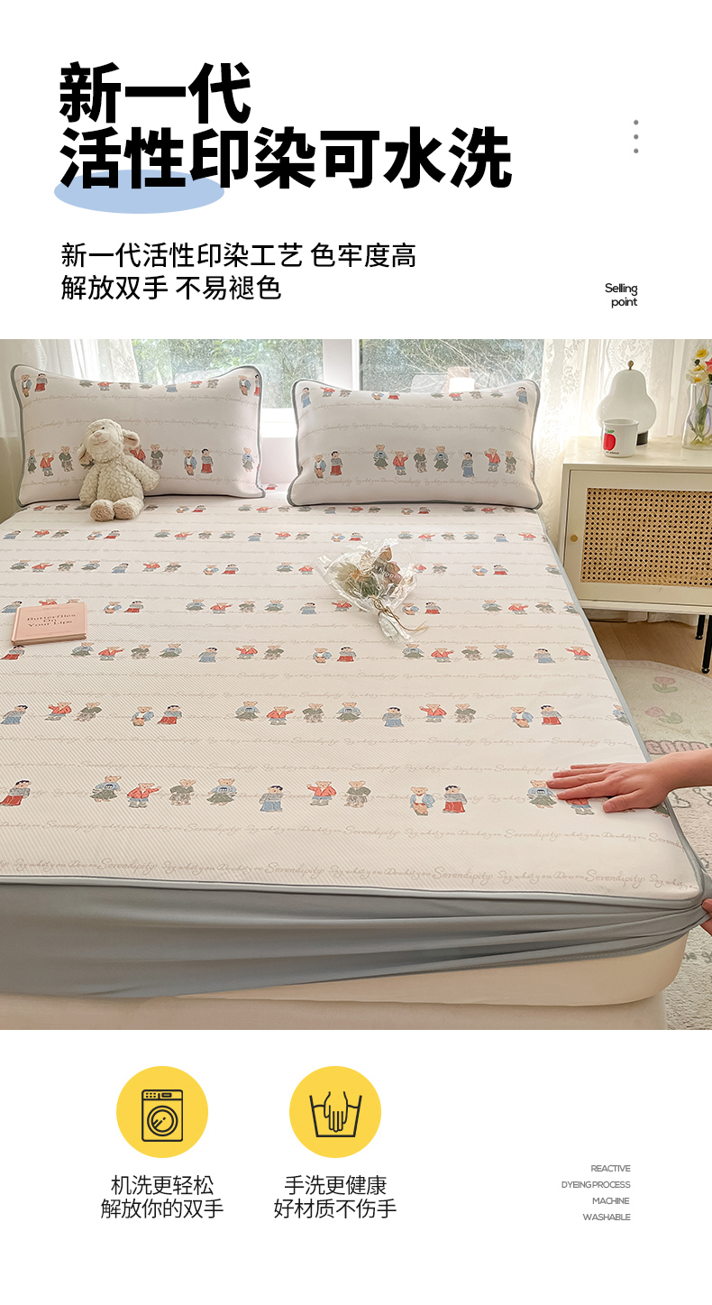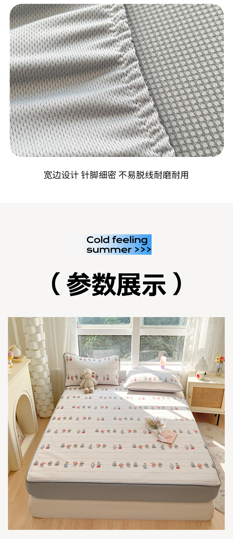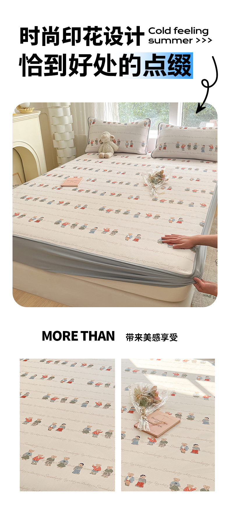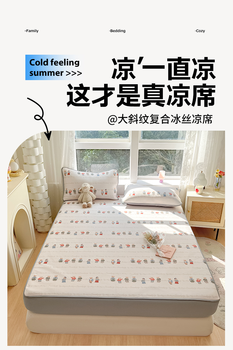 商品名称:女子家纺 2026新款大斜纹复合冰丝凉席-床笠款 萌熊印象-床笠款