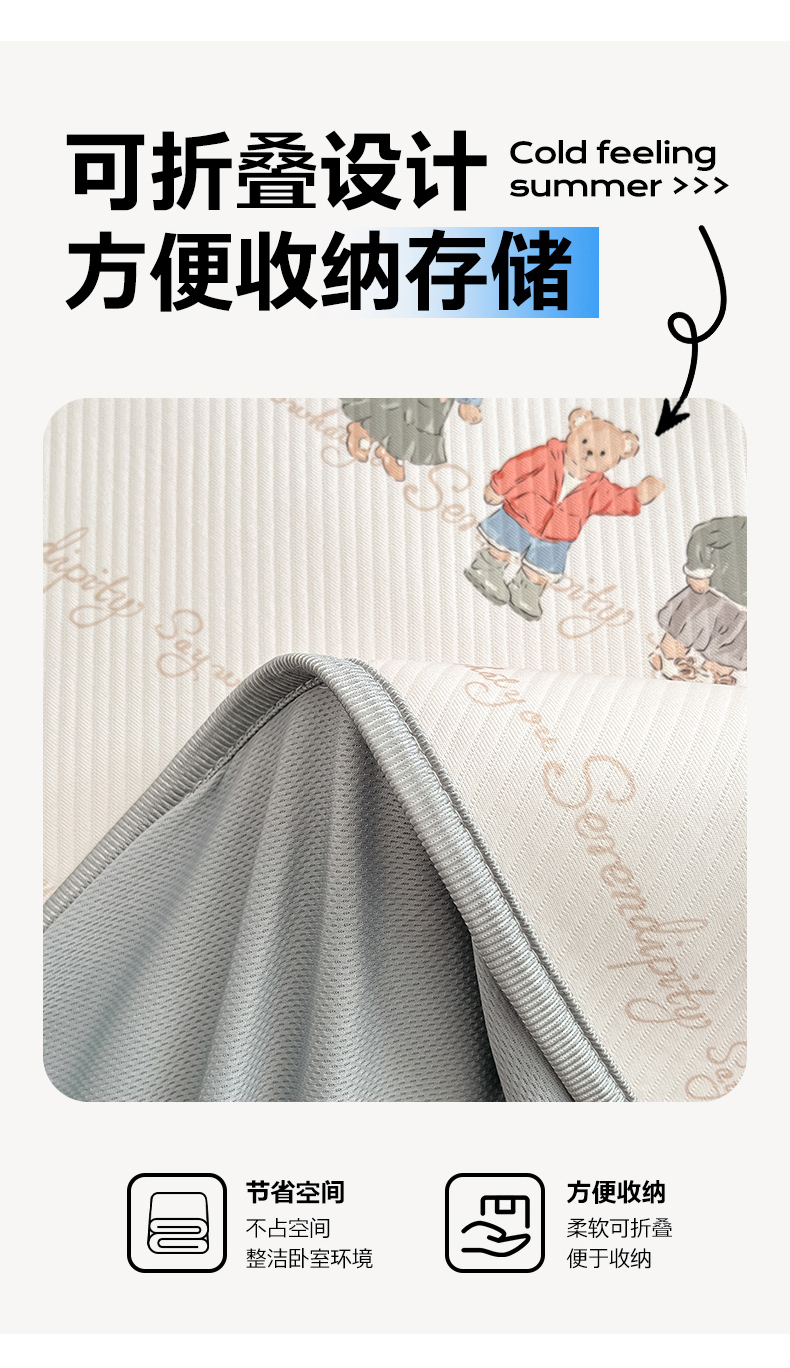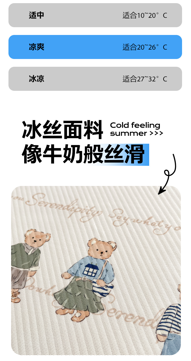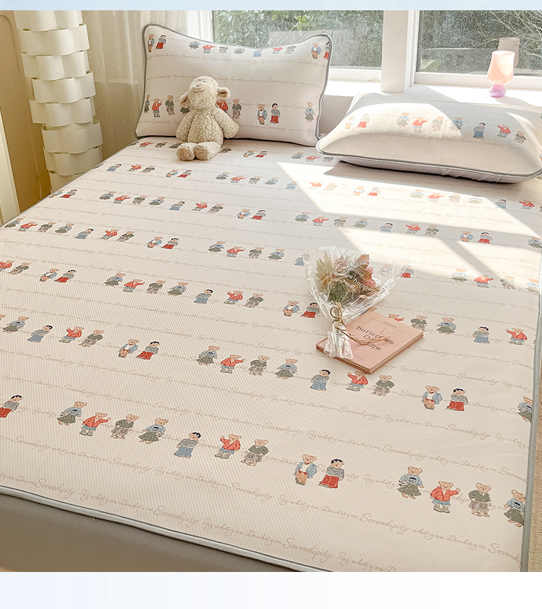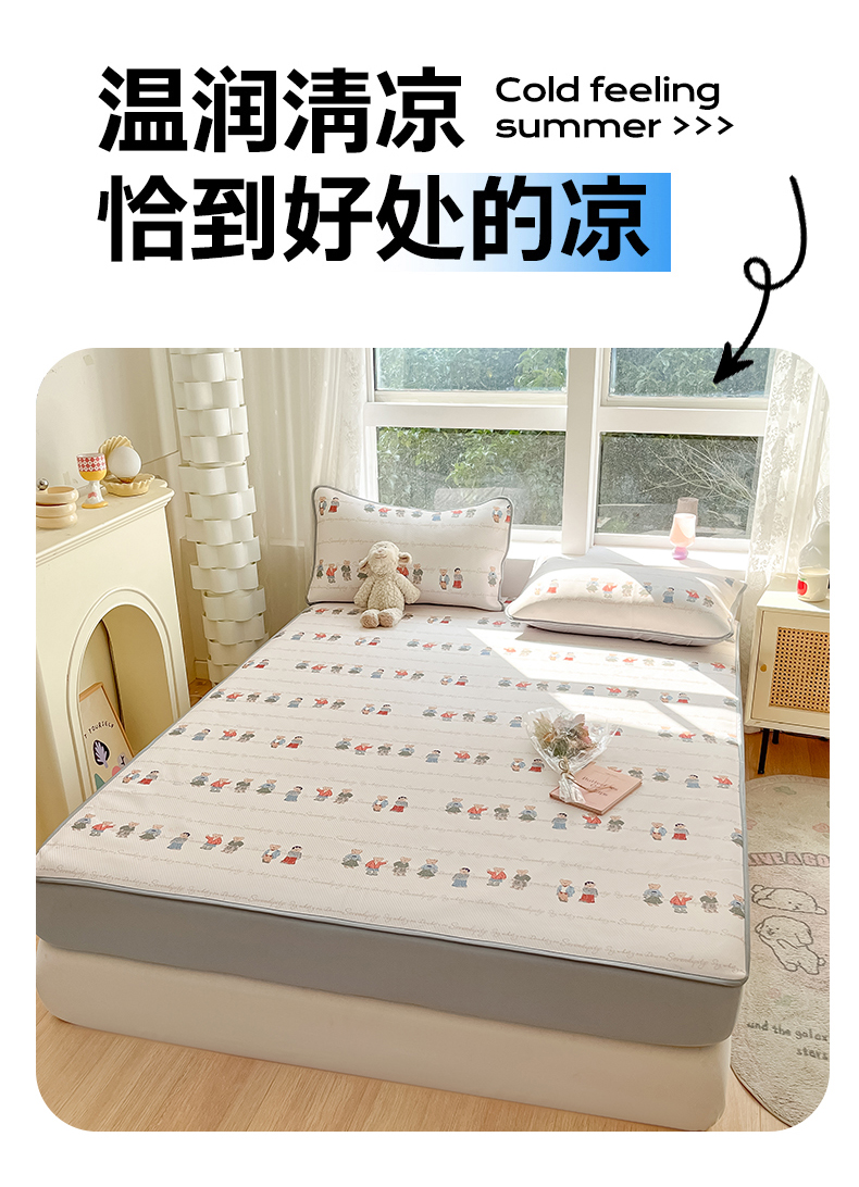 商品名称:女子家纺 2026新款大斜纹复合冰丝凉席-床笠款 萌熊印象-床笠款