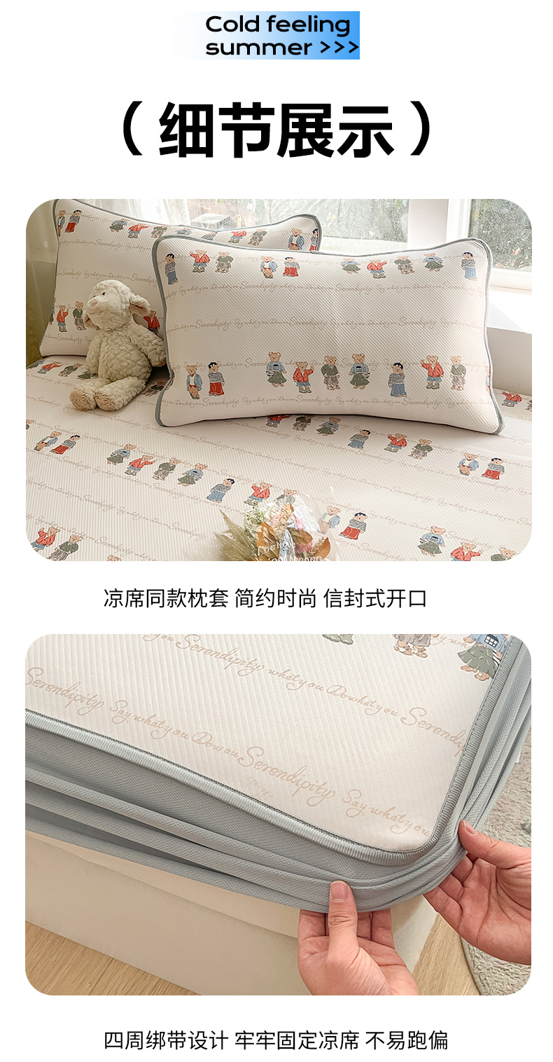 女子家纺 2026新款大斜纹复合冰丝凉席-床笠款 萌熊印象-床笠款