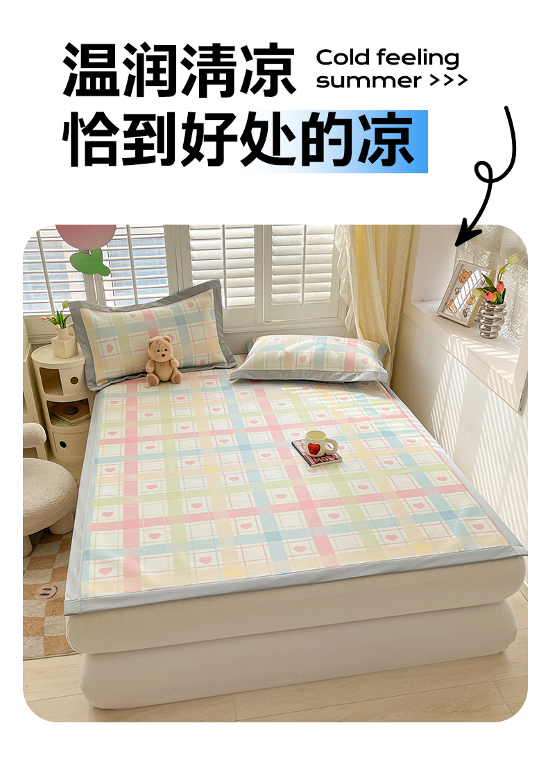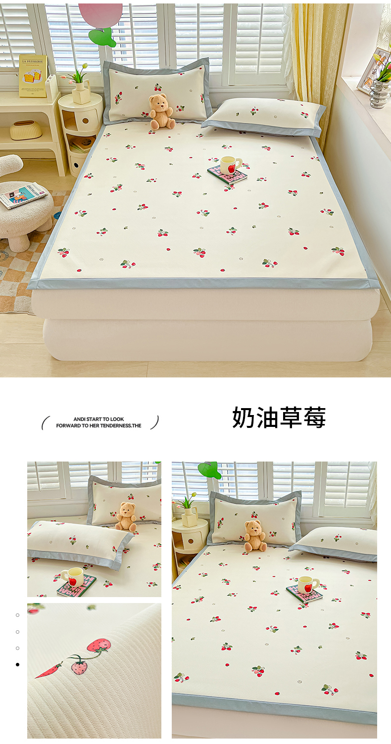 (总)女子家纺 2026新款大斜纹复合冰丝凉席-床笠款,爱心气泡粉-床笠款,萌熊印象-床笠款,奶油草莓-床笠款,拈花湾蓝-床笠款,七彩龙-床笠款,奇妙幻想-床笠款,水木年华-床笠款,午后茶花-床笠款,悠悠小元-床笠款,尤克克里粉-床笠款