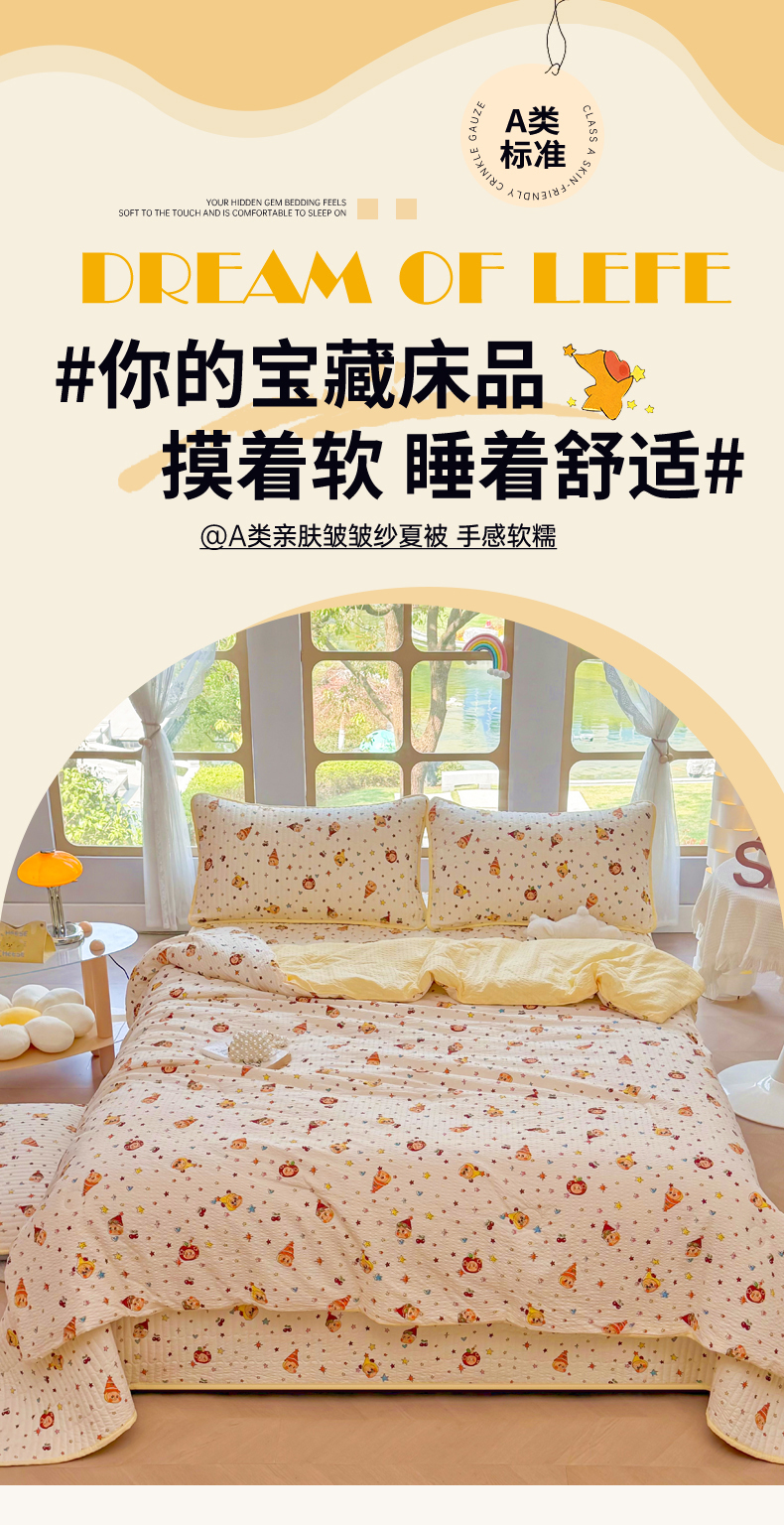 商品名称:悠米悠家 2026春夏新款泡泡纱印花夏被夏凉被空调被 星星童话屋