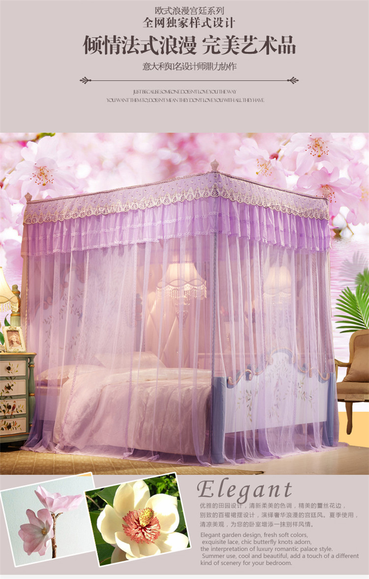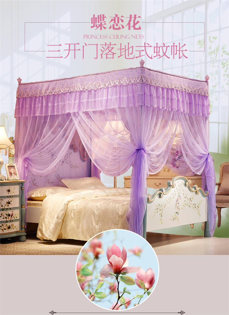 新太阳家纺 新款宫廷蚊帐蝶恋花紫色