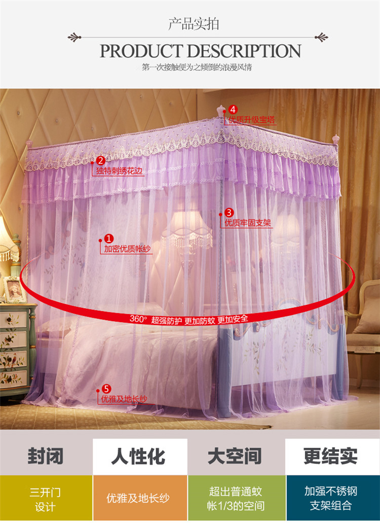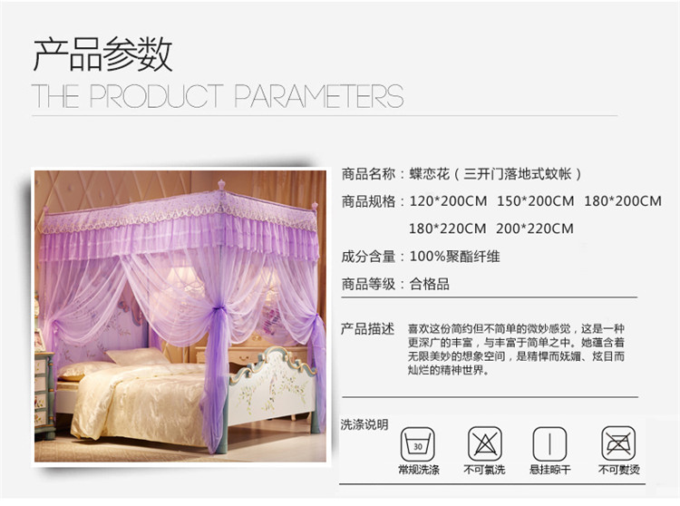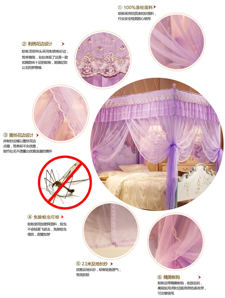 商品名称:新太阳家纺 新款宫廷蚊帐蝶恋花紫色
