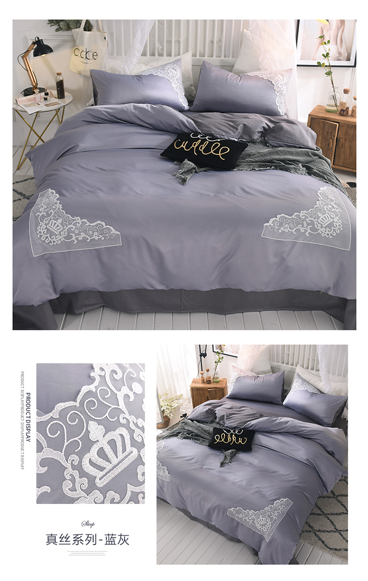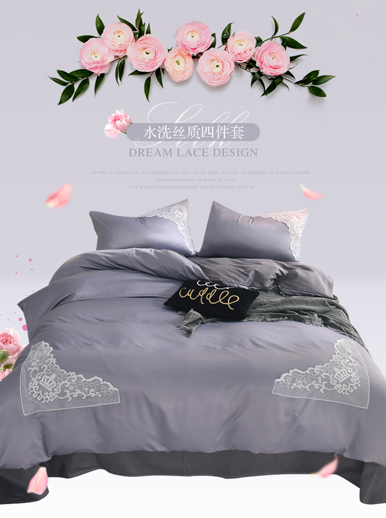 艾米家居18年新款水洗真丝四件套(床单床笠款)蓝灰