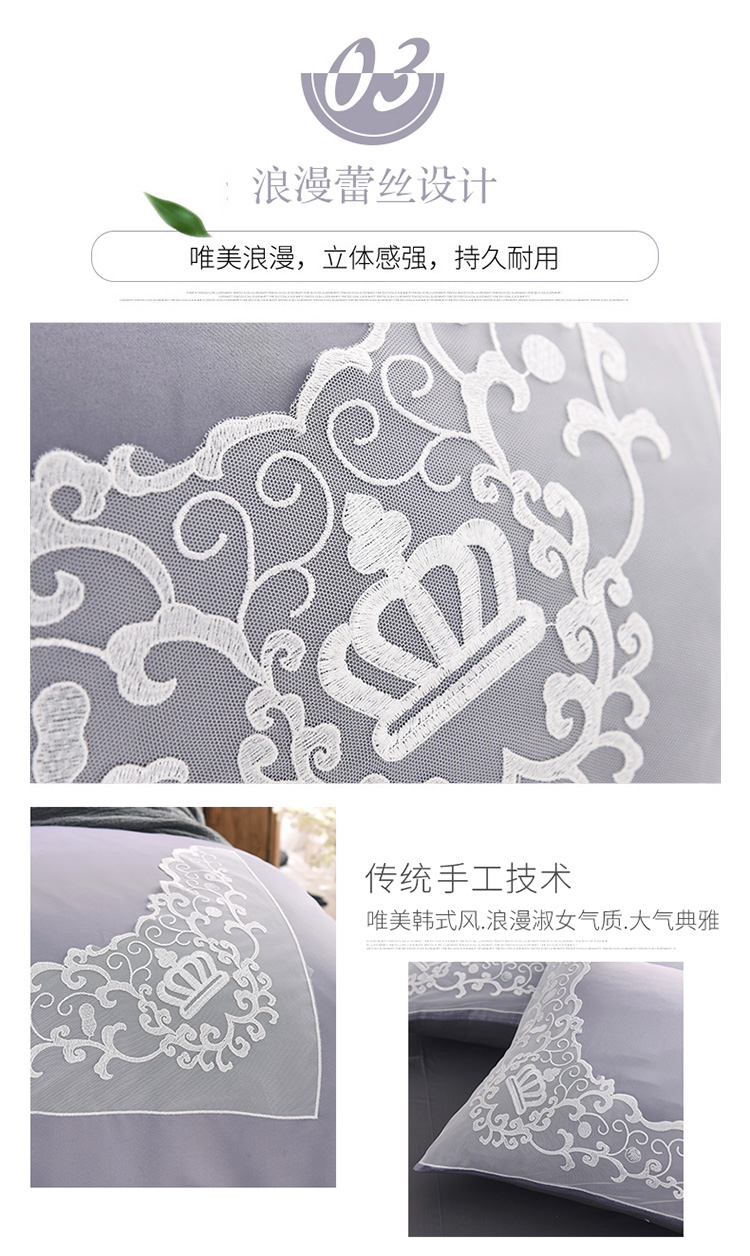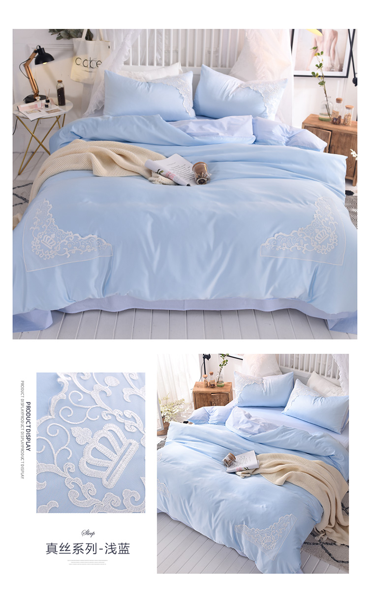 总艾米家居2025新款水洗真丝雪纺花边贴布绣四件套-达菲小熊,白色,薄荷绿,宾利蓝,淡粉,豆沙,鹅黄,灰色,天蓝,香槟,玉色
