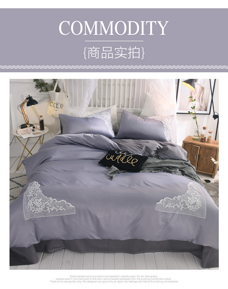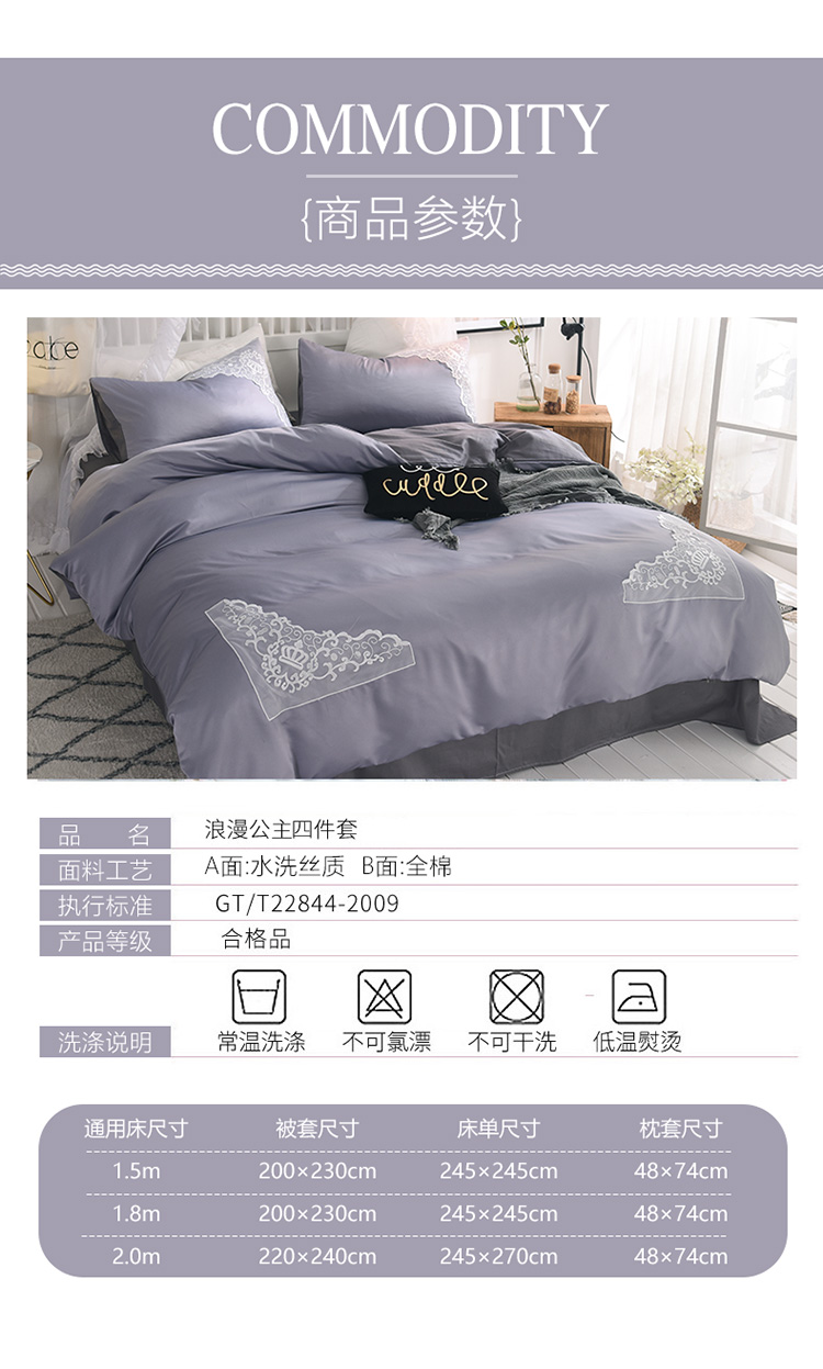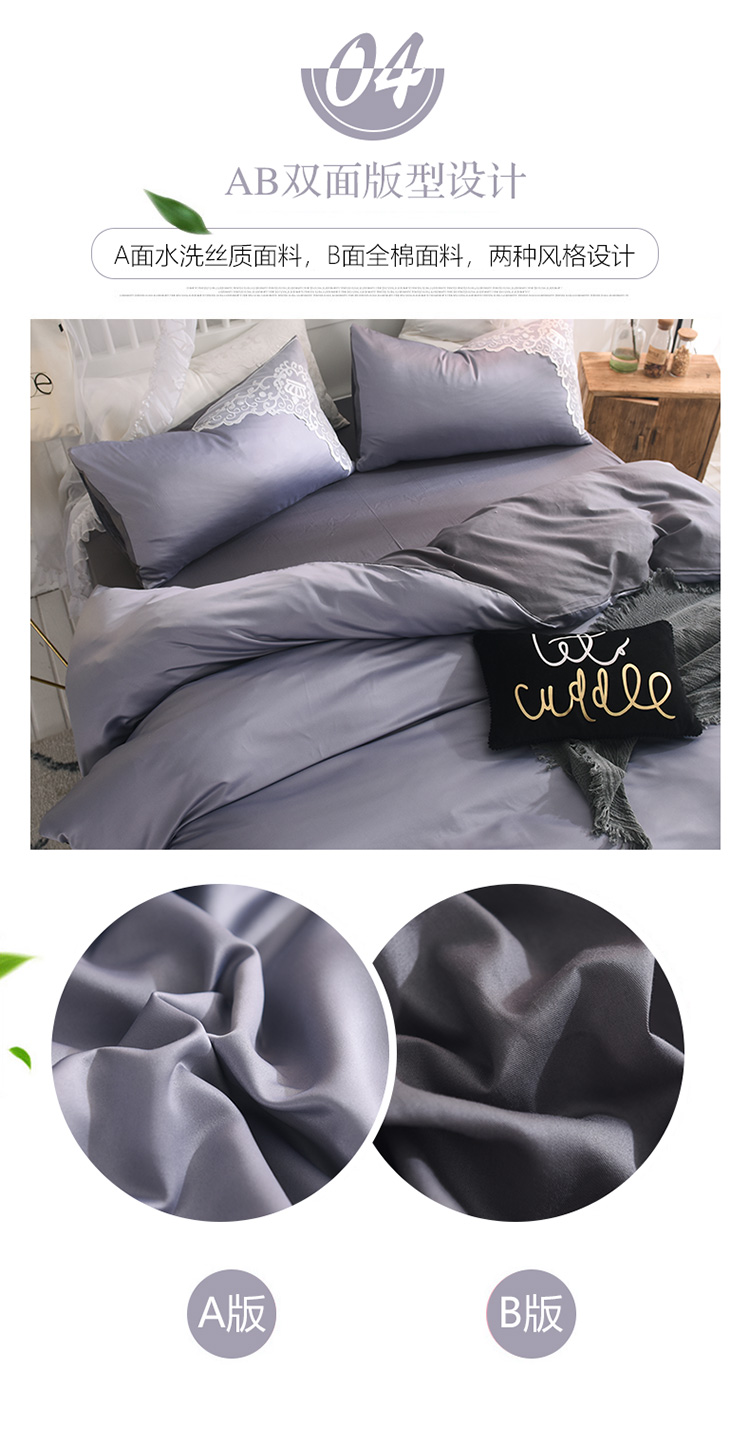 商品名称:艾米家居18年新款水洗真丝四件套(床单床笠款)蓝灰