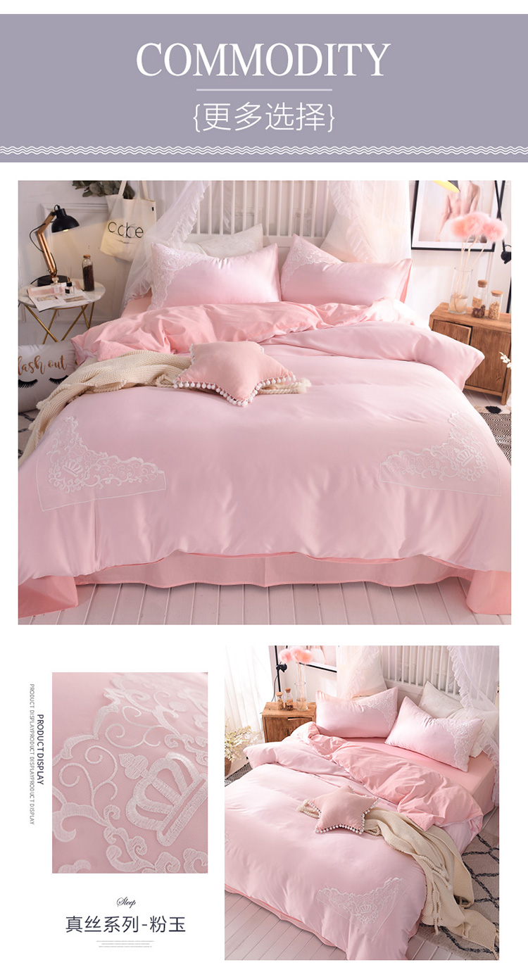 艾米家居 2025新款韩版双层花边轻奢浮雕系列水洗冰丝四件套 粉花边,粉花边