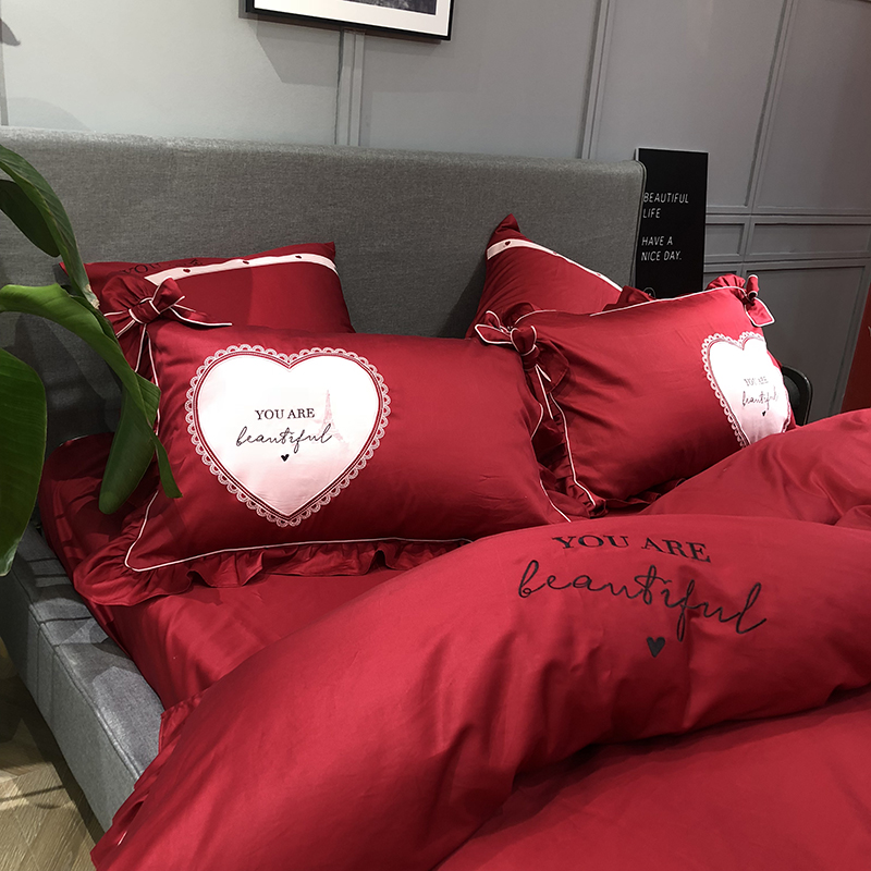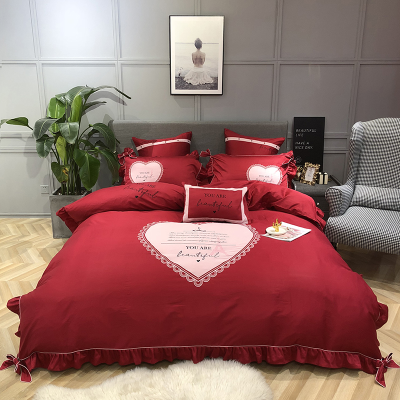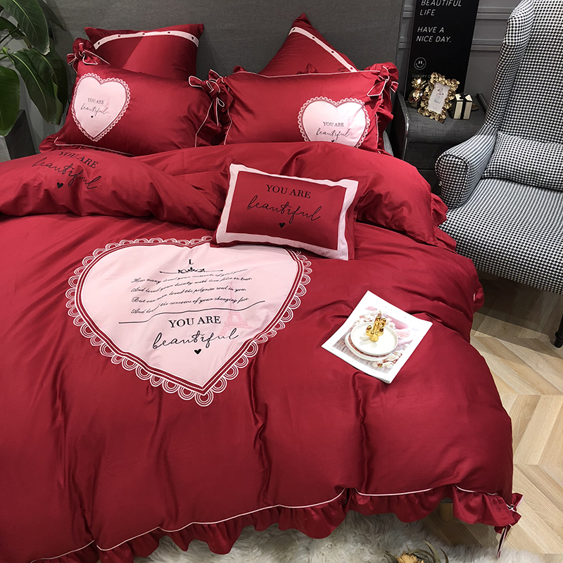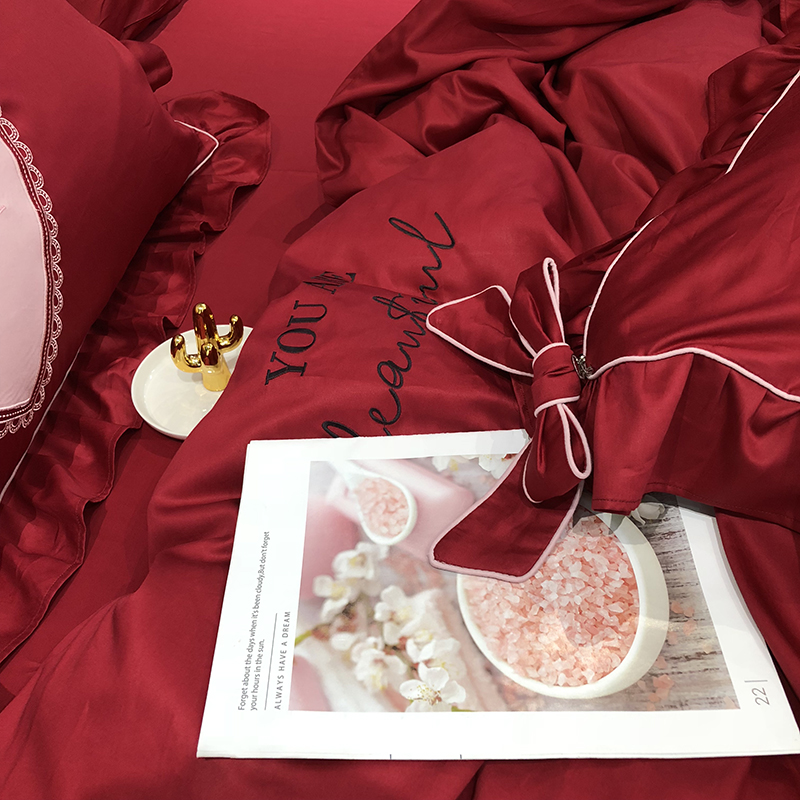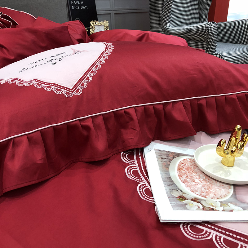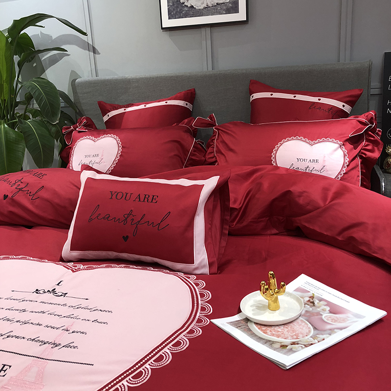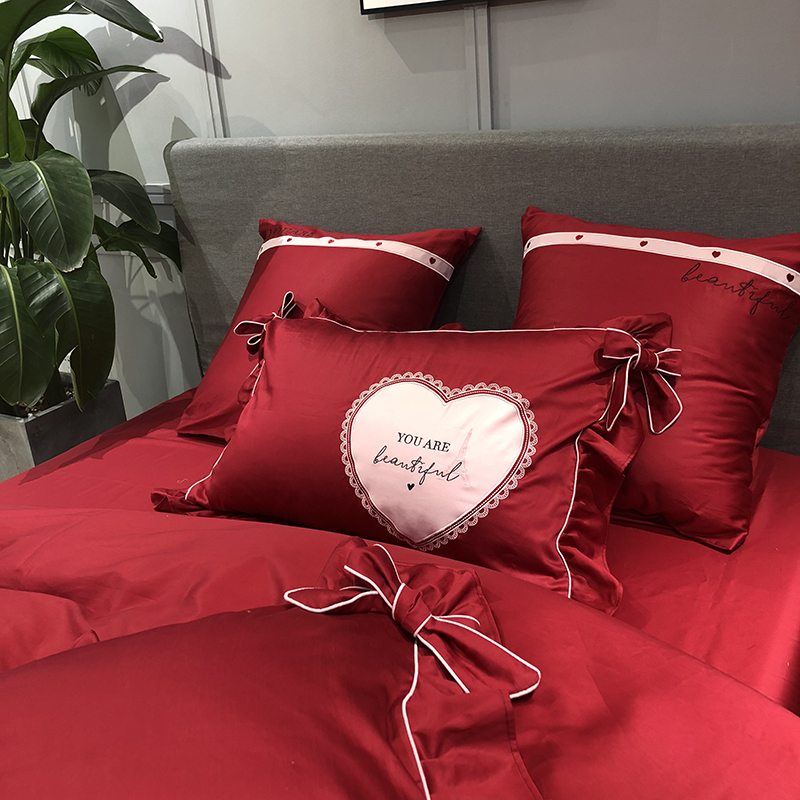 当前位置: 91家纺网 > 商品网购 > 床品套件 > 四件套 > 长绒棉四件套 > 馨蕊家居 2021新款60长绒棉绣花四件套 一见倾心-温莎红