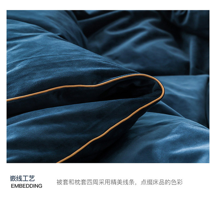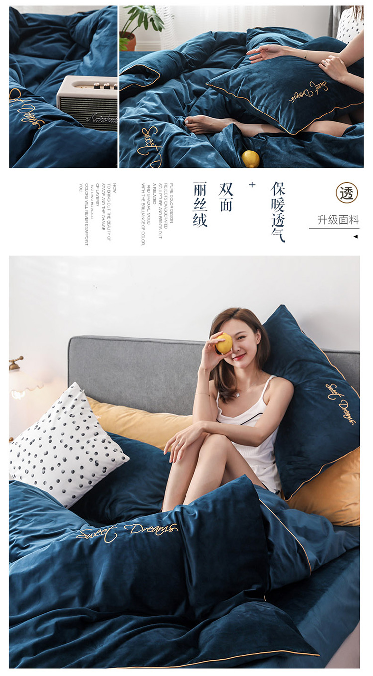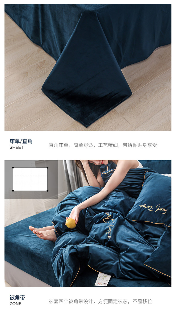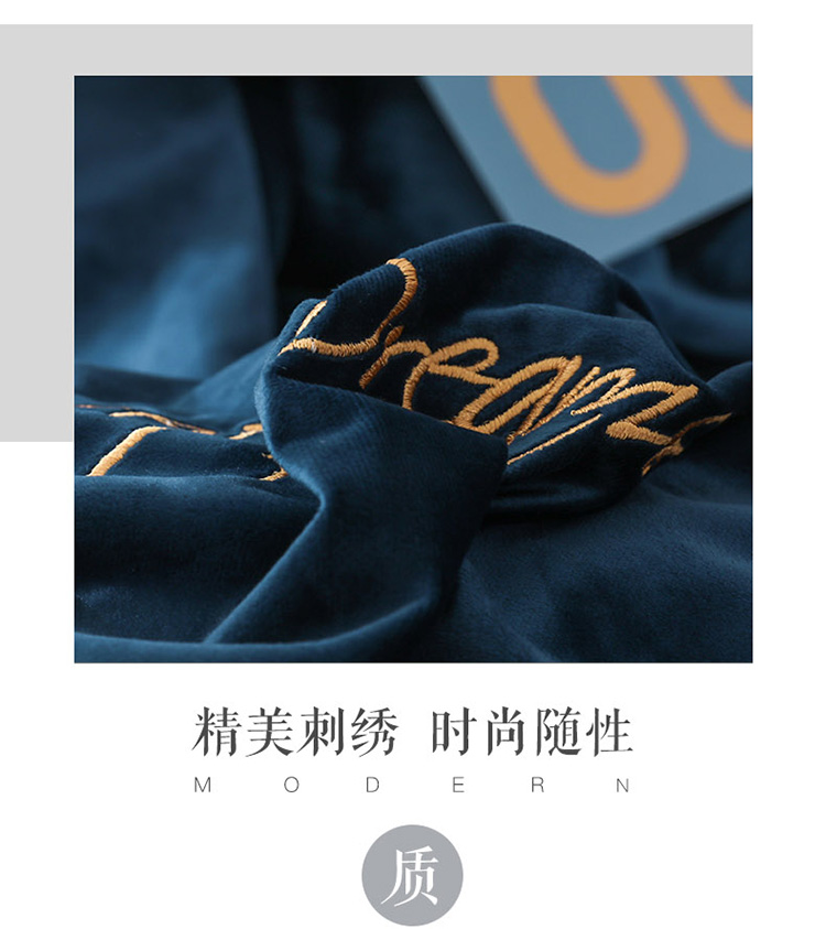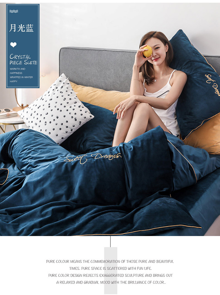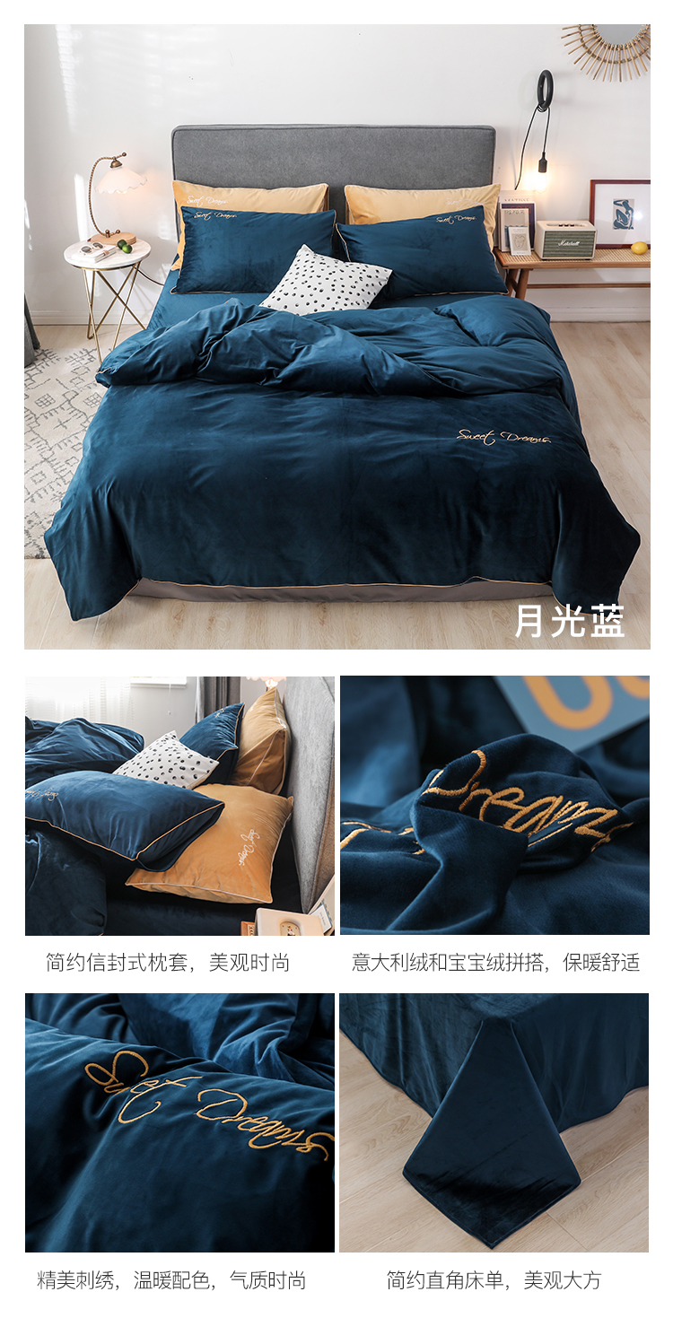 商品名称:爱缦 2019新款水晶绒丽丝绒绣花工艺款四件套 月光蓝