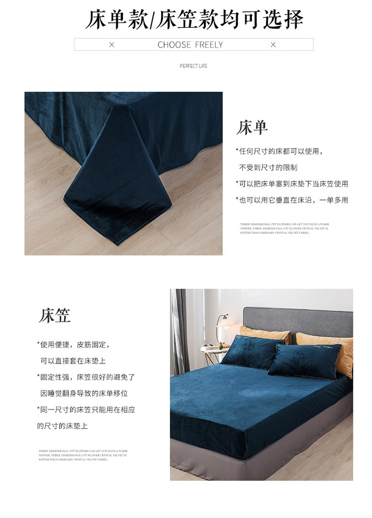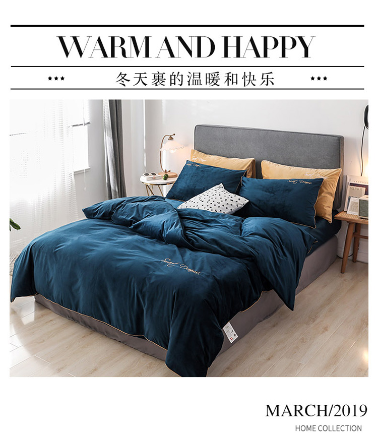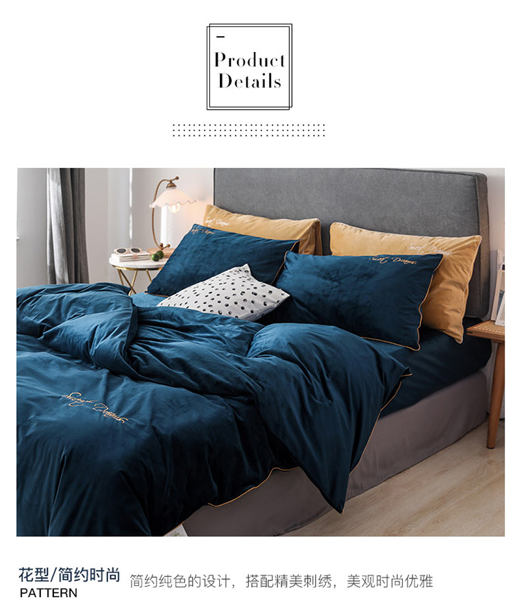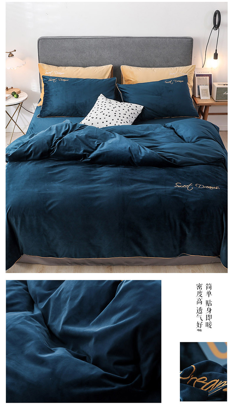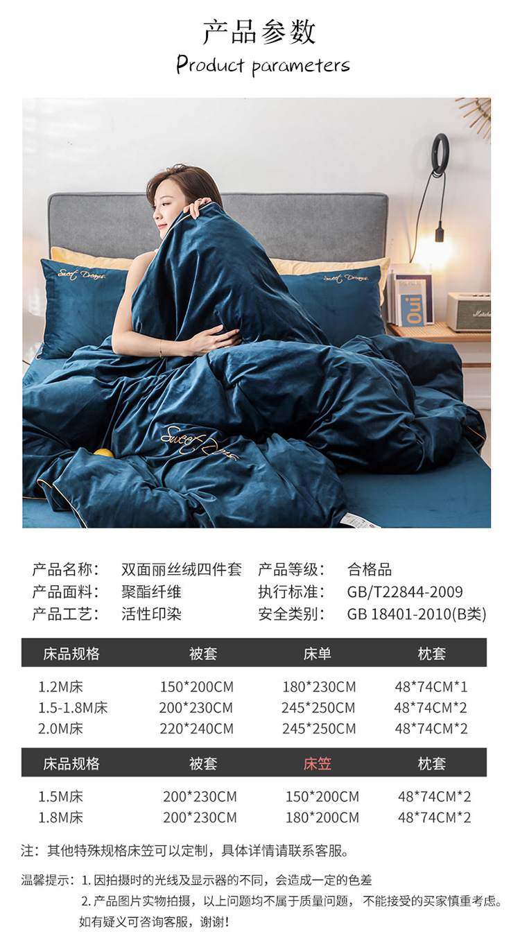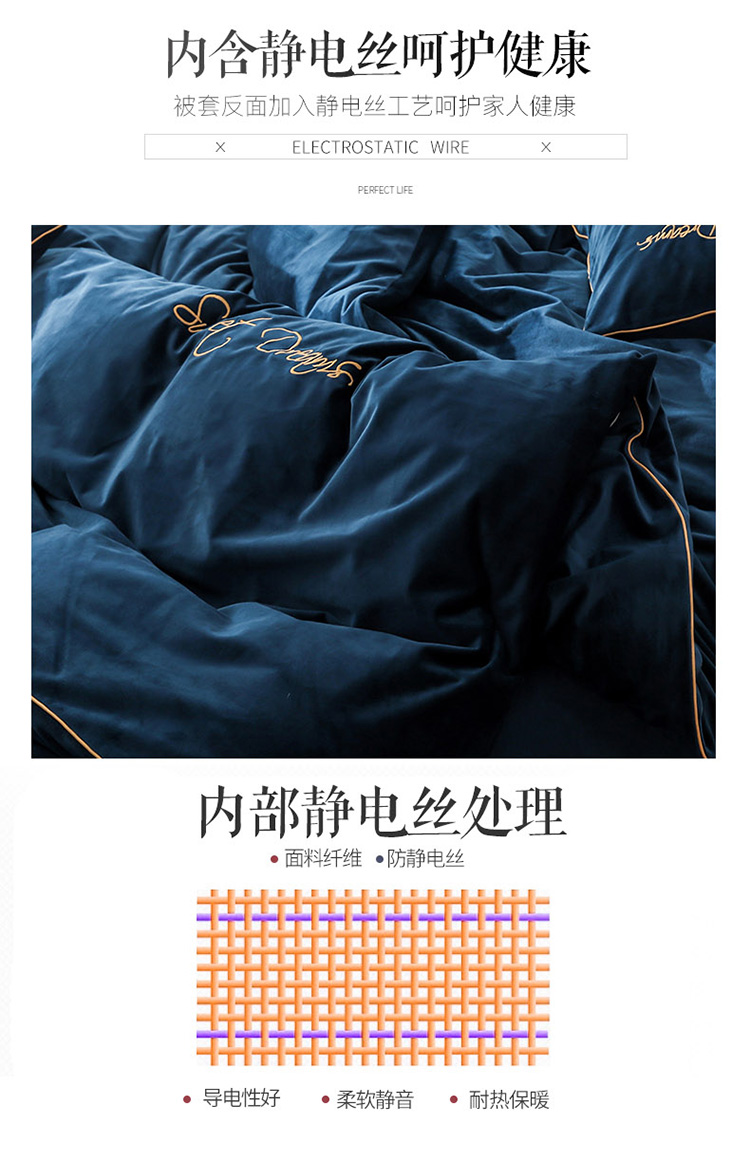 商品名称:爱缦 2019新款水晶绒丽丝绒绣花工艺款四件套 月光蓝