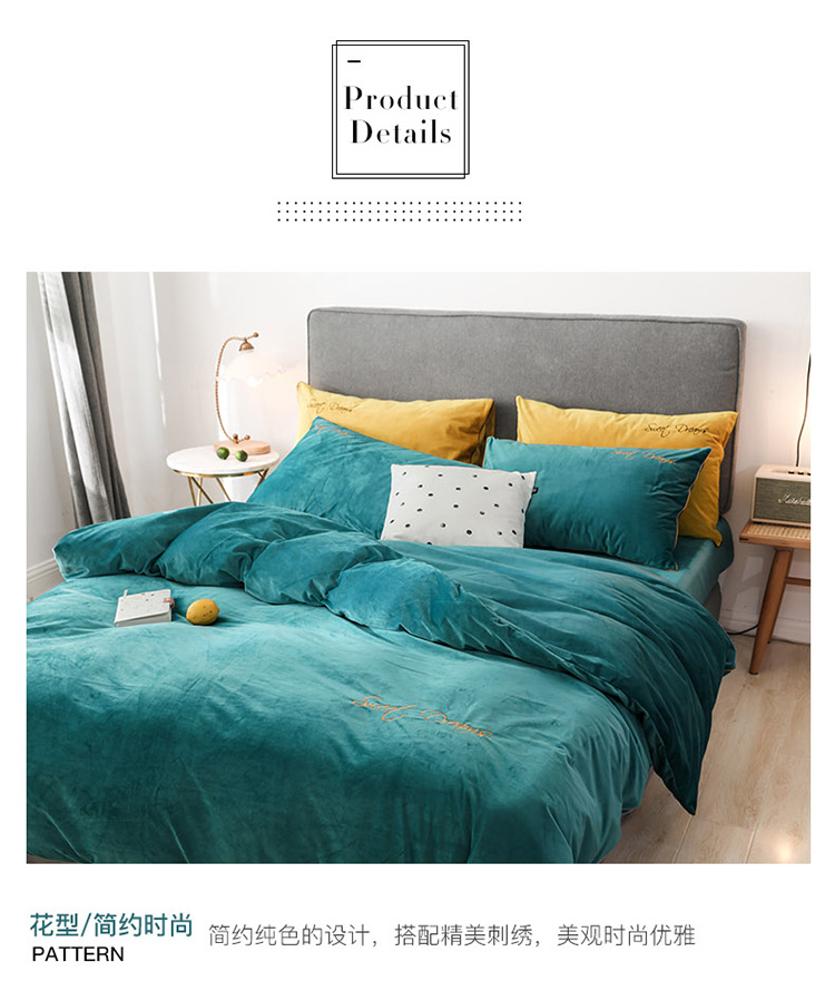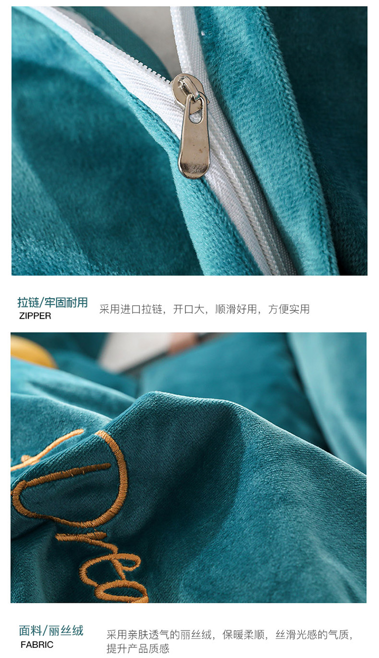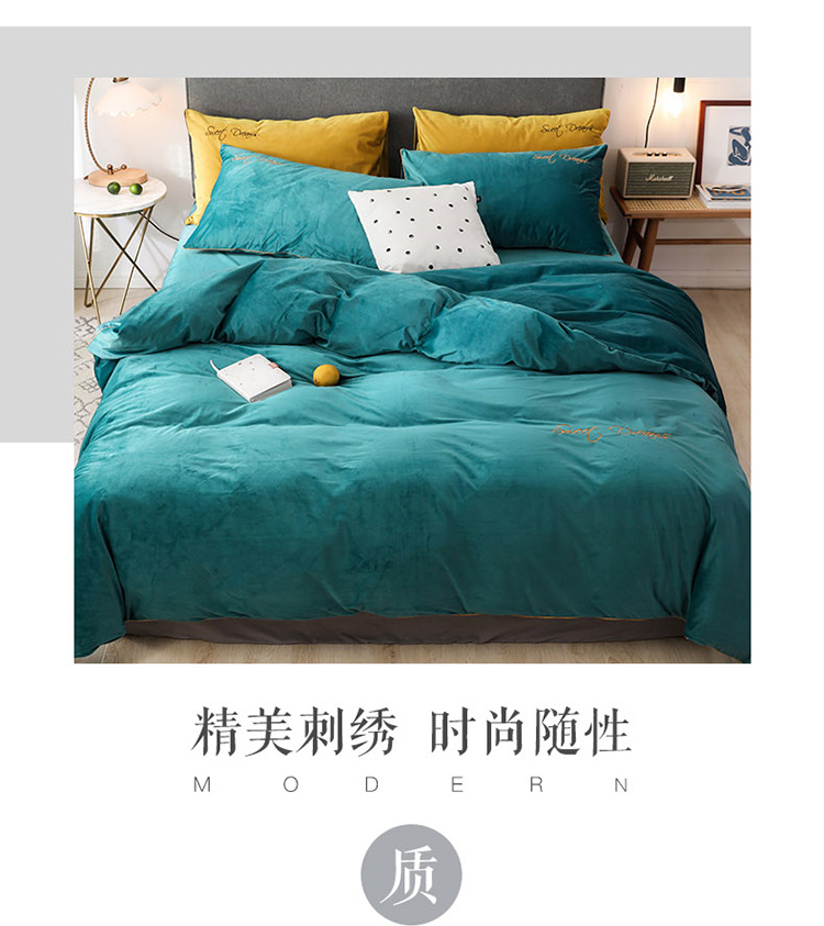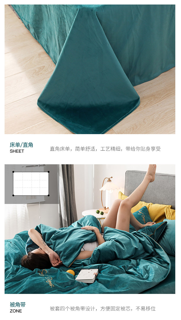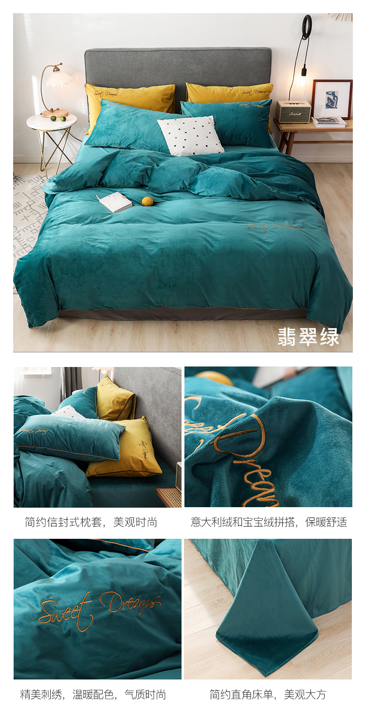 商品名称:爱缦 2019新款水晶绒丽丝绒绣花工艺款四件套 翡翠绿