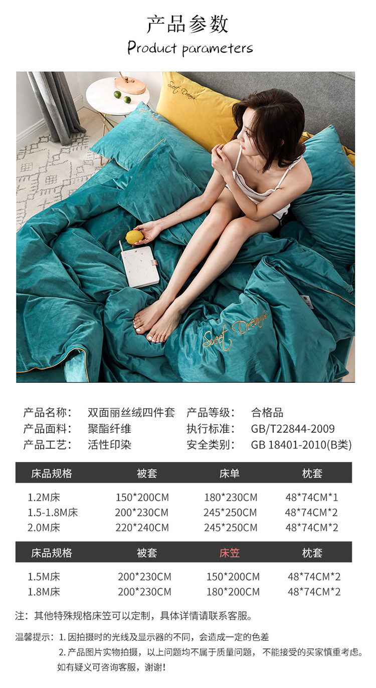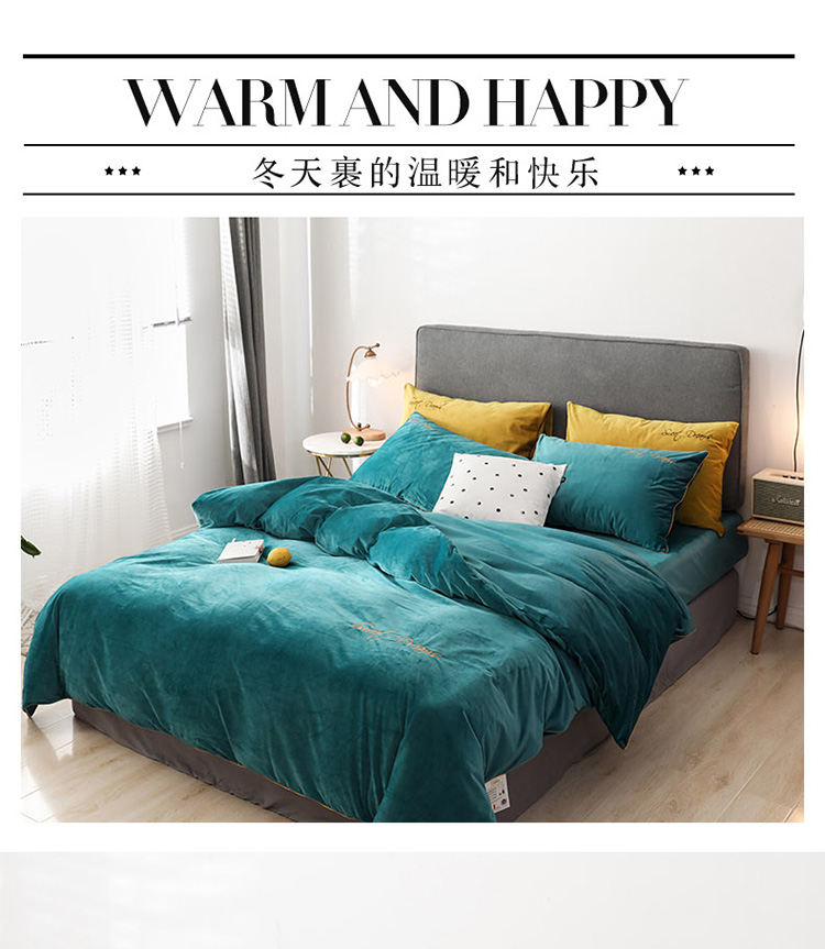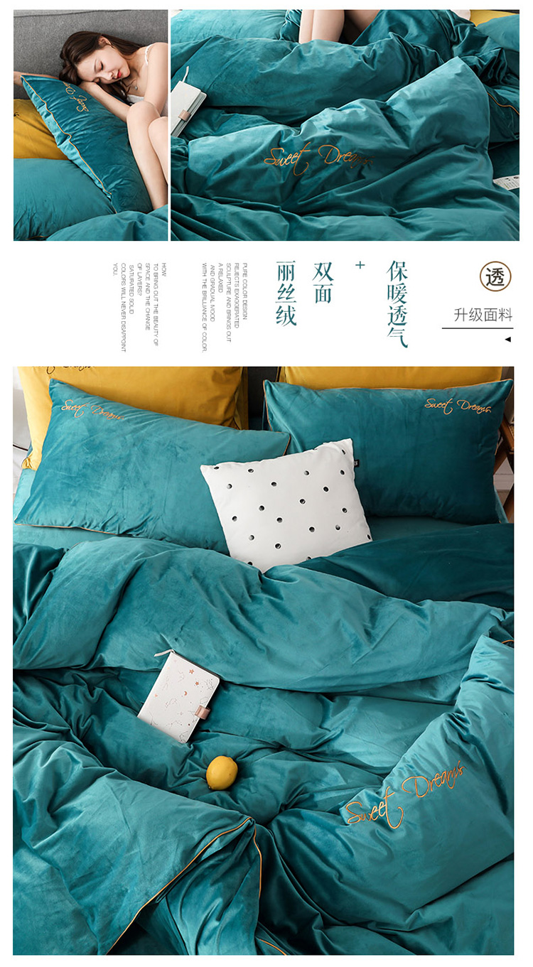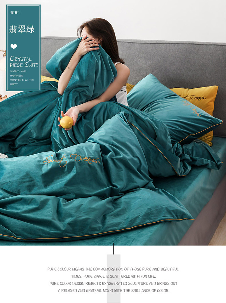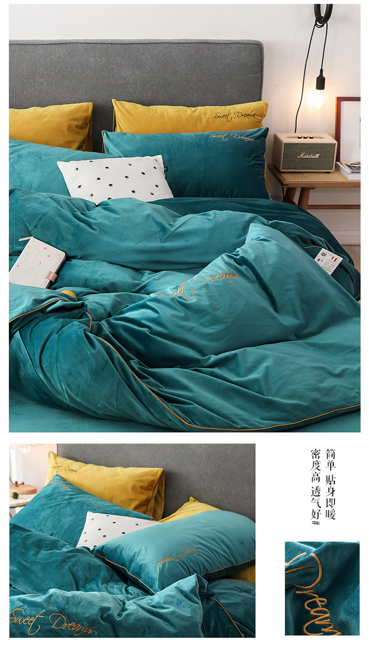 商品名称:爱缦 2019新款水晶绒丽丝绒绣花工艺款四件套 翡翠绿