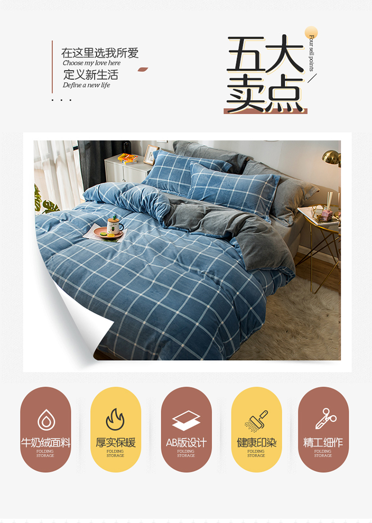 商品名称:新太阳 2022新款牛奶绒四件套 格韵