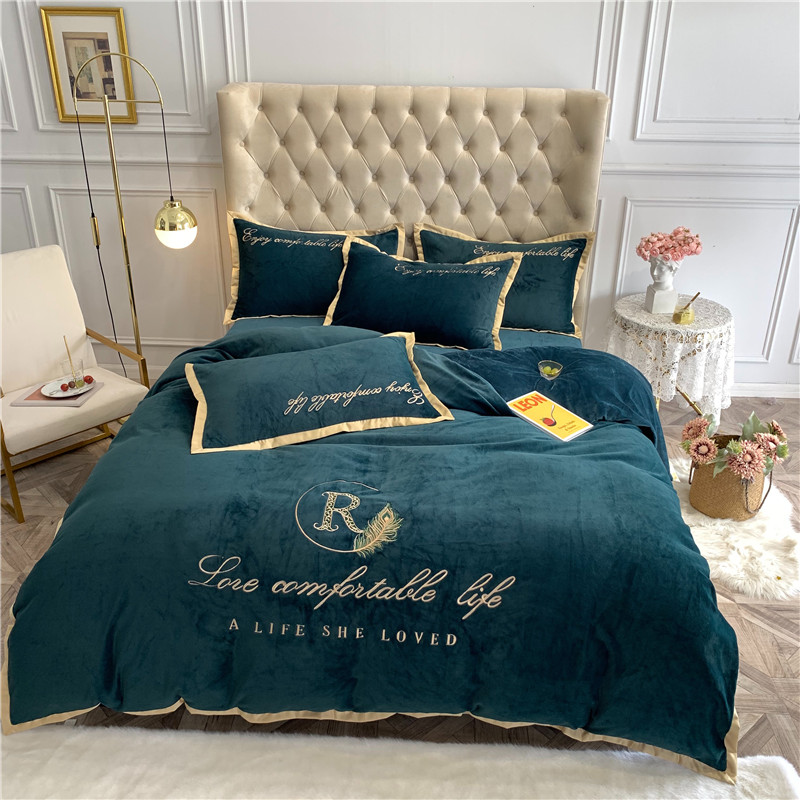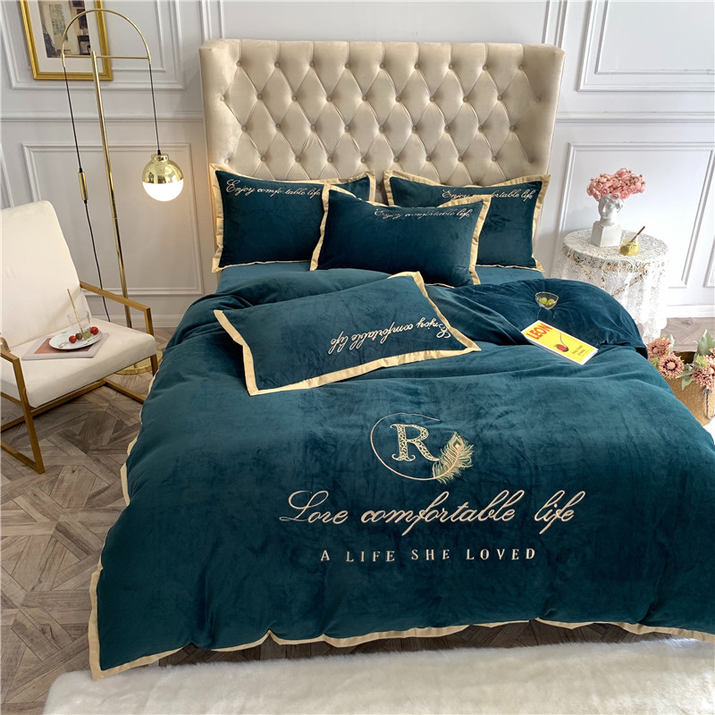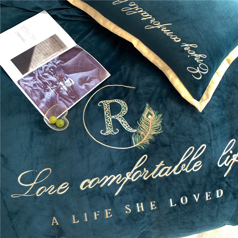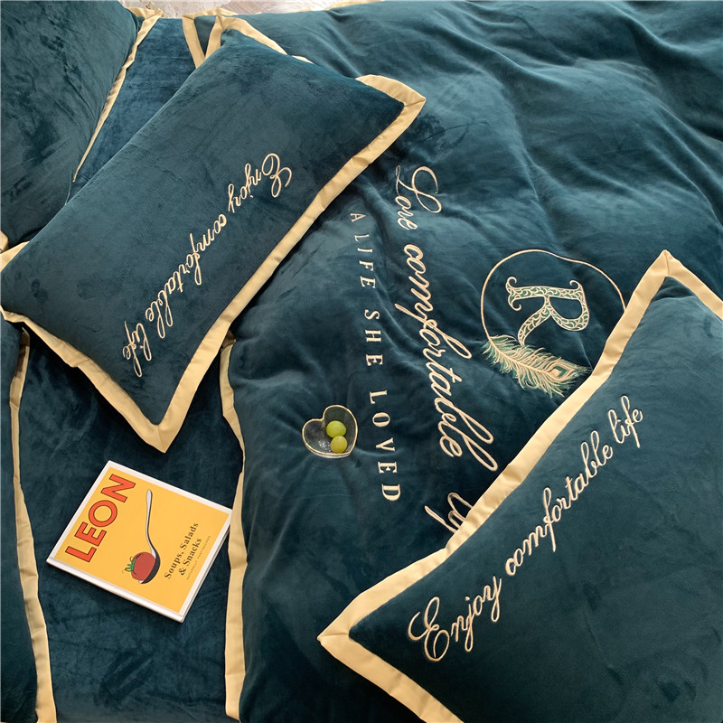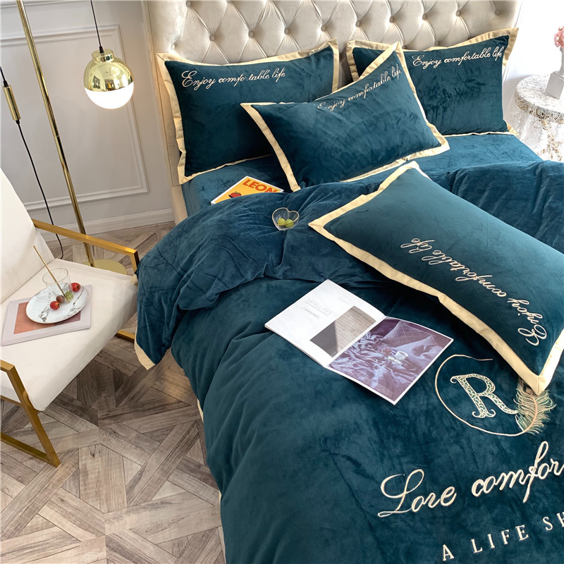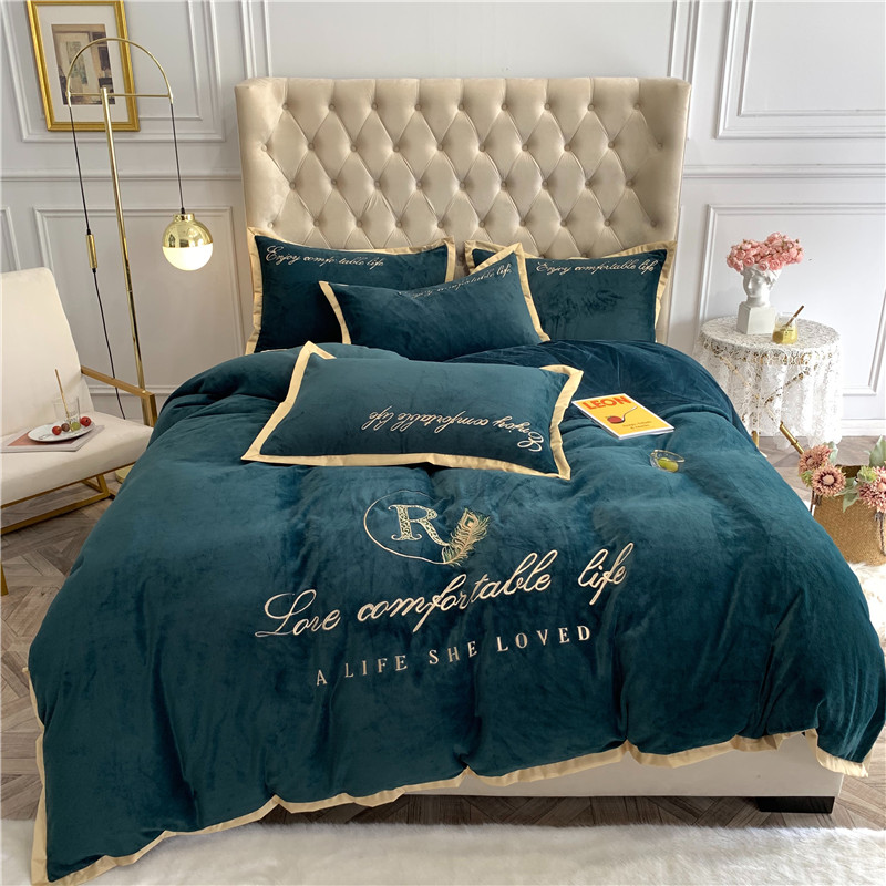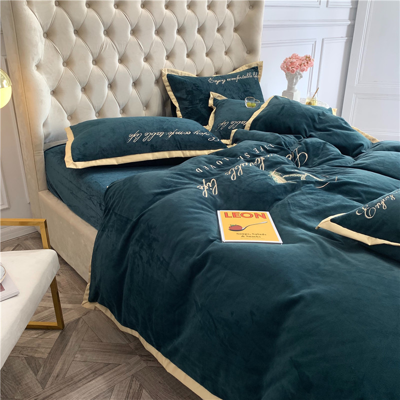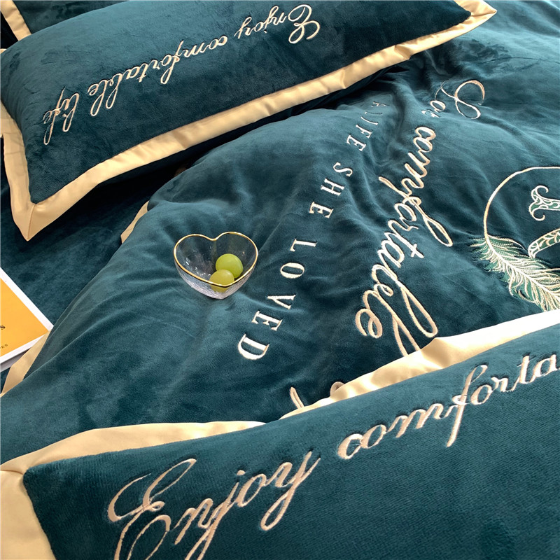 商品名称:馨蕊家居 2021秋冬轻奢牛奶绒简爱系列四件套 墨绿