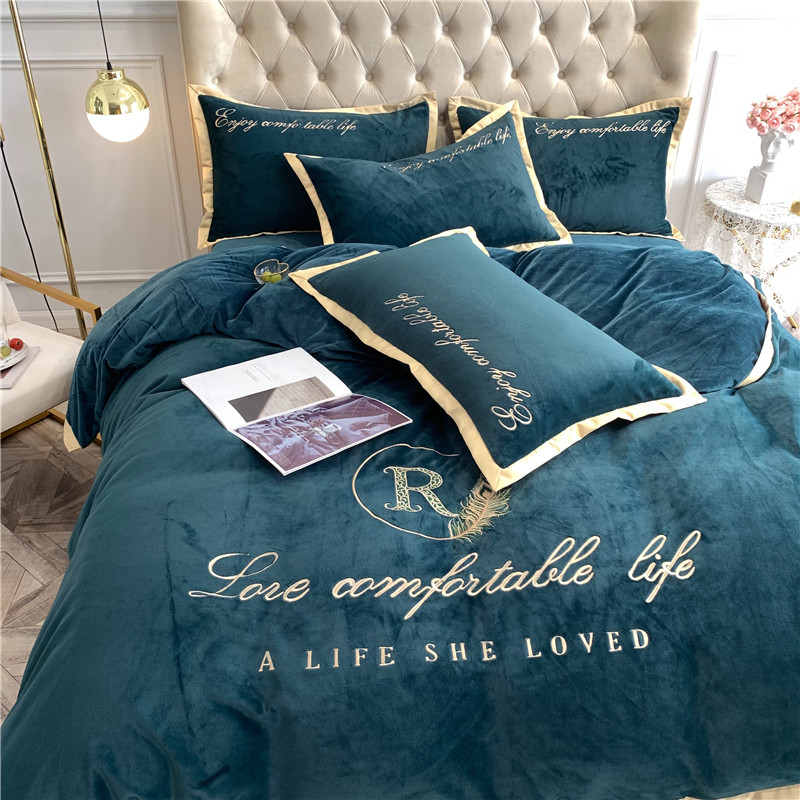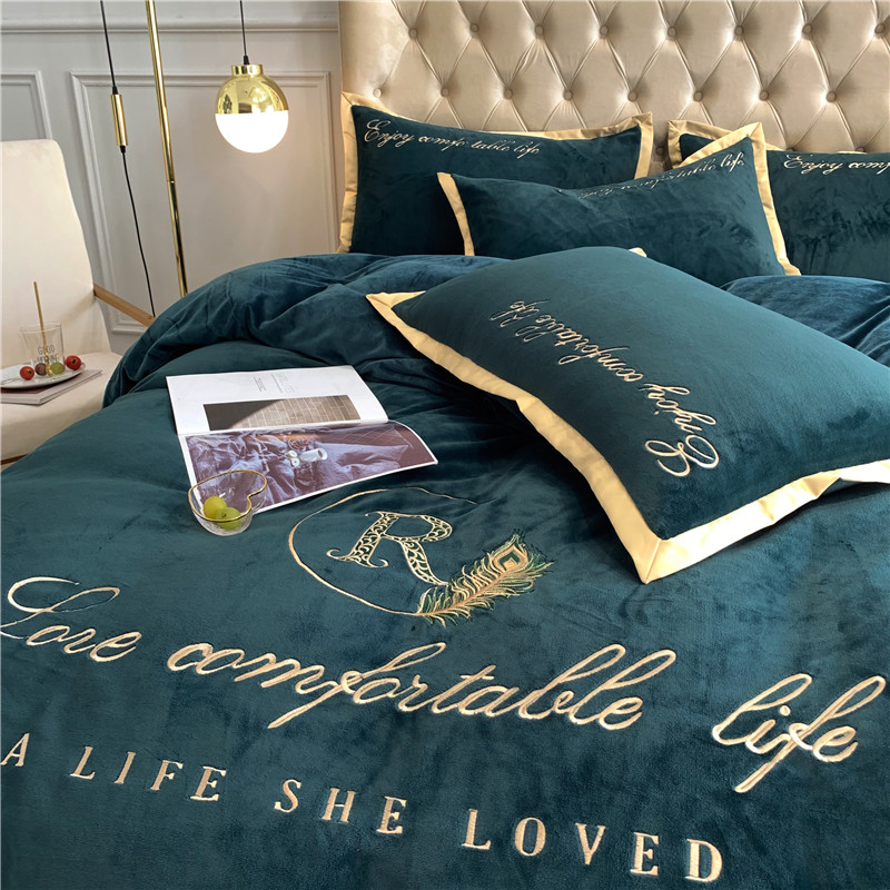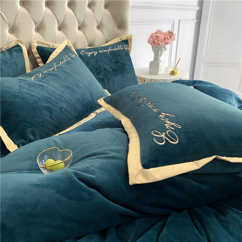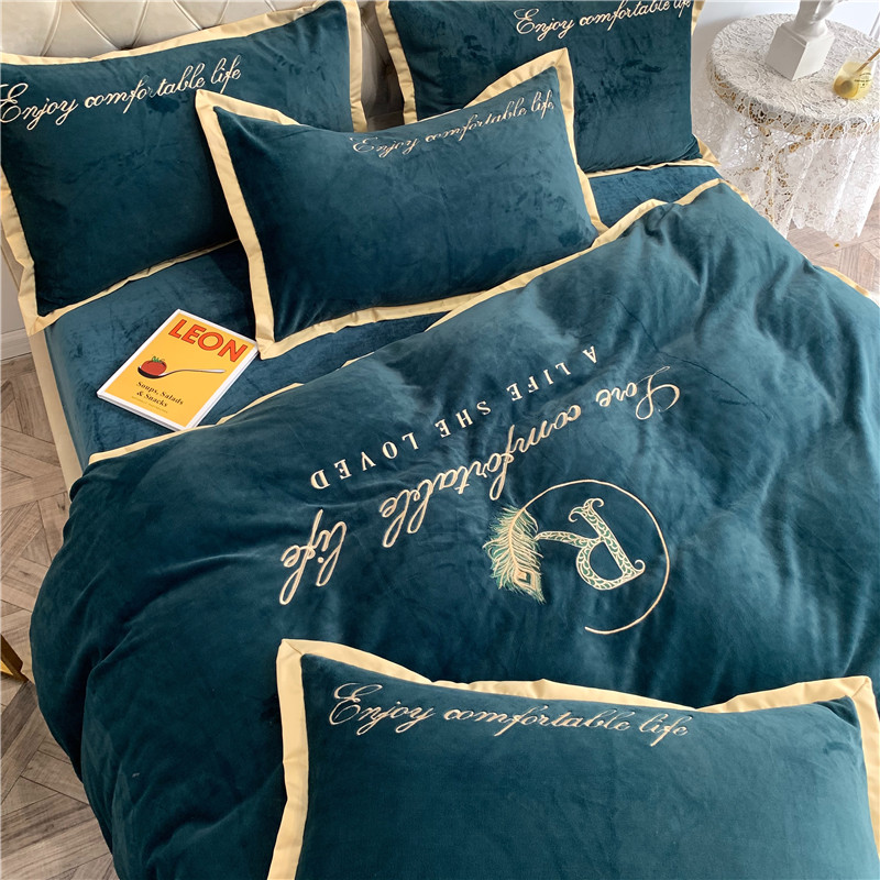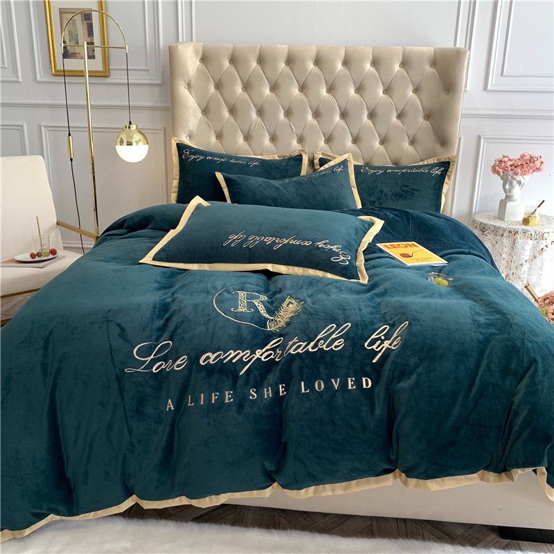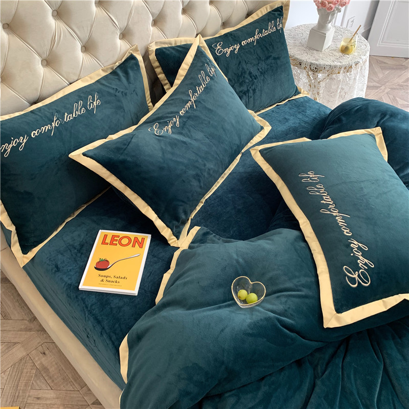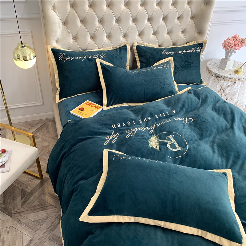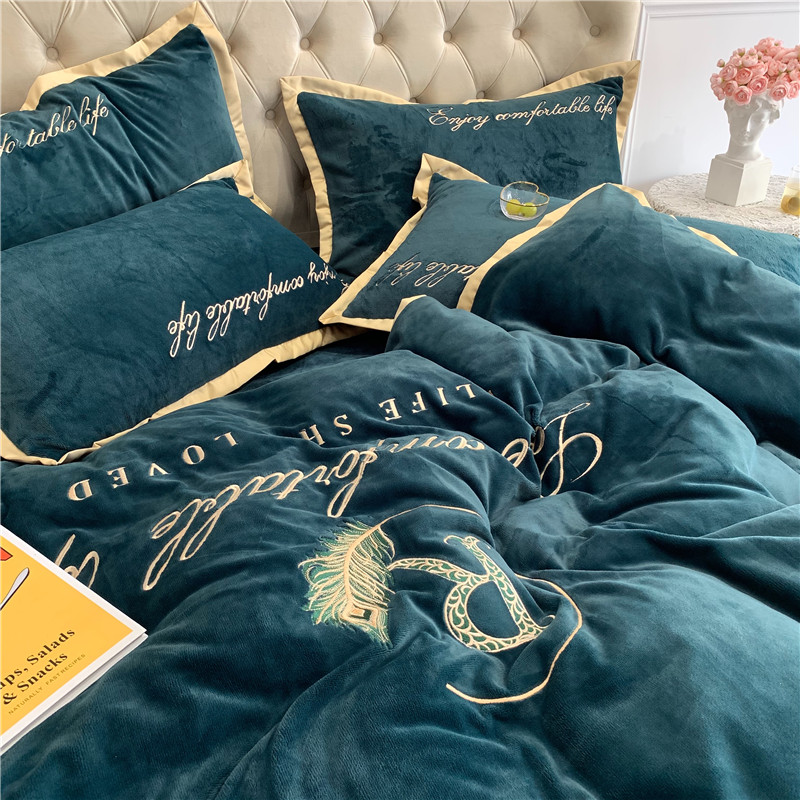 商品名称:馨蕊家居 2021秋冬轻奢牛奶绒简爱系列四件套 墨绿