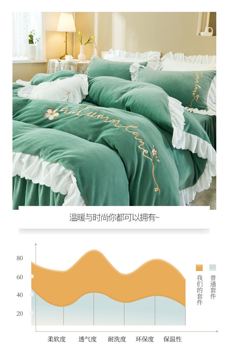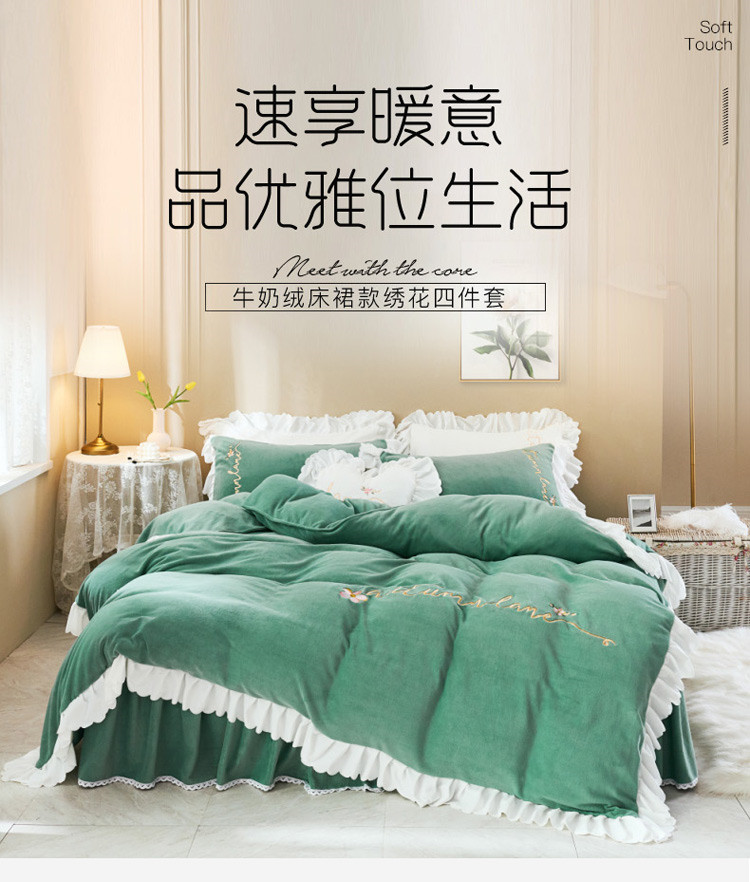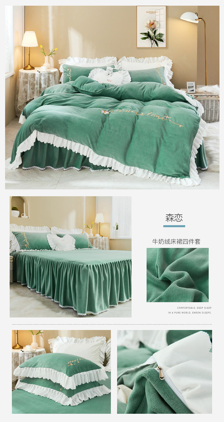商品名称:菊上家纺 2019绣花牛奶绒冬季恋歌系列四件套 森恋
