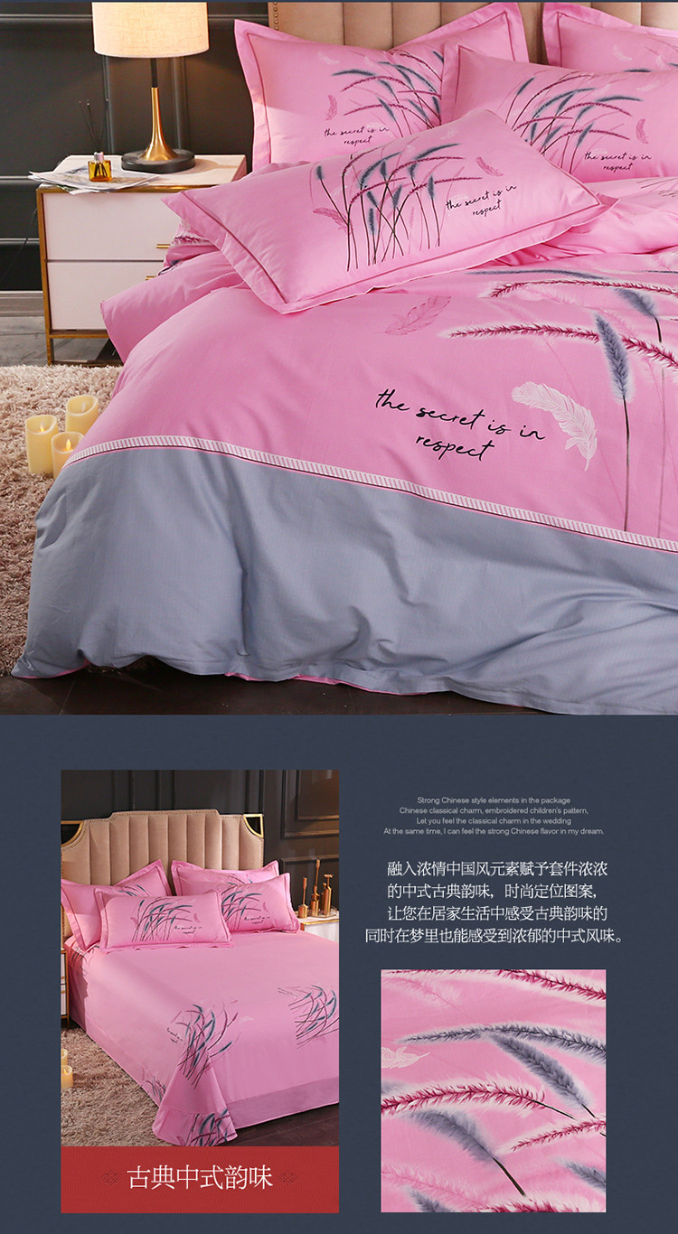 (总)雲归梦 2021新款全棉生态磨毛刺绣四件套,慕思-橙色,慕思-粉紫,慕思-灰,慕思-米黄,慕思-青绿,慕思-天蓝