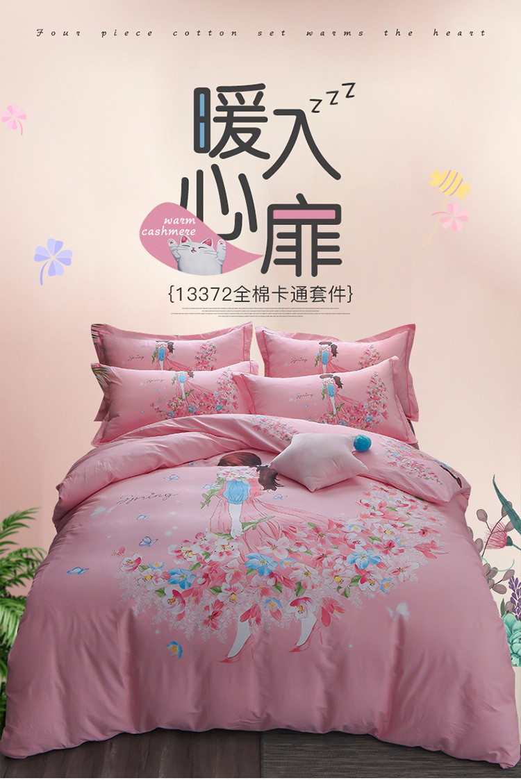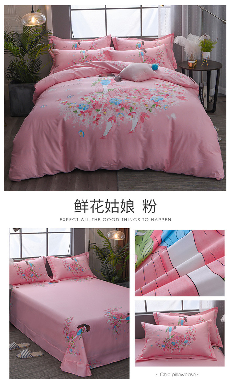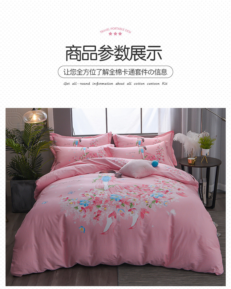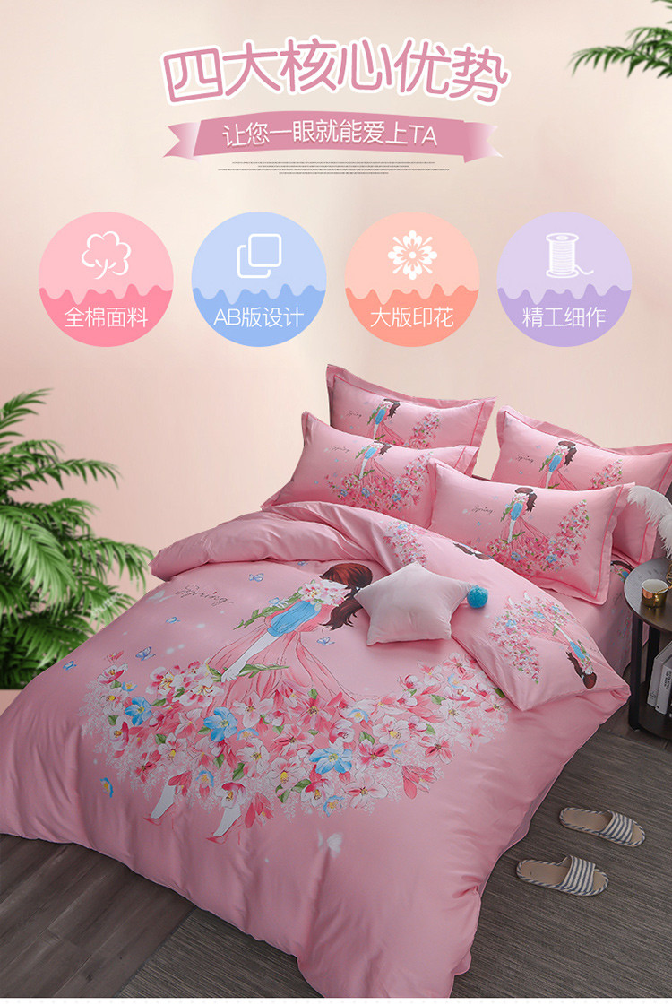 商品名称:雲归梦 2020新款13372全棉大版四件套 鲜花姑娘-粉