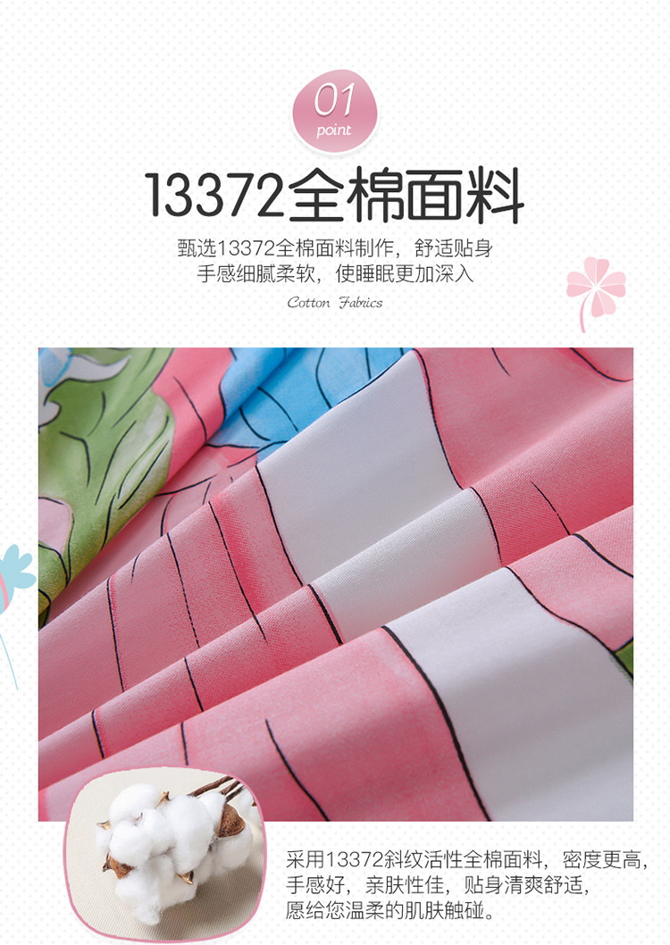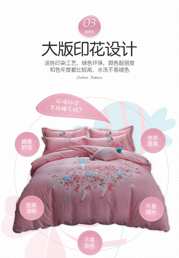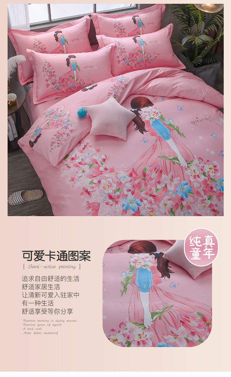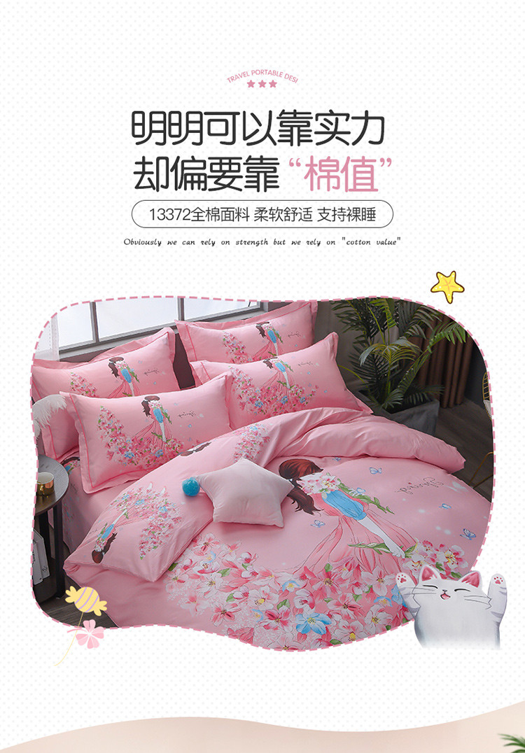 商品名称:雲归梦 2020新款13372全棉大版四件套 鲜花姑娘-粉