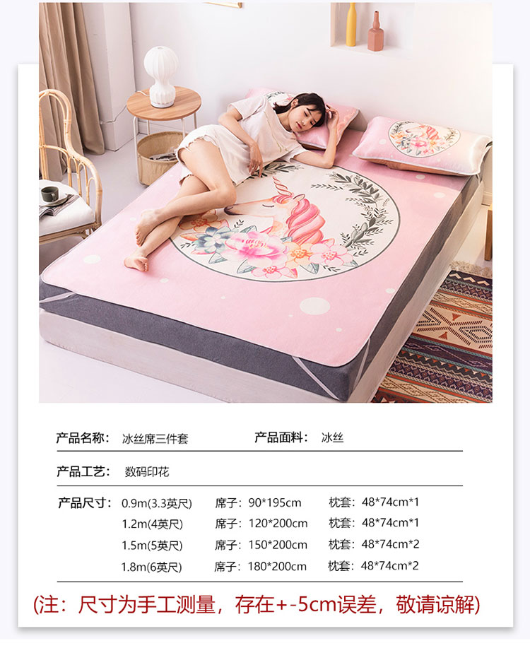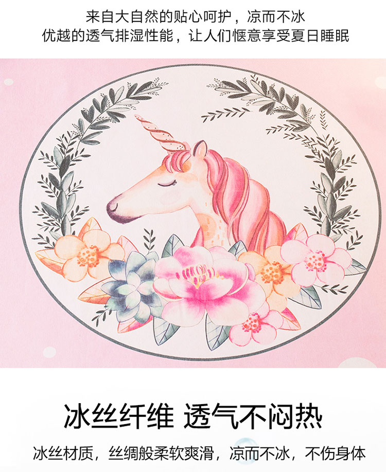 商品名称:北纬27度 2020新款ins养生纳米纤维冰丝席 粉色独角兽