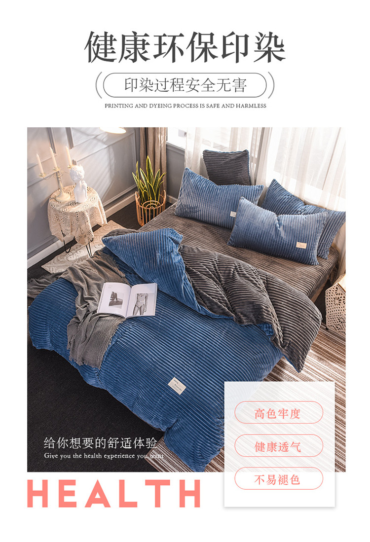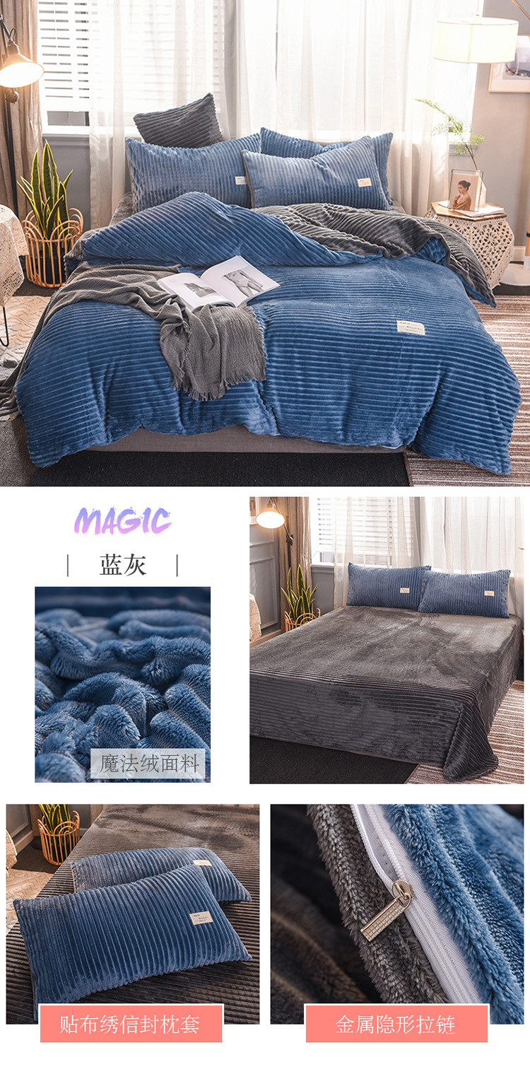 商品名称:欧冠 2019秋冬魔法绒暖绒系列四件套床单款 宝蓝深灰