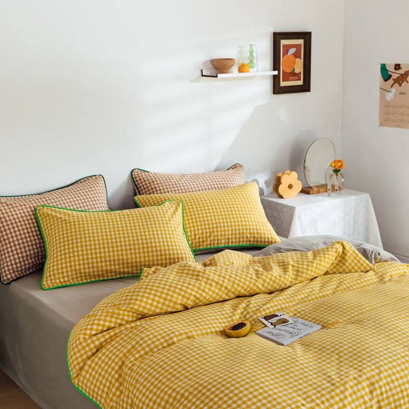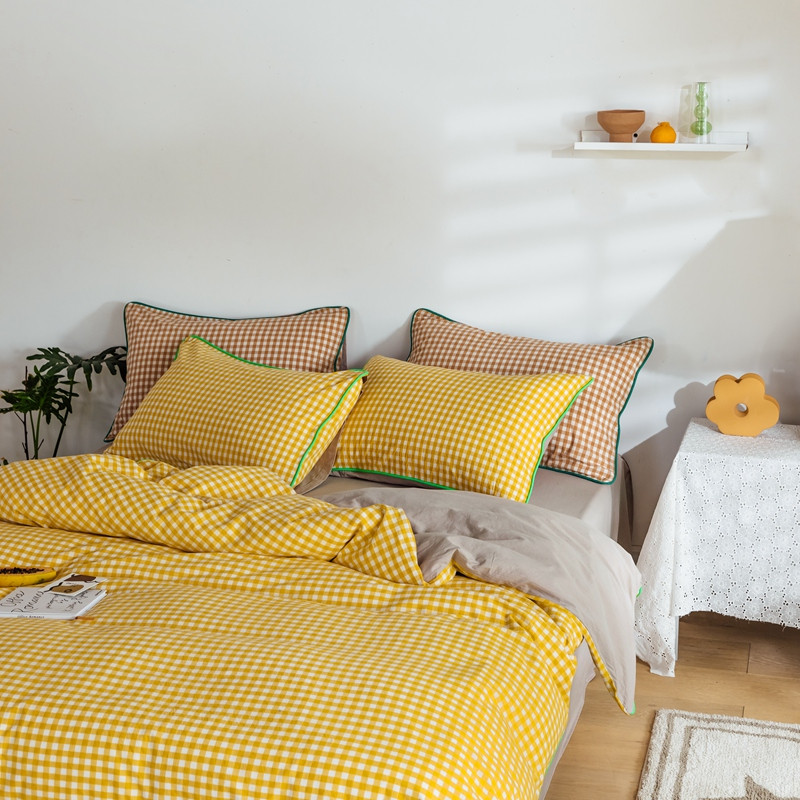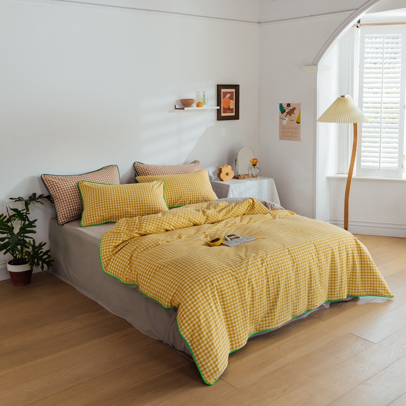 棉眠2020夏季新款32支色织水洗棉四件套 小黄格