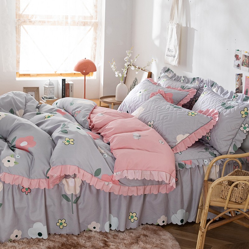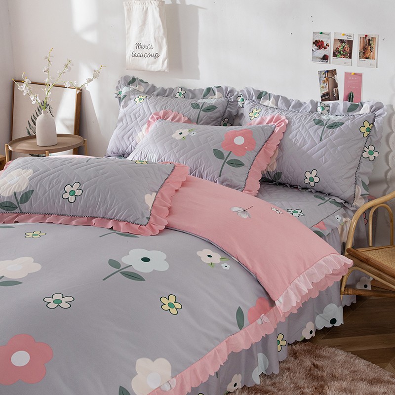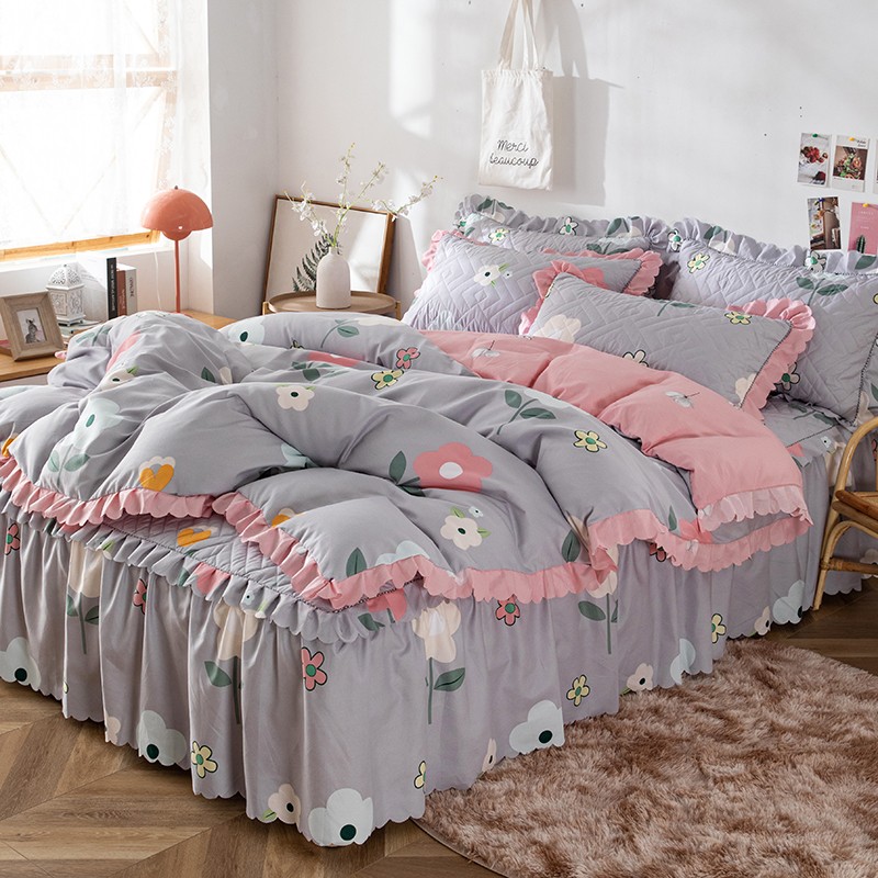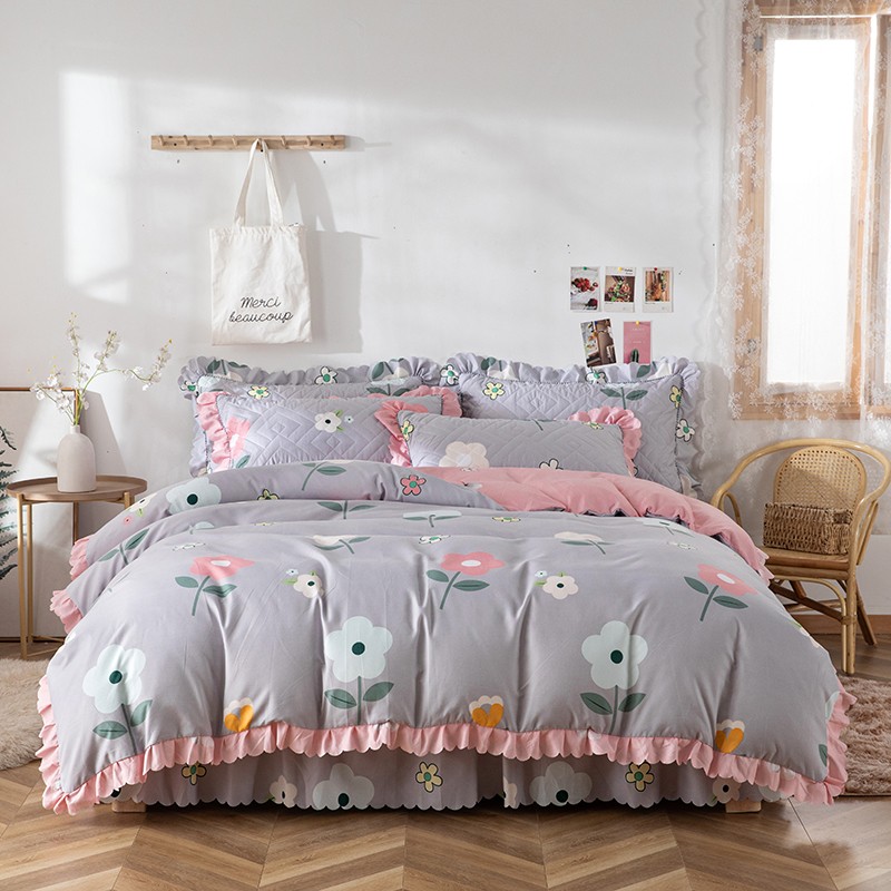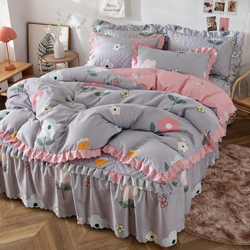 纽缦 2020新款加厚磨毛夹棉床裙款四件套 芳菲年华