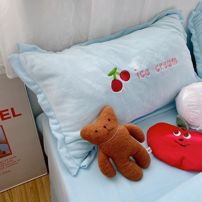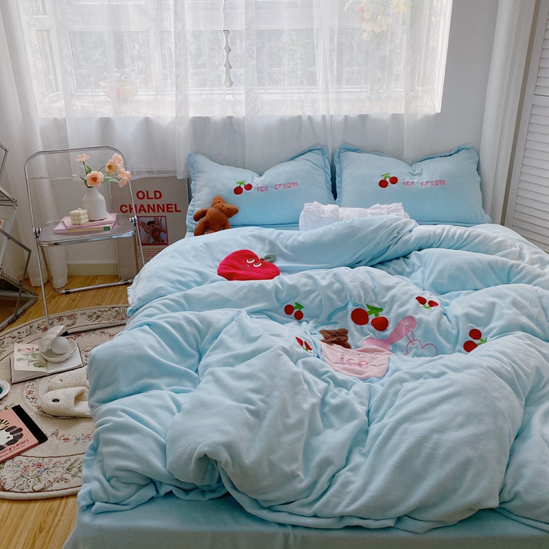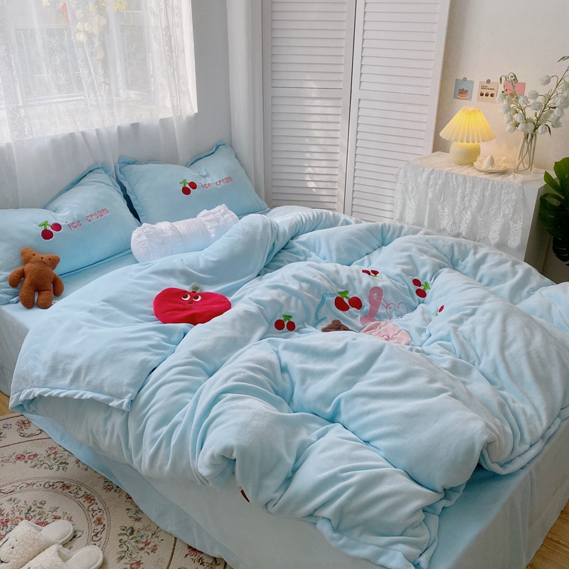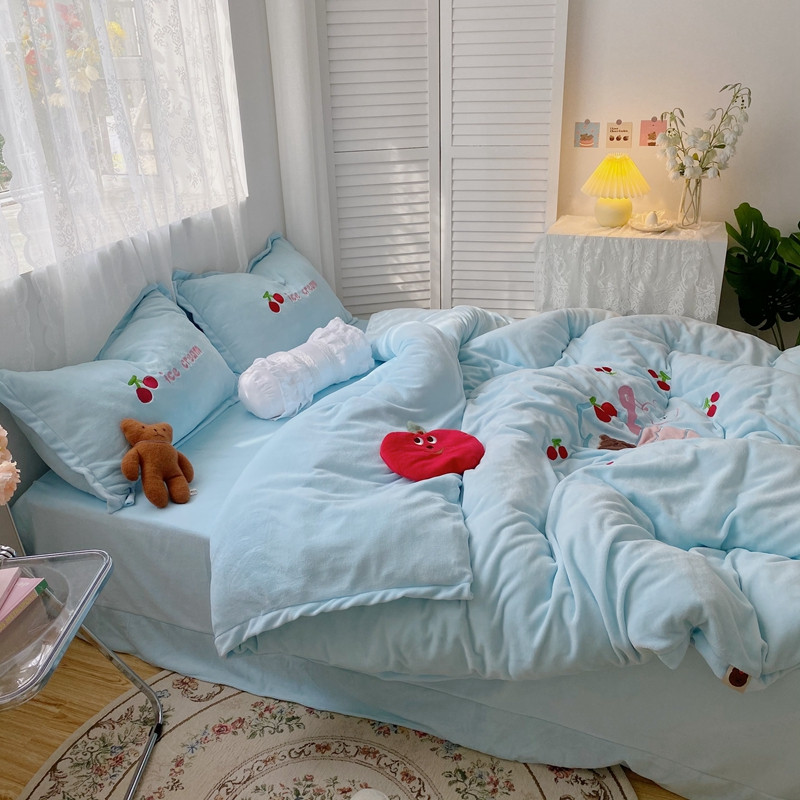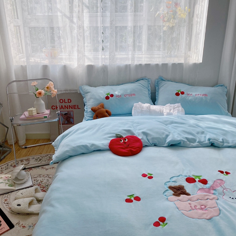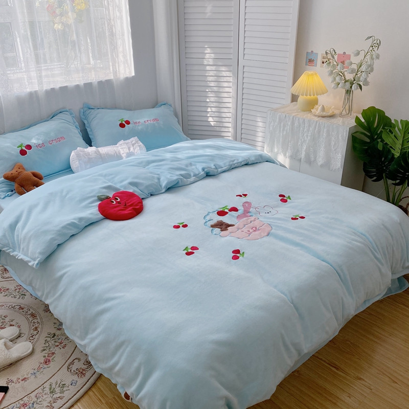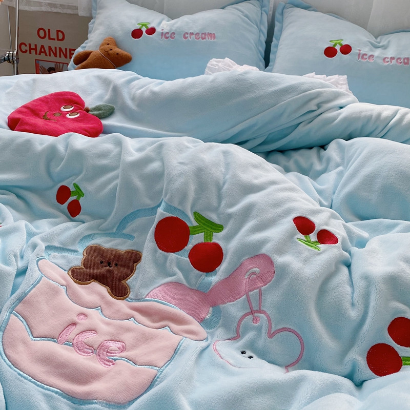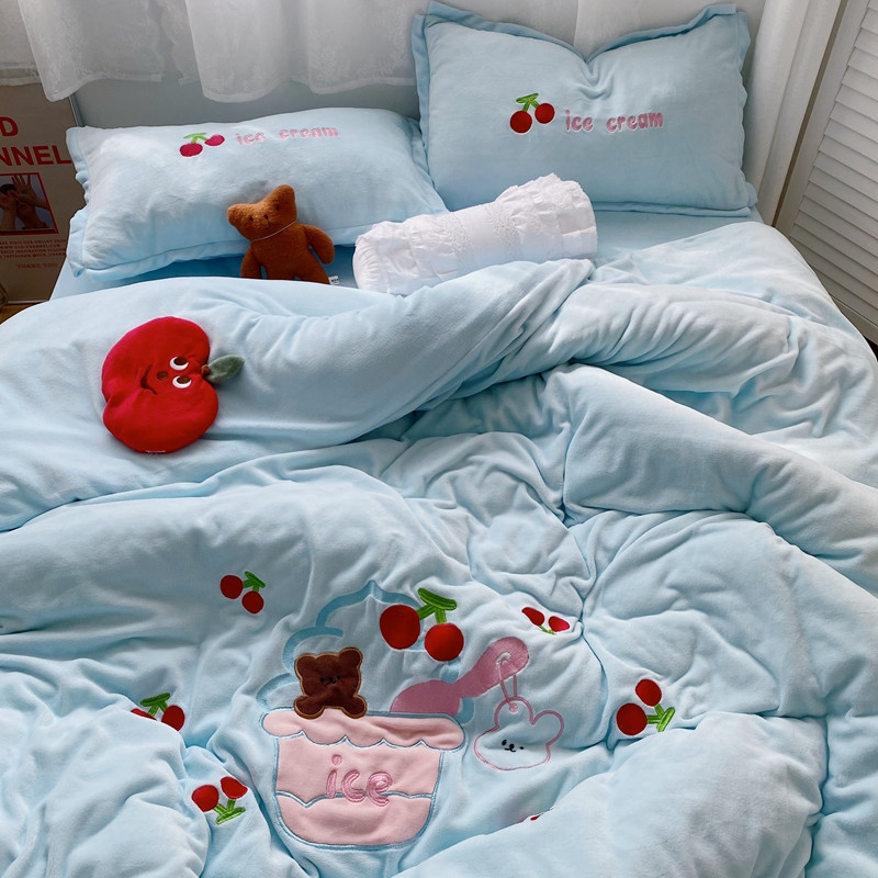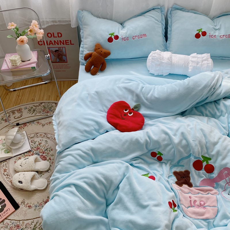 星期八2020新款230g双面小熊系列牛奶绒四件套 冰激凌熊蓝
