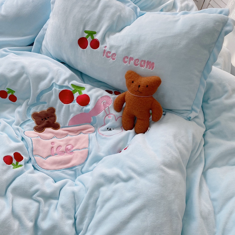 商品名称:星期八2020新款230g双面小熊系列牛奶绒四件套 冰激凌熊蓝